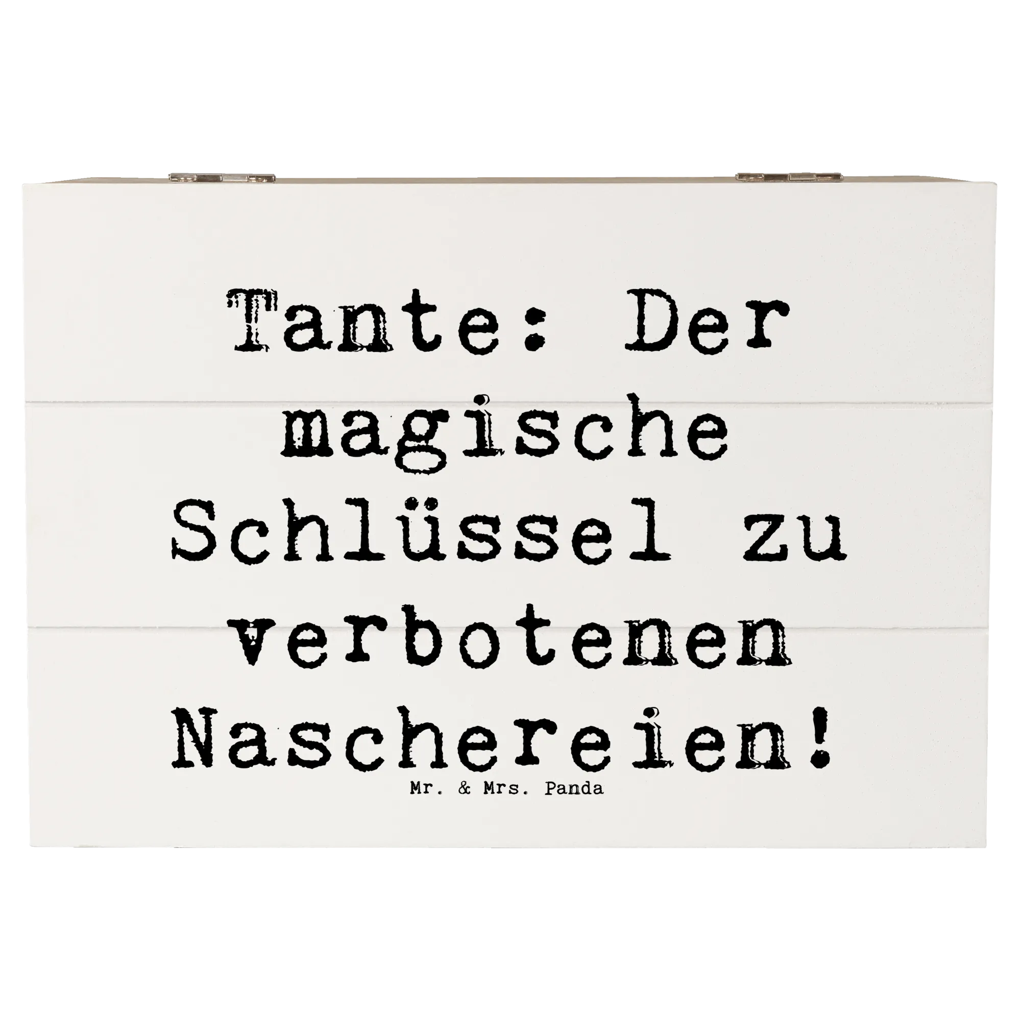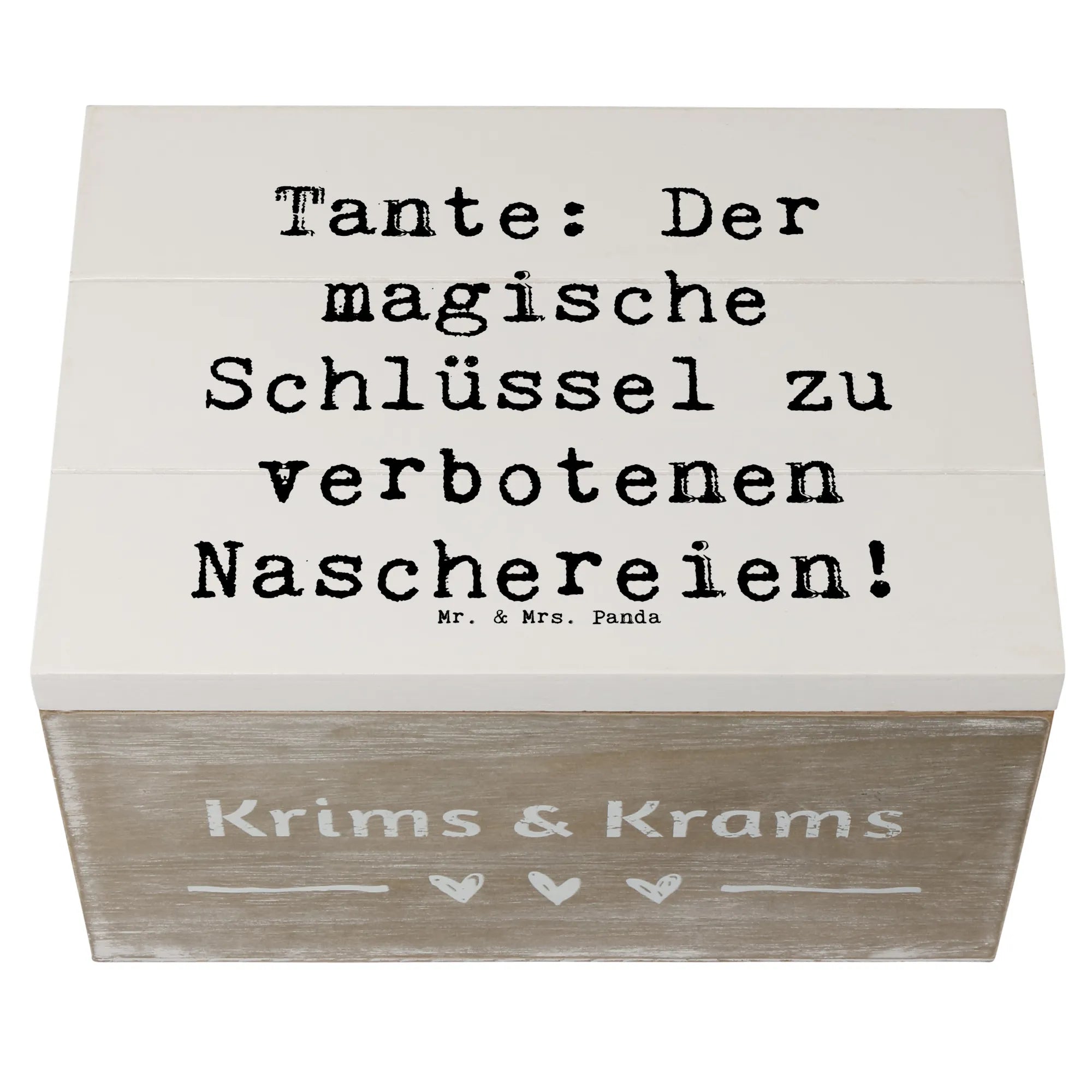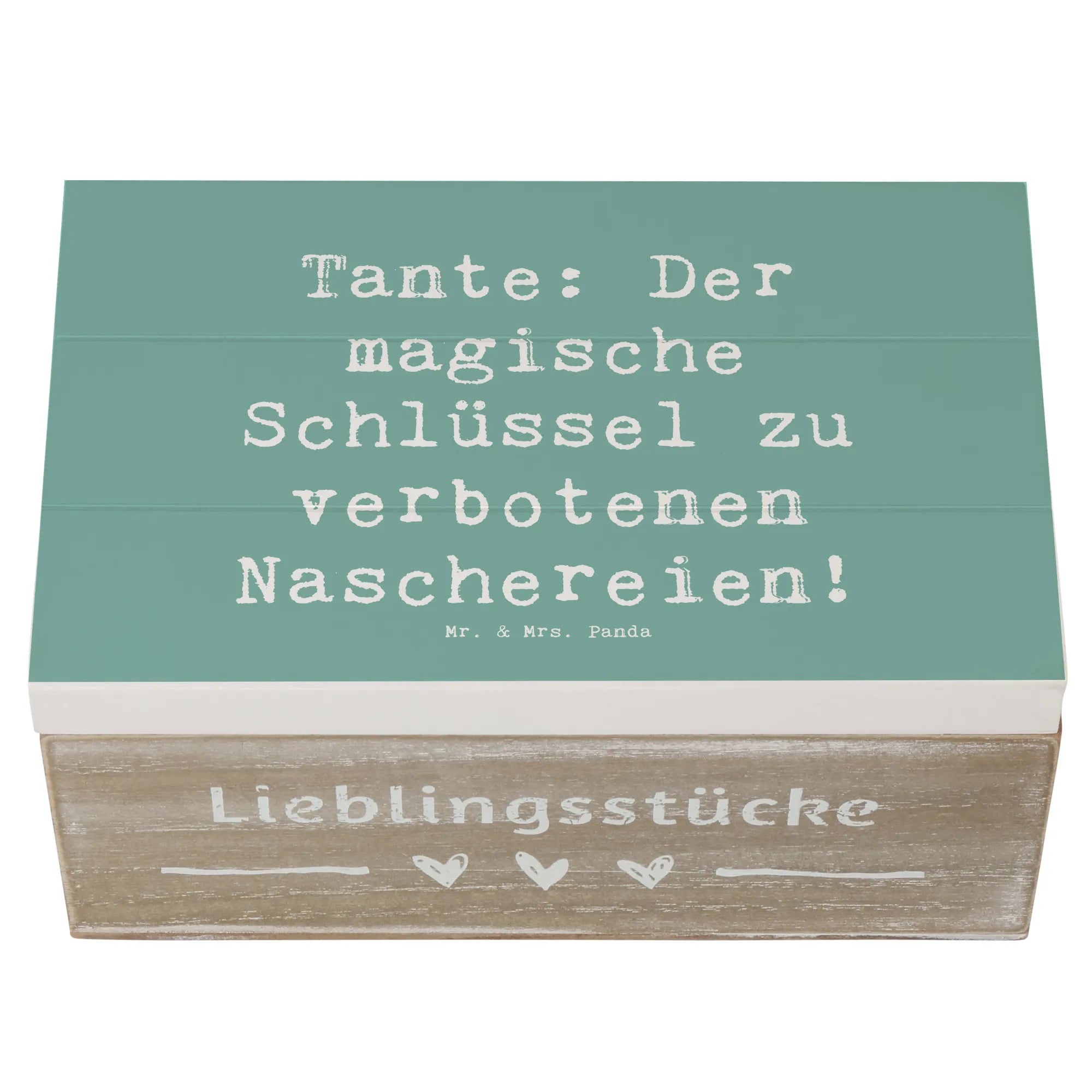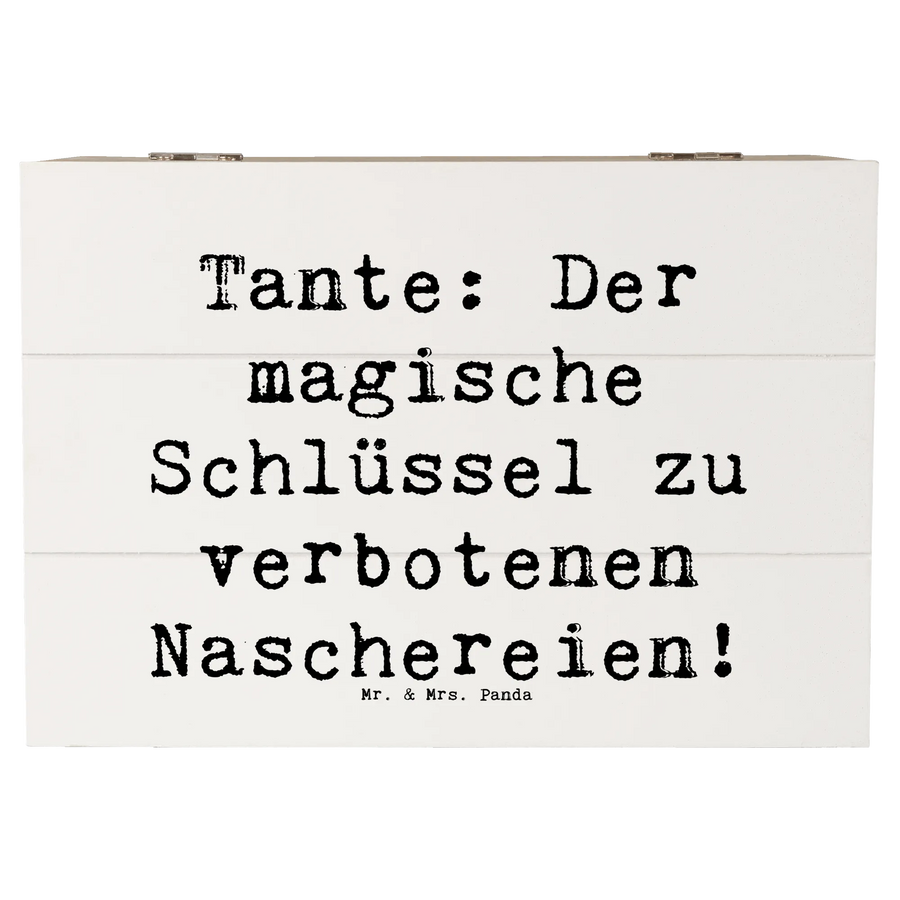 Suchst Du nach dem perfekten Geschenk für Deine Tante? Dann ist die wunderschöne Holzkiste von Mr. & Mrs. Panda genau das Richtige! Diese liebevoll gestaltete Kiste mit dem Spruch "Tante: Der magische Schlüssel zu verbotenen Naschereien!" findet garantiert einen besonderen Platz in ihrem Zuhause.