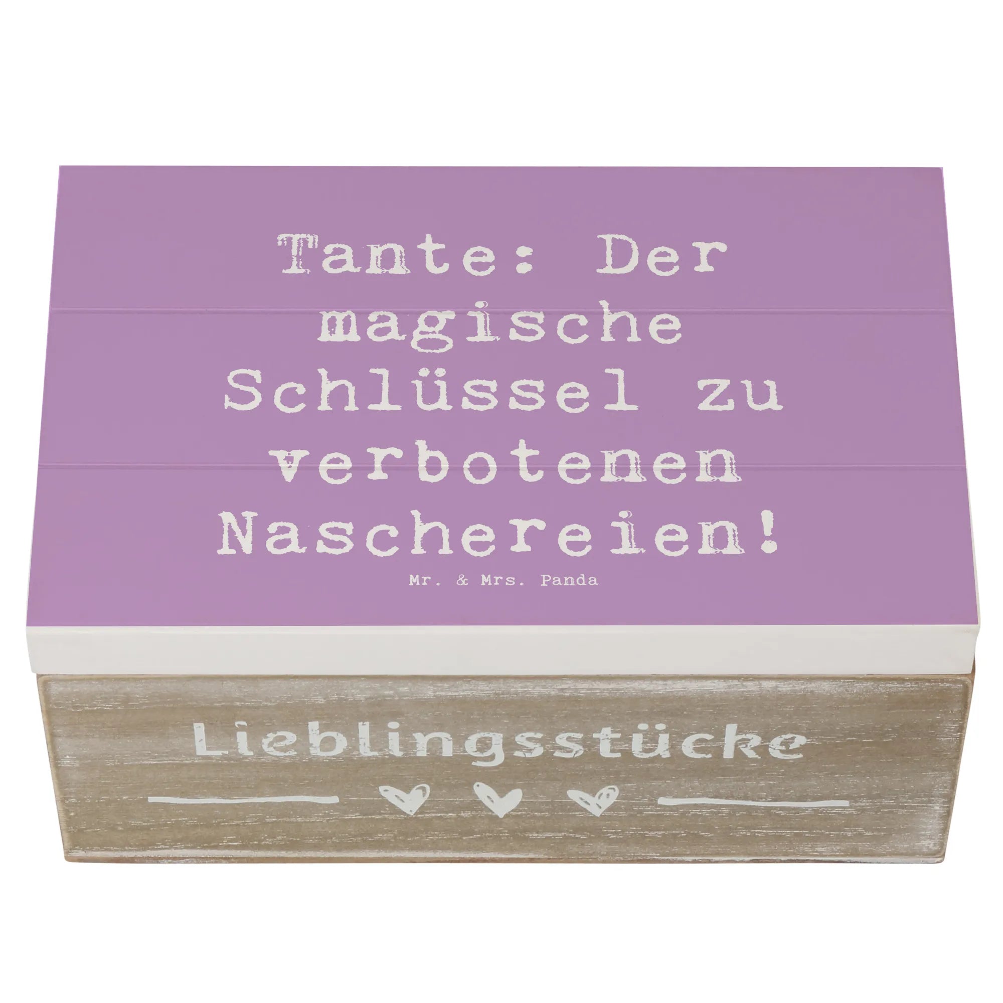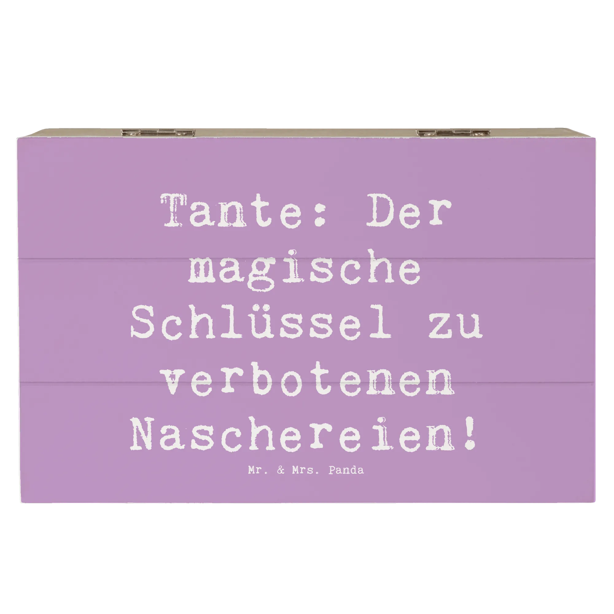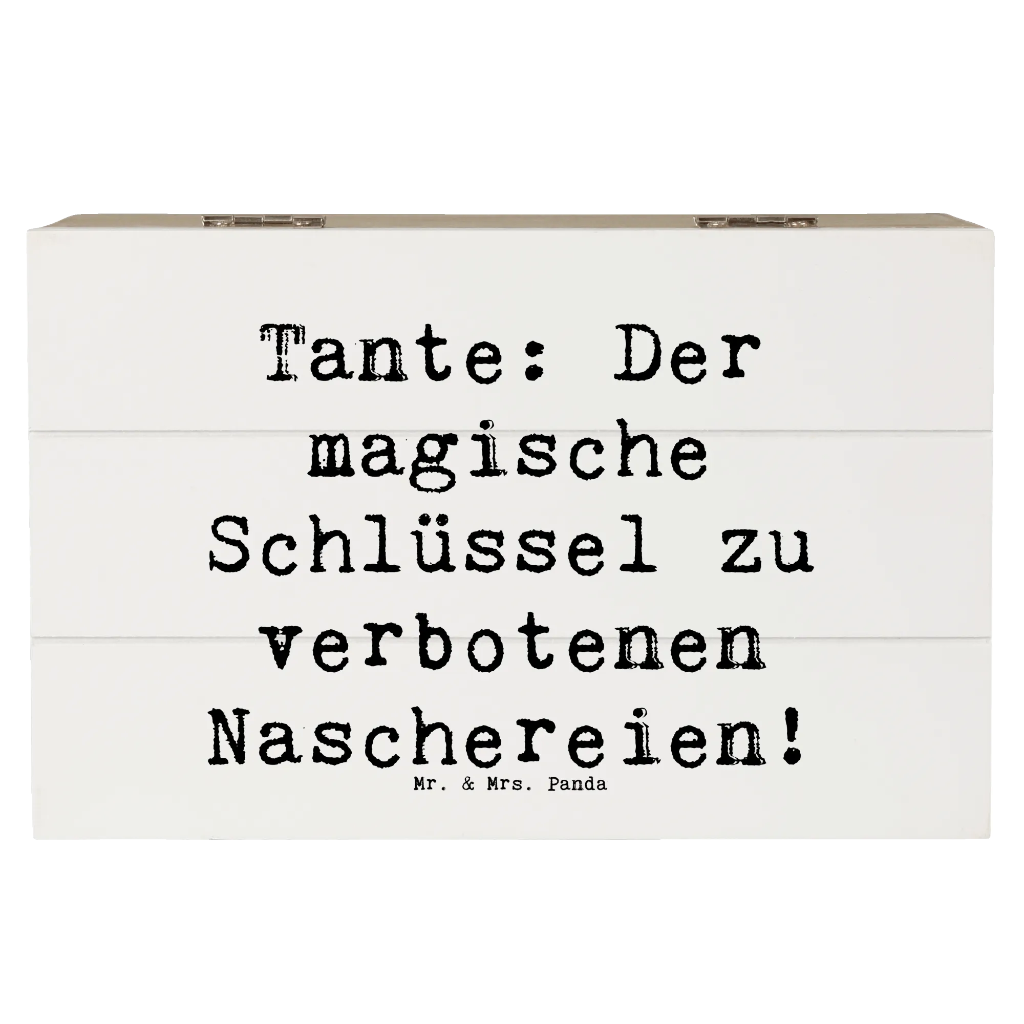 Suchst Du nach dem perfekten Geschenk für Deine Tante? Dann ist die wunderschöne Holzkiste von Mr. & Mrs. Panda genau das Richtige! Diese liebevoll gestaltete Kiste mit dem Spruch "Tante: Der magische Schlüssel zu verbotenen Naschereien!" findet garantiert einen besonderen Platz in ihrem Zuhause.
