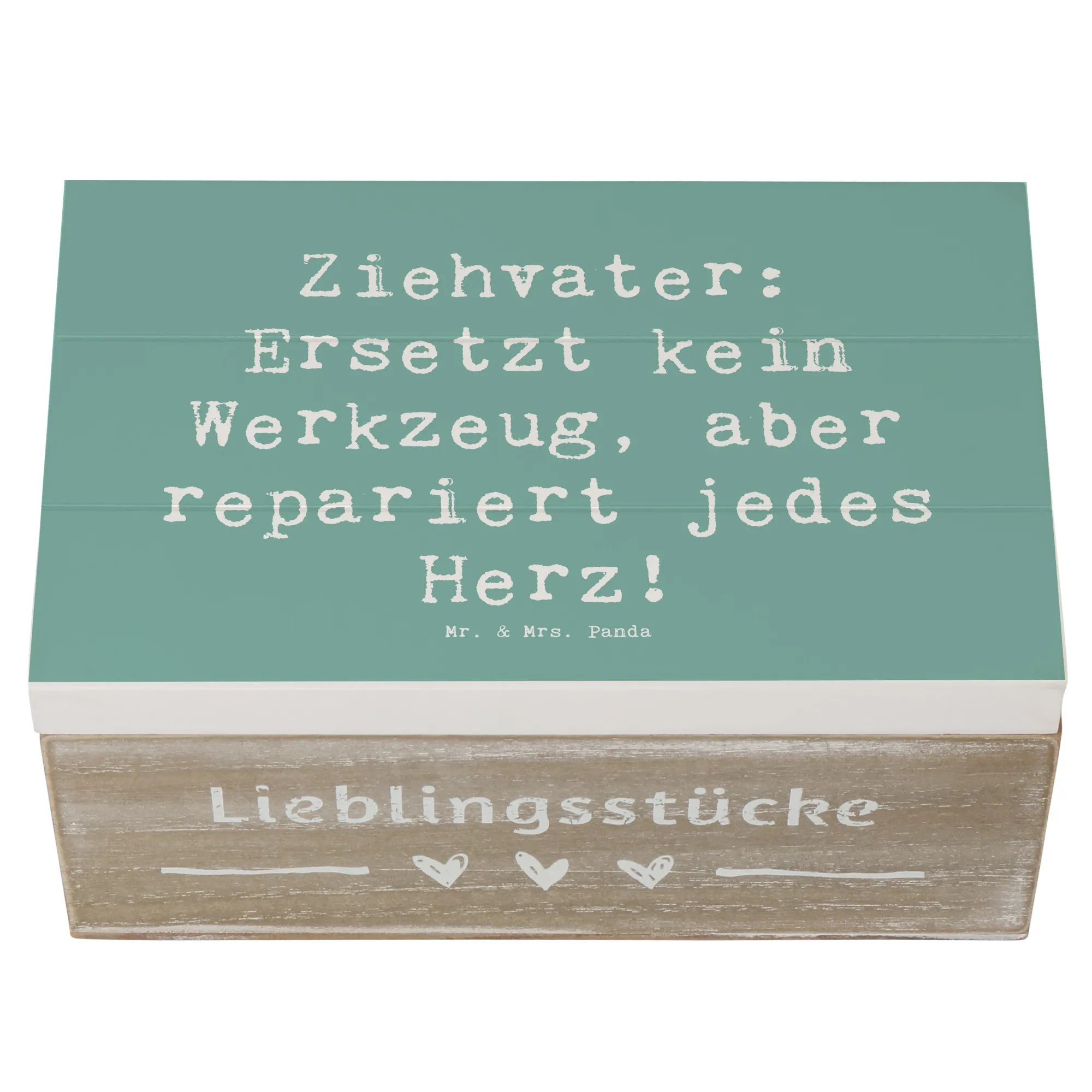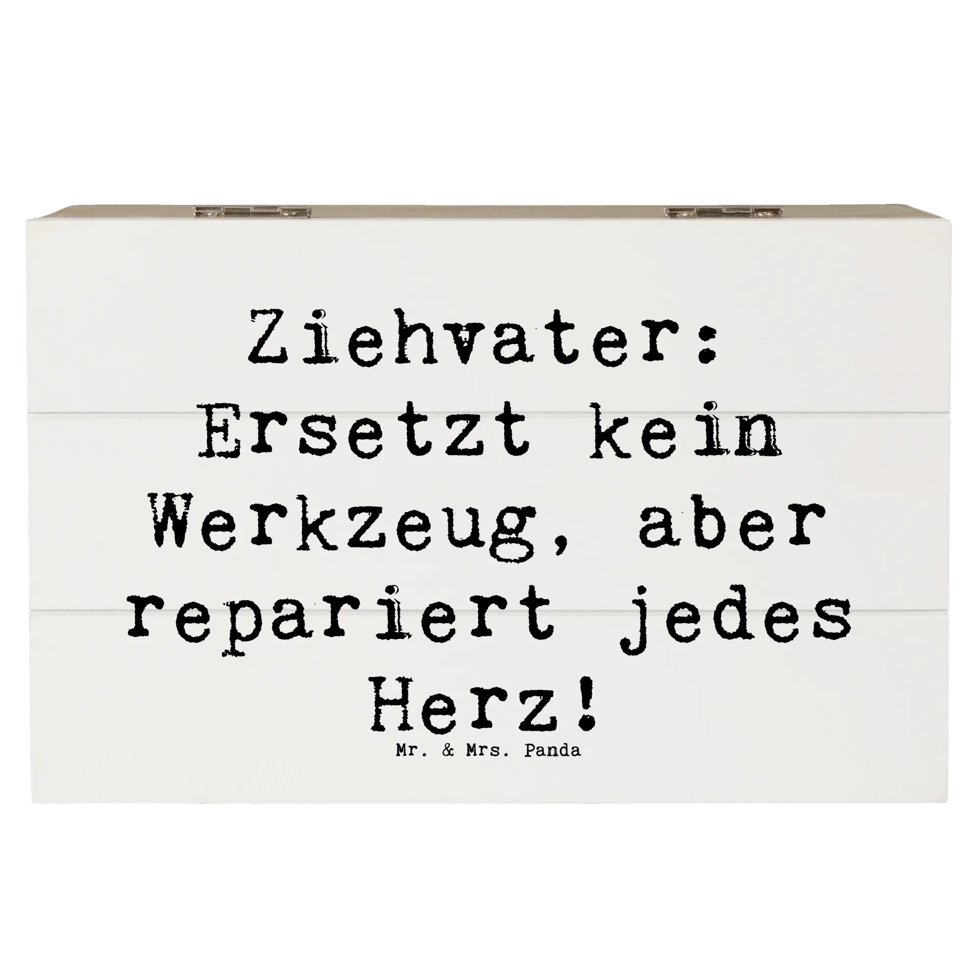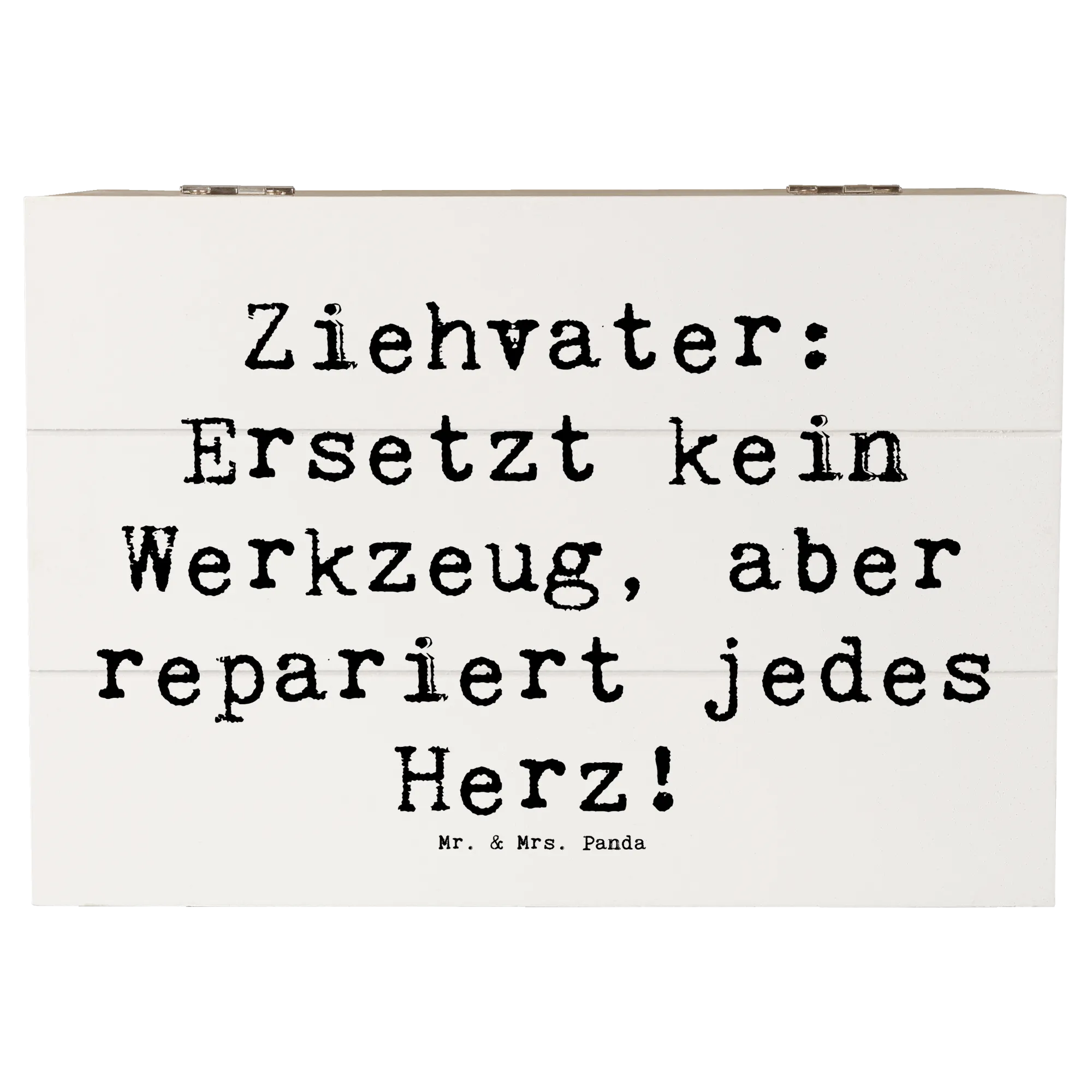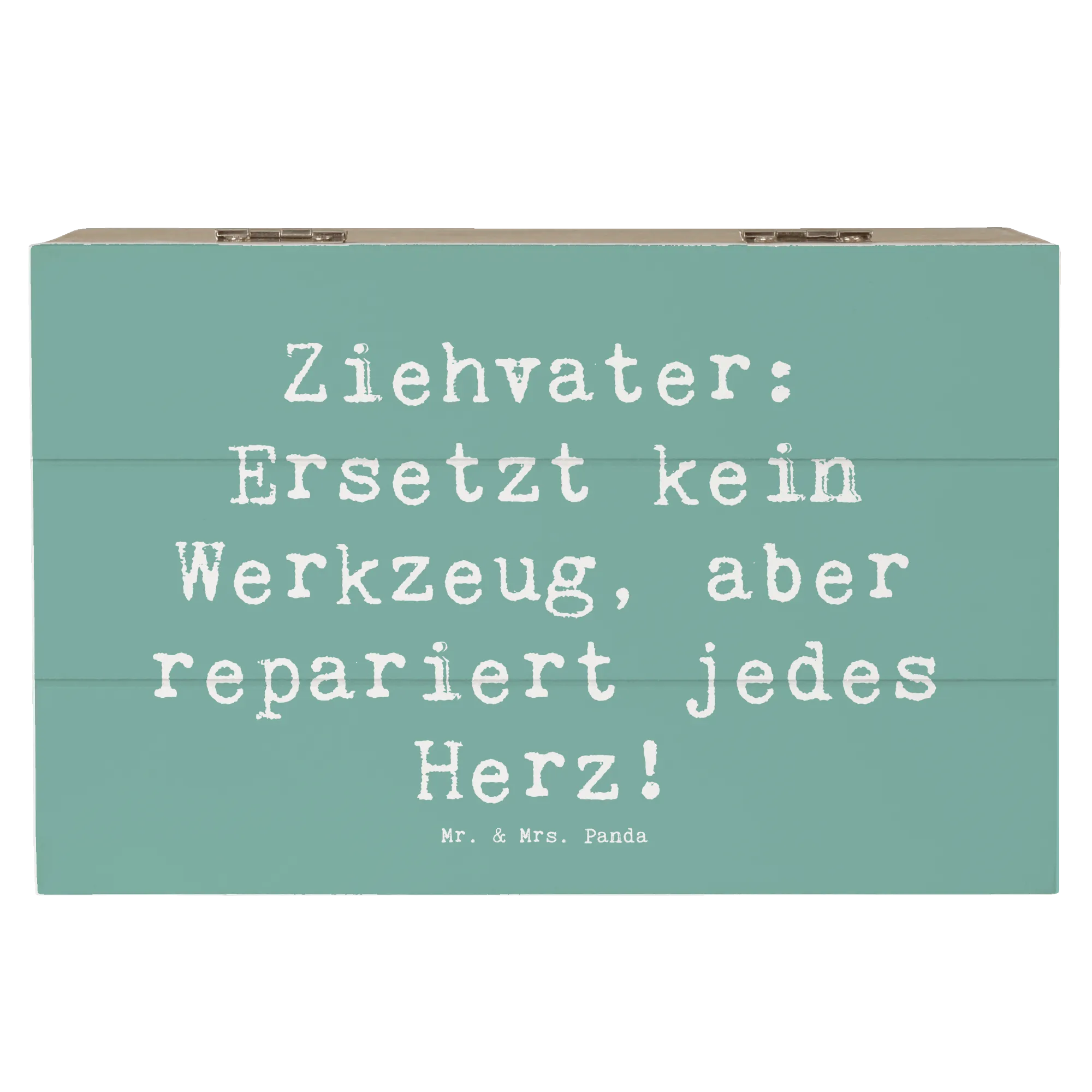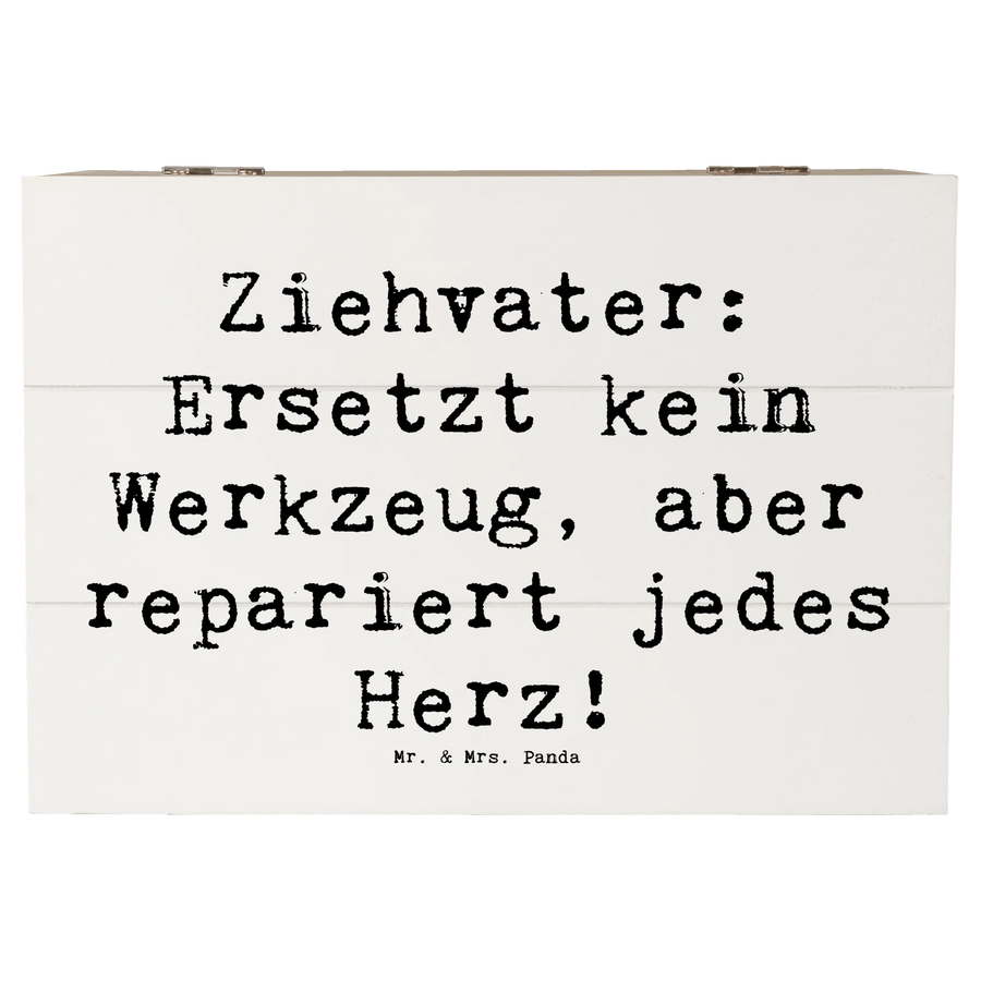 Die Holzkiste von Mr. & Mrs. Panda mit dem liebevollen Motiv "Ziehvater: Ersetzt kein Werkzeug, aber repariert jedes Herz!" ist das perfekte Geschenk für all jene, die einen Ziehvater in ihrem Leben haben. Diese einzigartige Schatulle aus robuster Holzfaser bietet nicht nur Platz für die wertvollsten Erinnerungen, sondern ist auch ein wunderschöner Aufbewahrungsort für Schätze, Fotos und besondere Andenken.