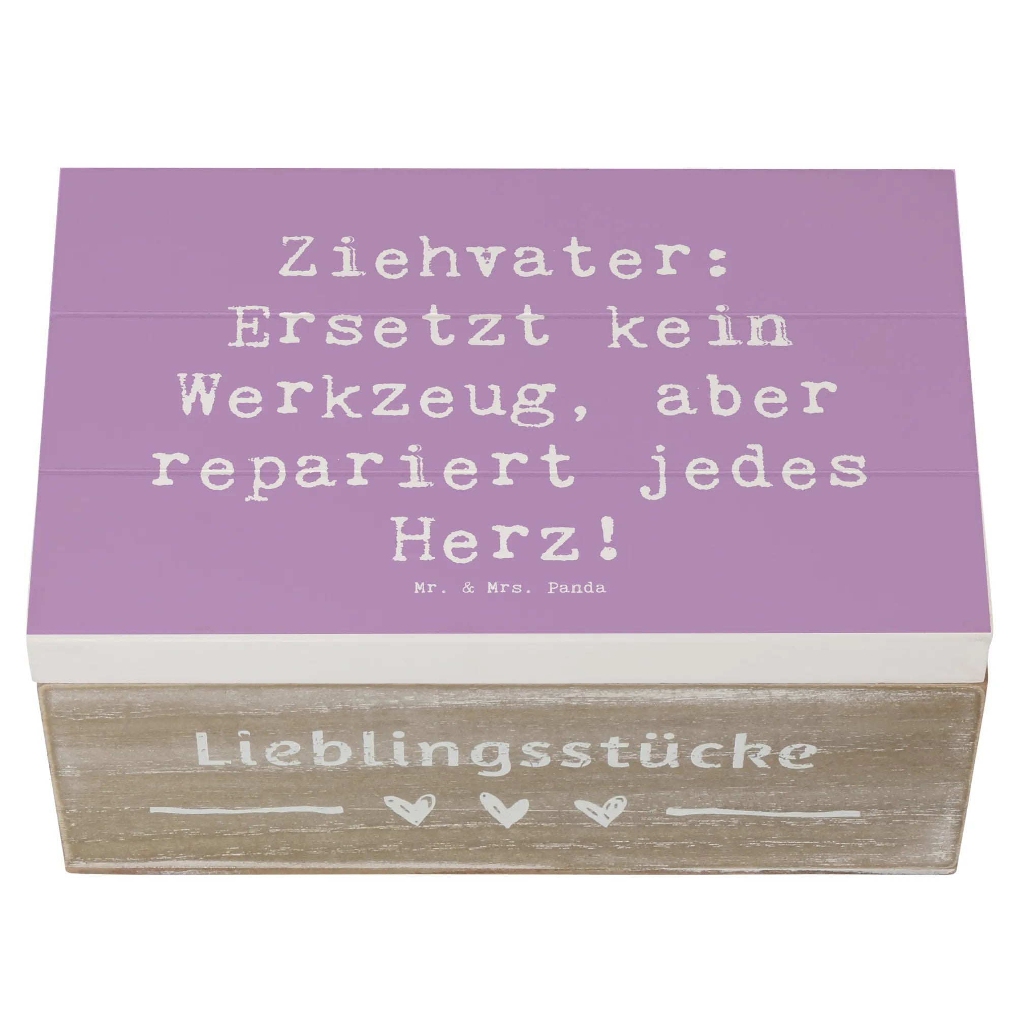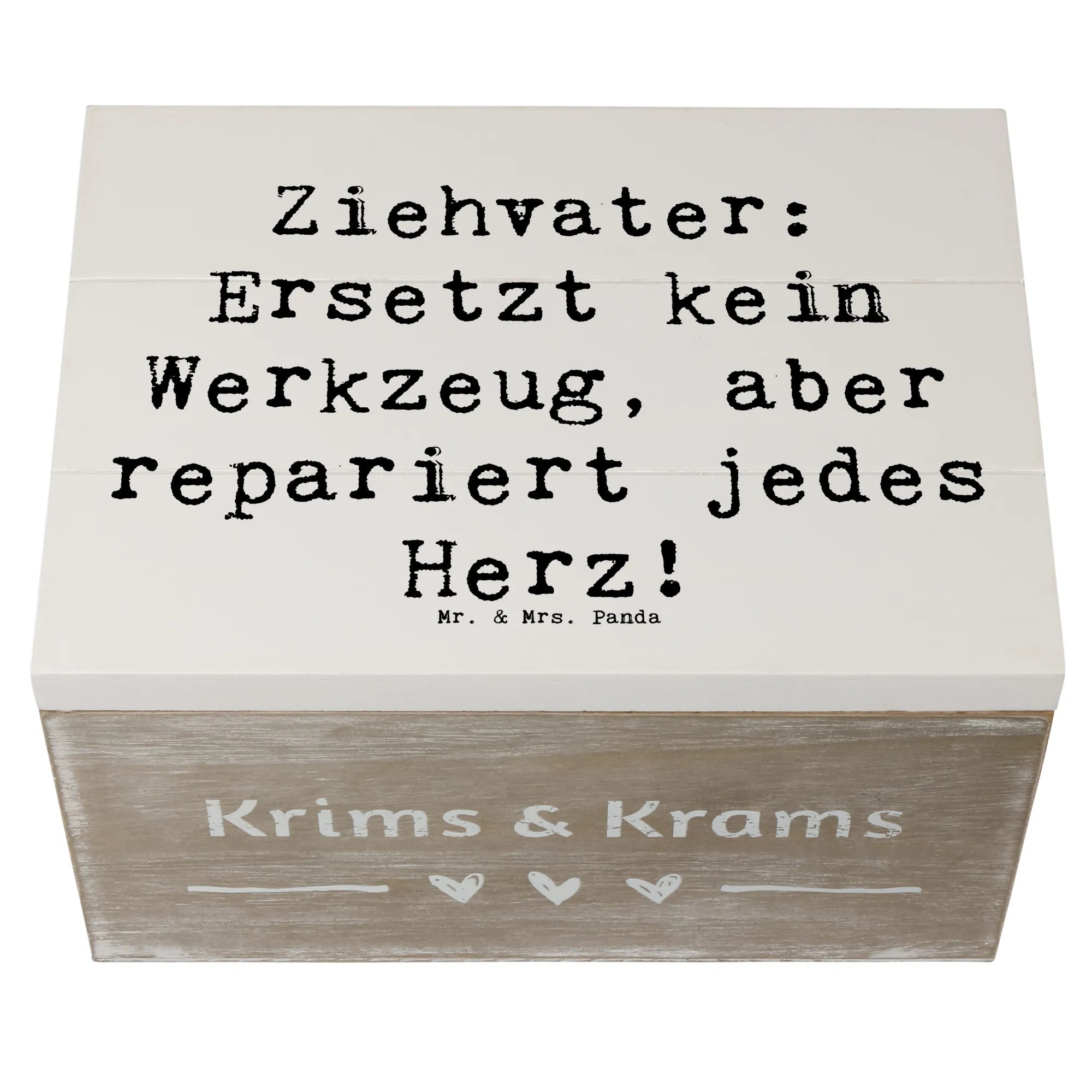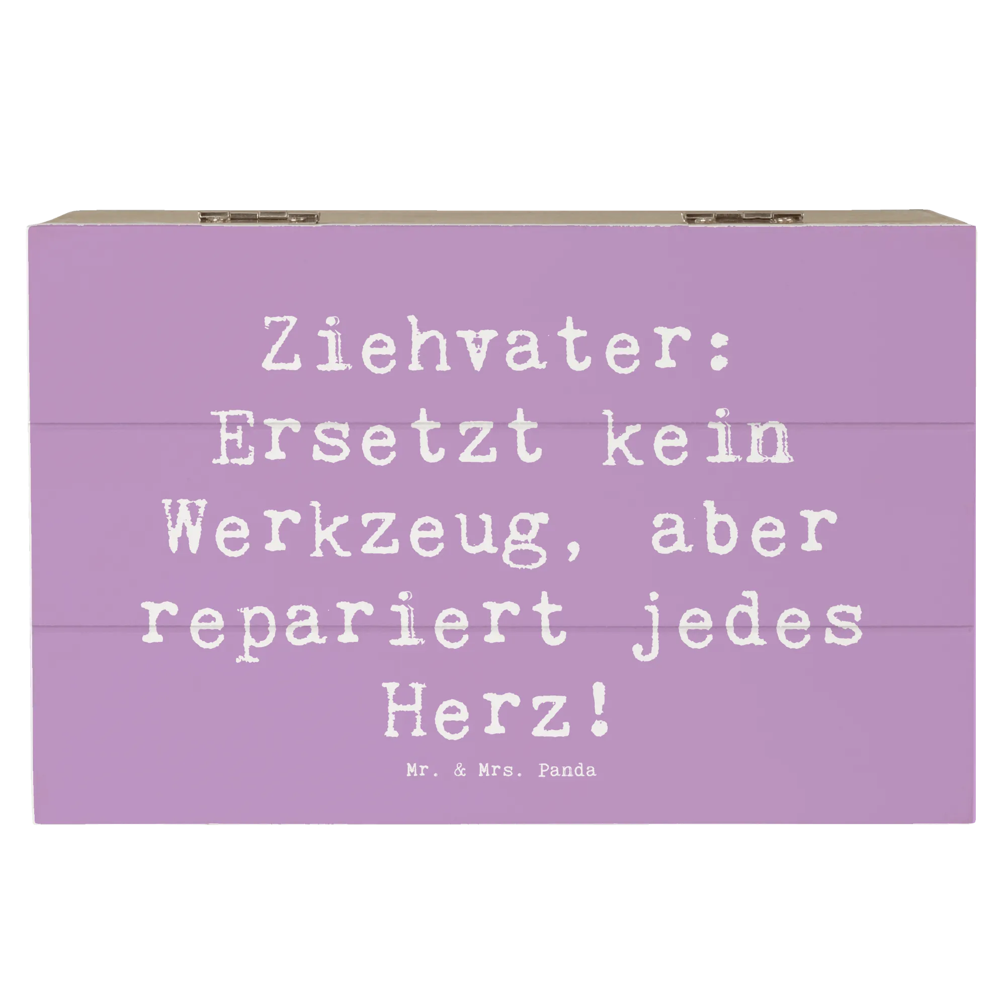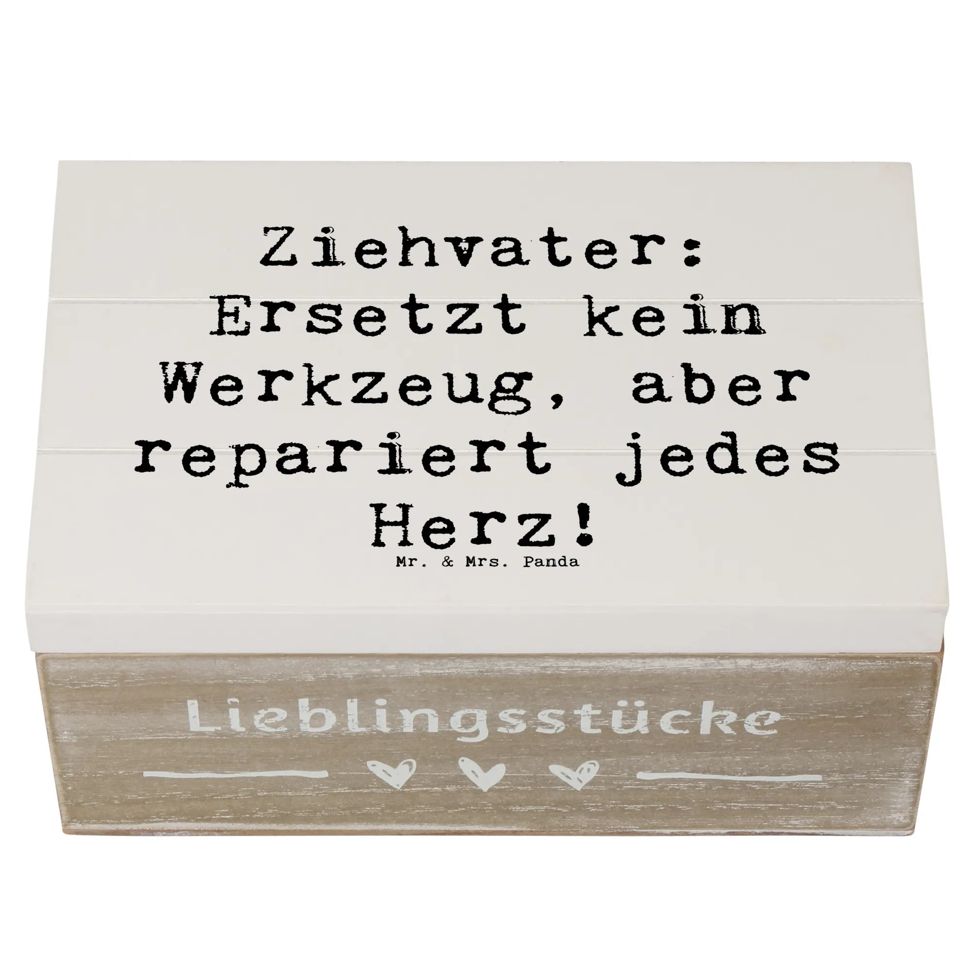 Die Holzkiste von Mr. & Mrs. Panda mit dem liebevollen Motiv "Ziehvater: Ersetzt kein Werkzeug, aber repariert jedes Herz!" ist das perfekte Geschenk für all jene, die einen Ziehvater in ihrem Leben haben. Diese einzigartige Schatulle aus robuster Holzfaser bietet nicht nur Platz für die wertvollsten Erinnerungen, sondern ist auch ein wunderschöner Aufbewahrungsort für Schätze, Fotos und besondere Andenken.