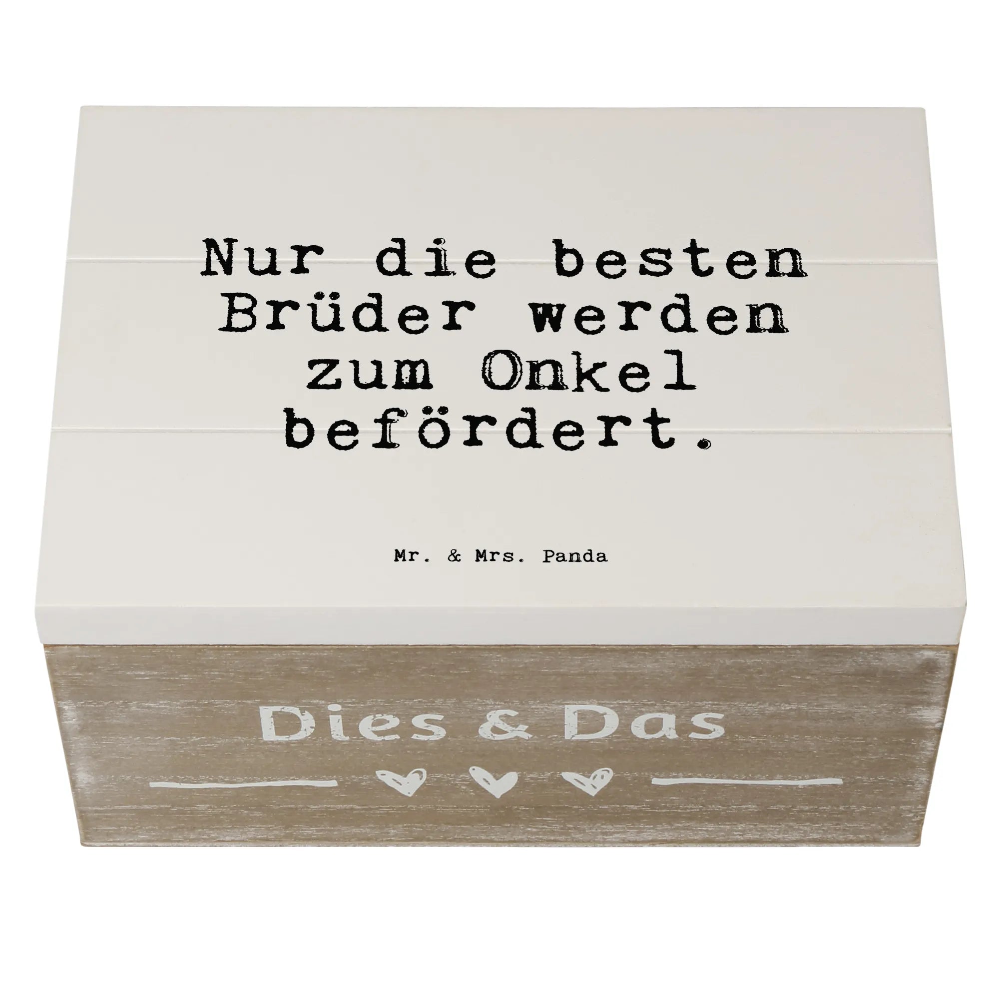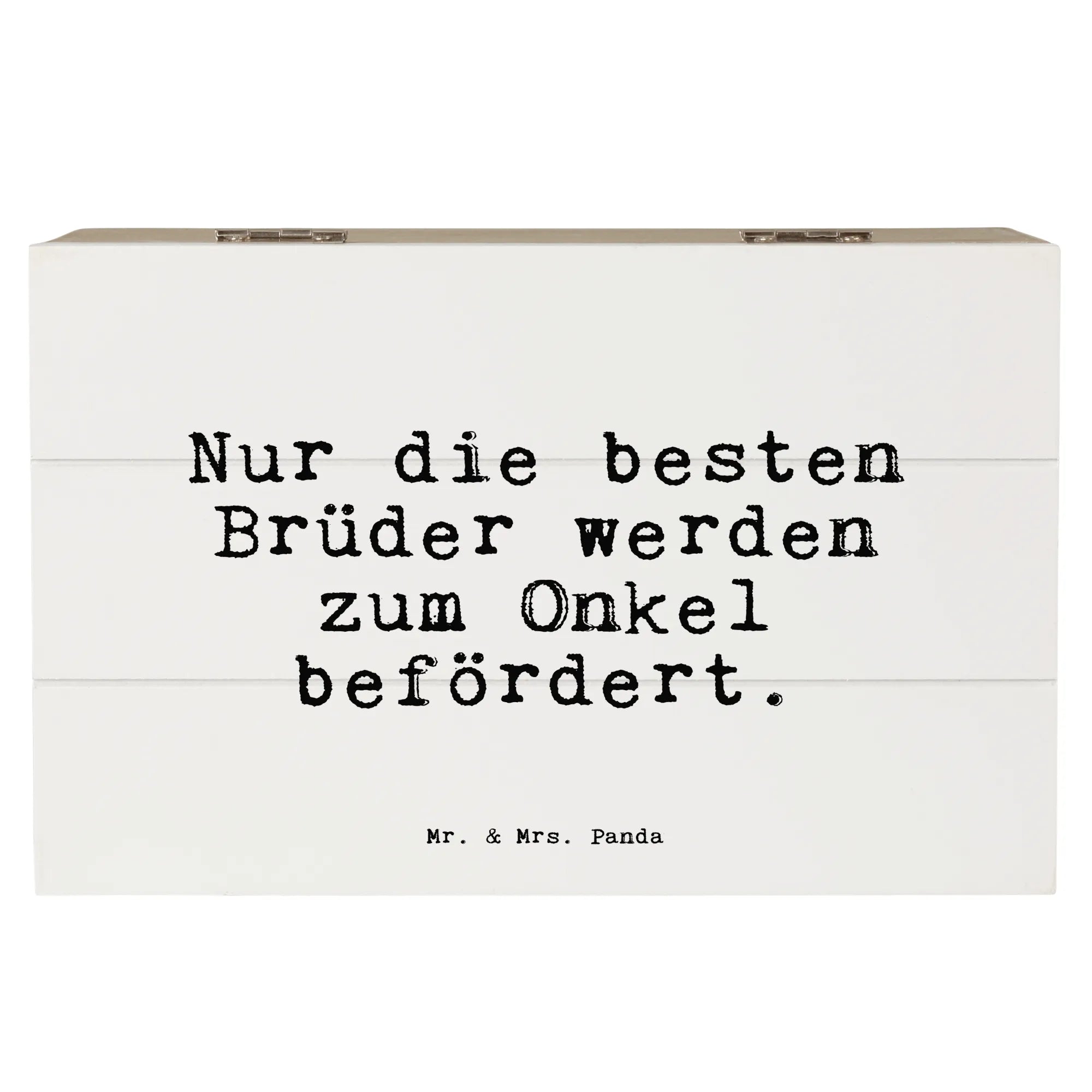 Nur die besten Brüder werden zum Onkel befördert. Diese zauberhafte Holzkiste von Mr. & Mrs. Panda ist das ideale Geschenk für Deinen Bruder, wenn er bald Onkel wird. Liebevoll gestalteter Druck und eine klare Botschaft machen diese Holzbox zu einer besonderen Erinnerungskiste für Geburt, Taufe oder als Überraschung zur Bekanntgabe der frohen Nachricht.