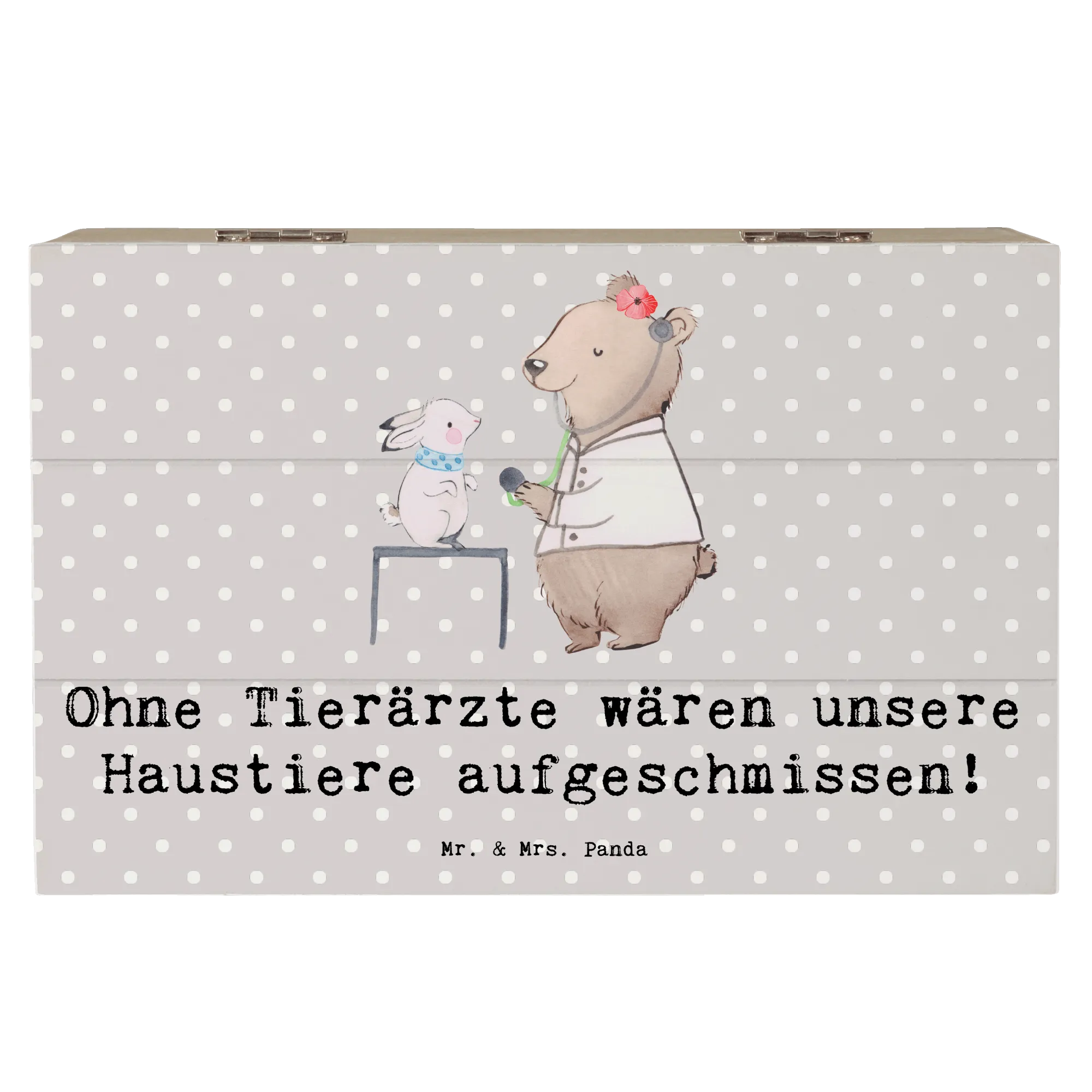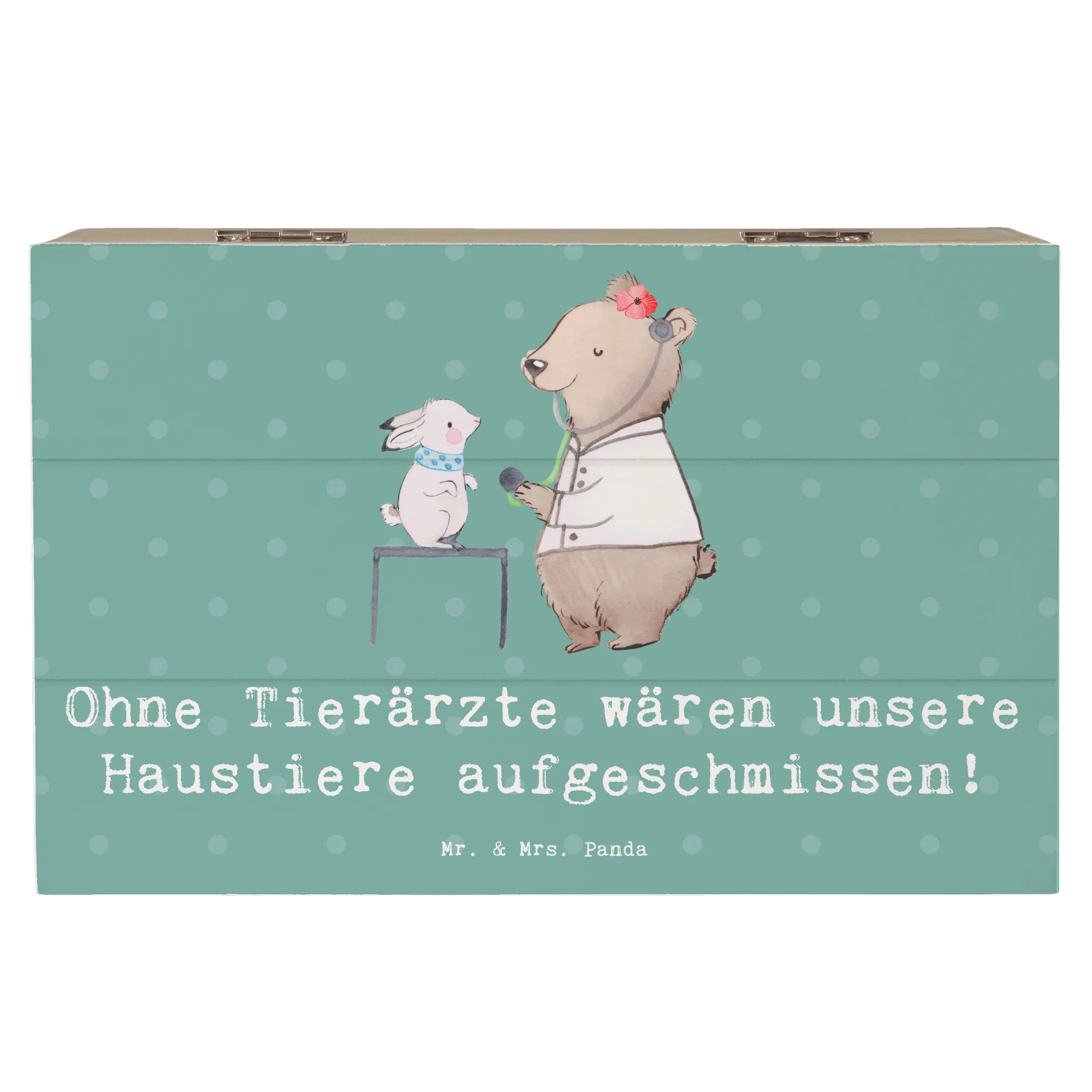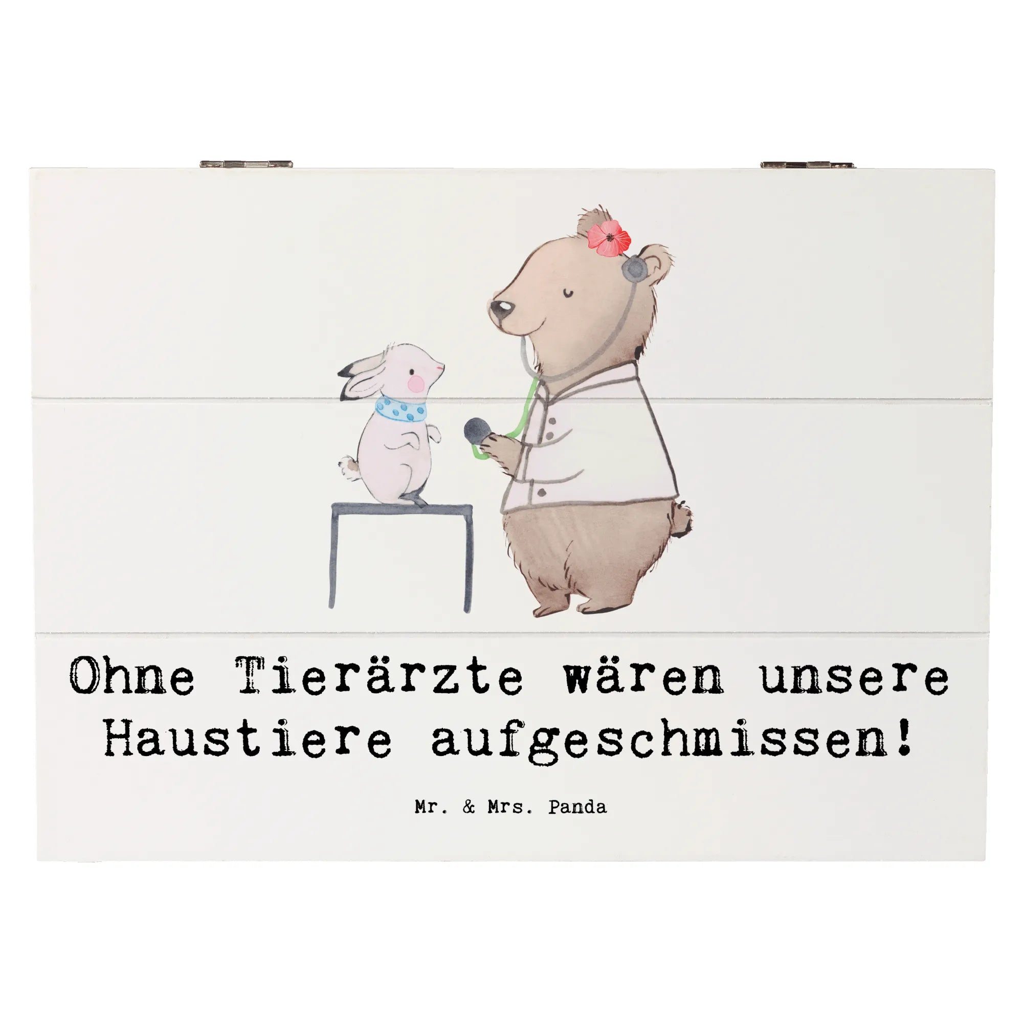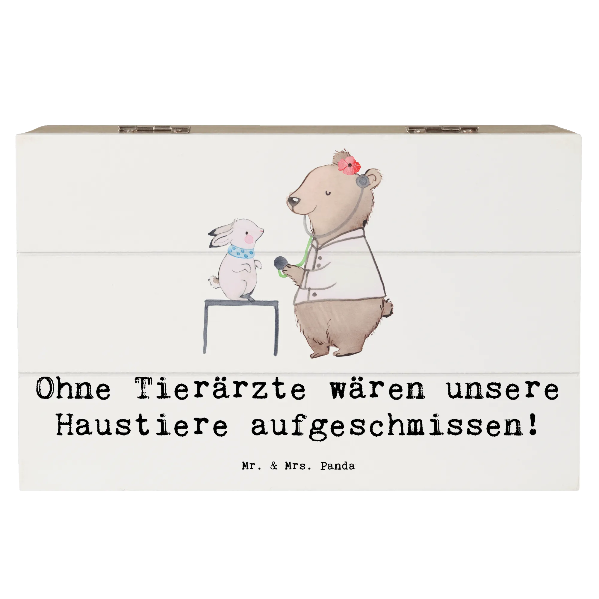 Entdecke die wunderschöne Holzkiste von Mr. & Mrs. Panda, die speziell für Tierarzt-Fans gestaltet wurde! Diese liebevoll designte Erinnerungskiste ist nicht nur ein praktischer Aufbewahrungsort für all Deine Schätze, sondern auch ein tolles Geschenk für jeden Tierarzt oder Tierliebhaber. Mit dem spritzigen Spruch "Ohne Tierärzte wären unsere Haustiere aufgeschmissen!" ist diese Truhe ein echter Hingucker und zaubert jedem ein Lächeln ins Gesicht.