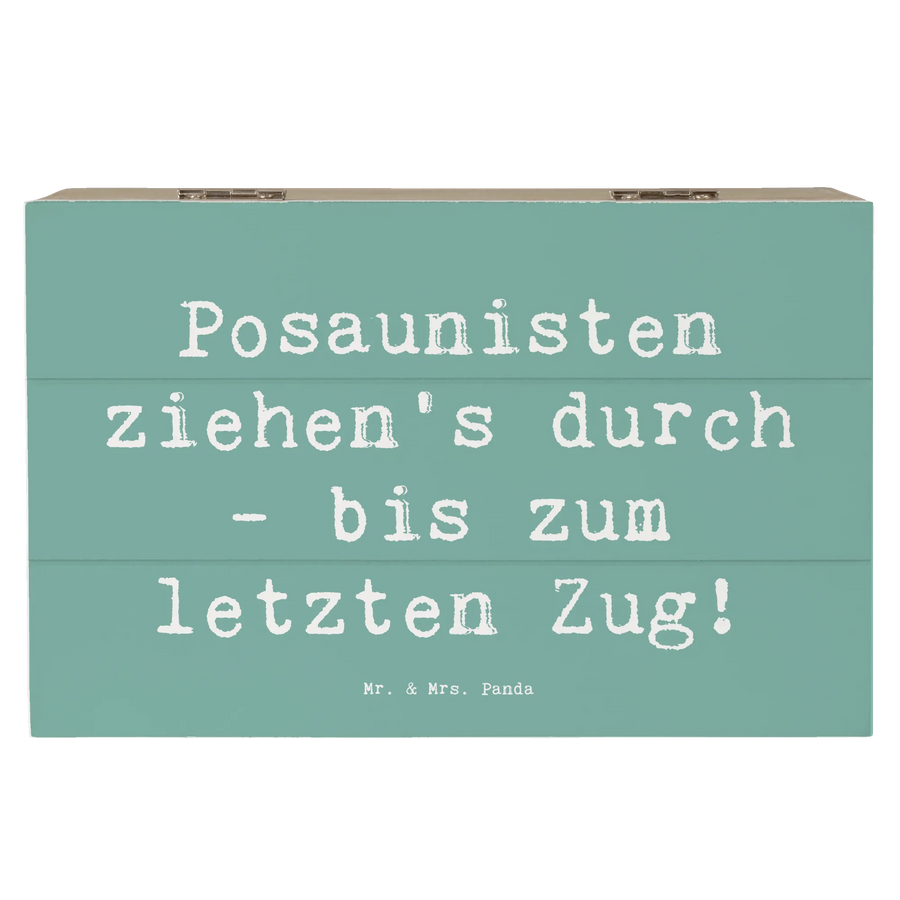 Die zauberhafte Holzkiste mit dem Motiv Trombone aus der Kollektion 'Musizieren & Instrumente' von Mr. & Mrs. Panda ist das perfekte Geschenk für alle musikbegeisterten Menschen in deinem Leben.