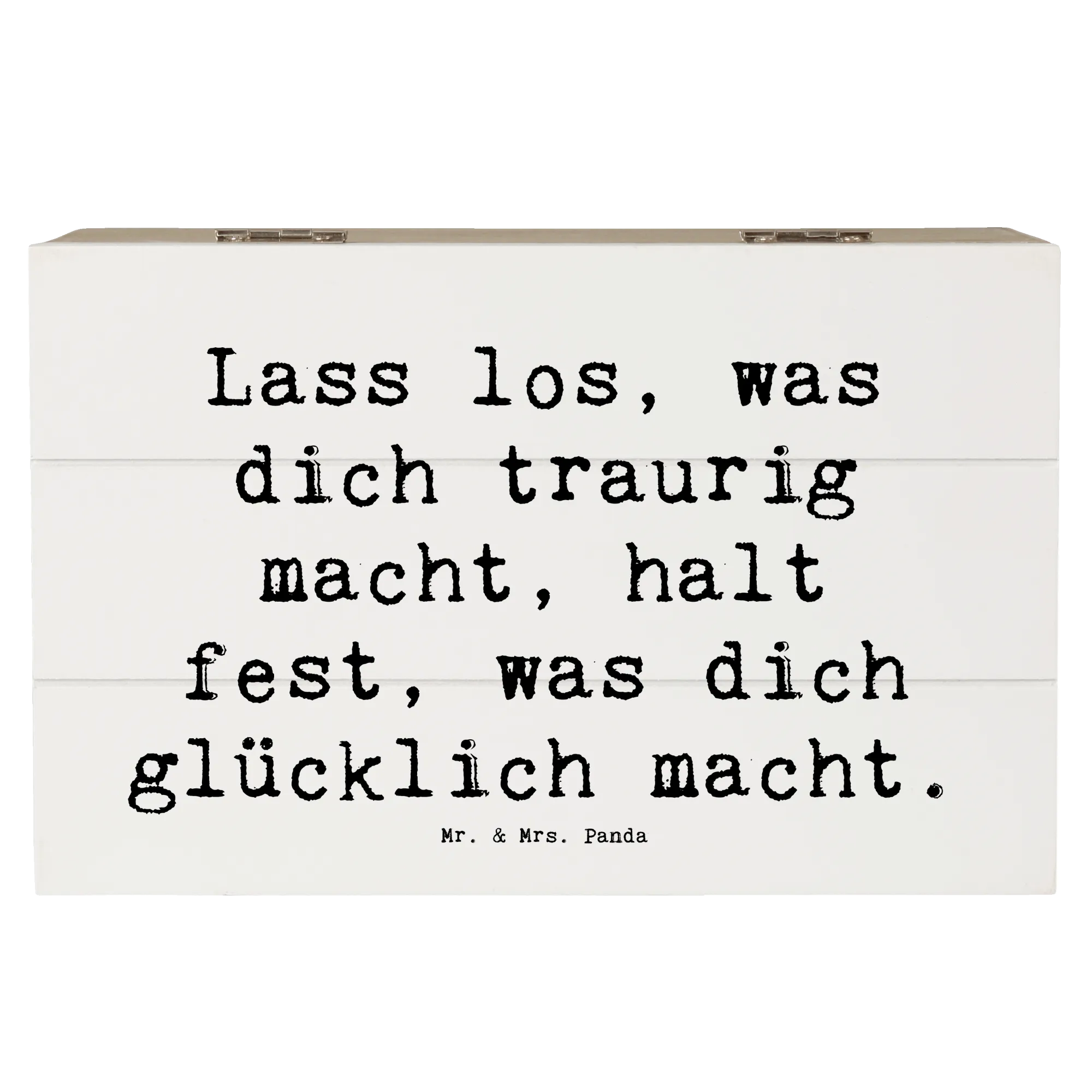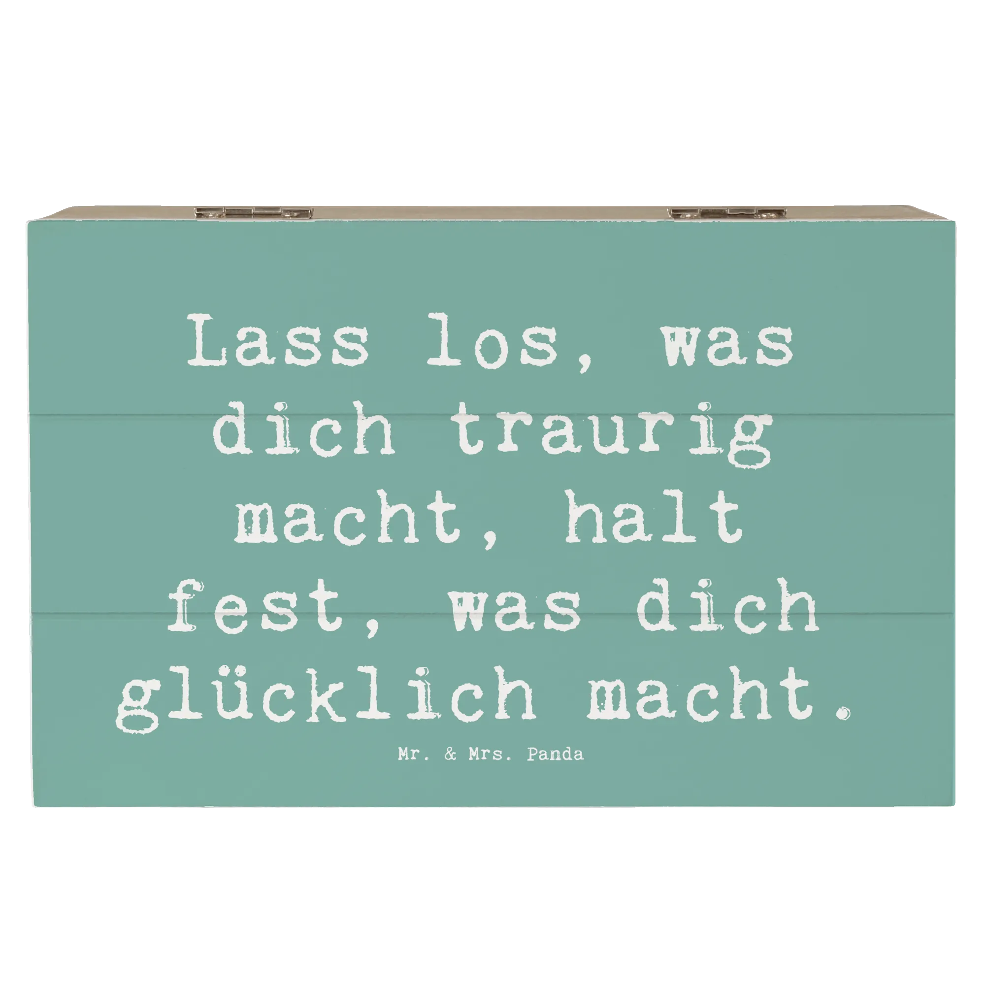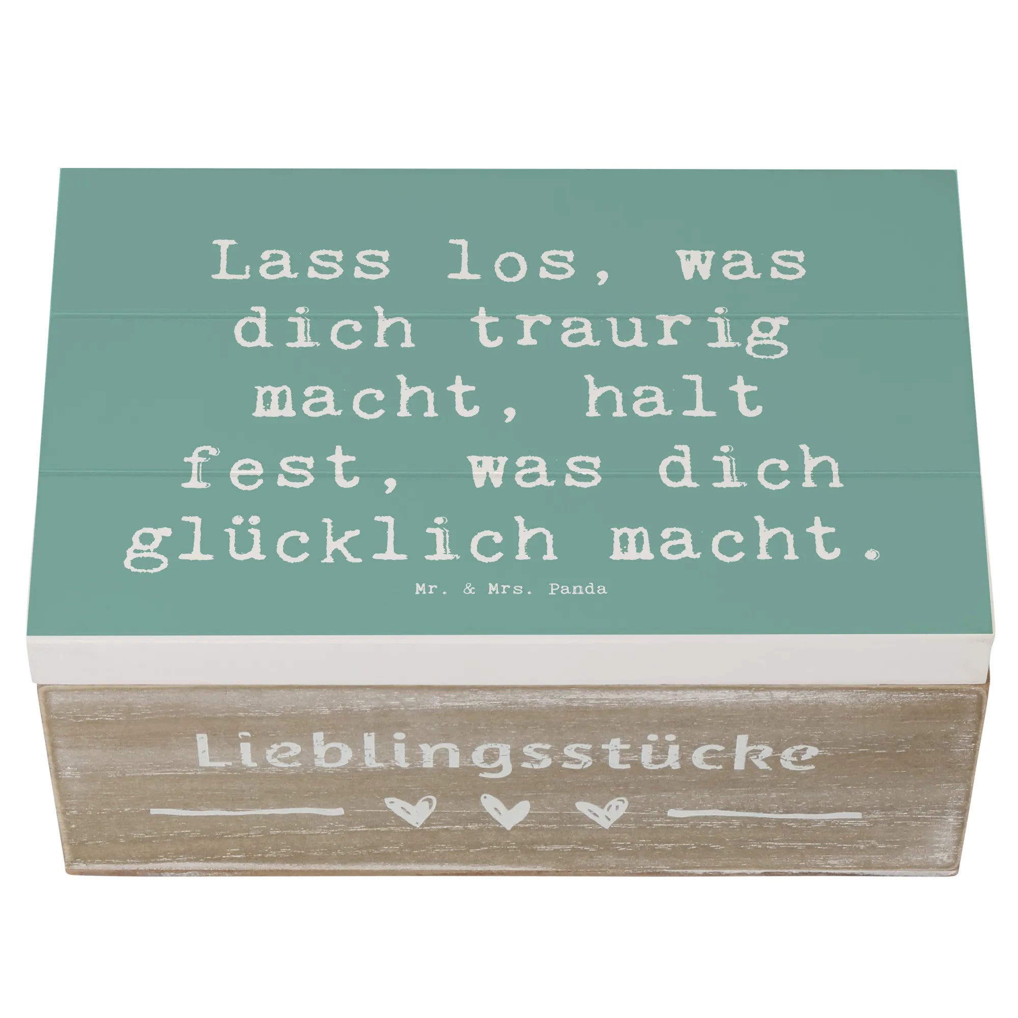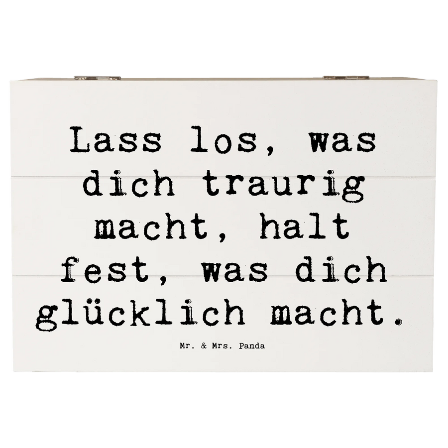Die wunderschöne Holzkiste von Mr. & Mrs. Panda ist das perfekte Geschenk für jeden, der Verluste betrauern und gleichzeitig loslassen möchte. Sie gehört zur besonderen Kollektion "Mutmacher", die Trost und Zuversicht spendet. Mit dem liebevollen Spruch "Lass los, was dich traurig macht, halt fest, was dich glücklich macht." ist diese Kiste mehr als nur ein Aufbewahrungsort. Sie erinnert uns daran, all die schönen Momente im Leben festzuhalten.