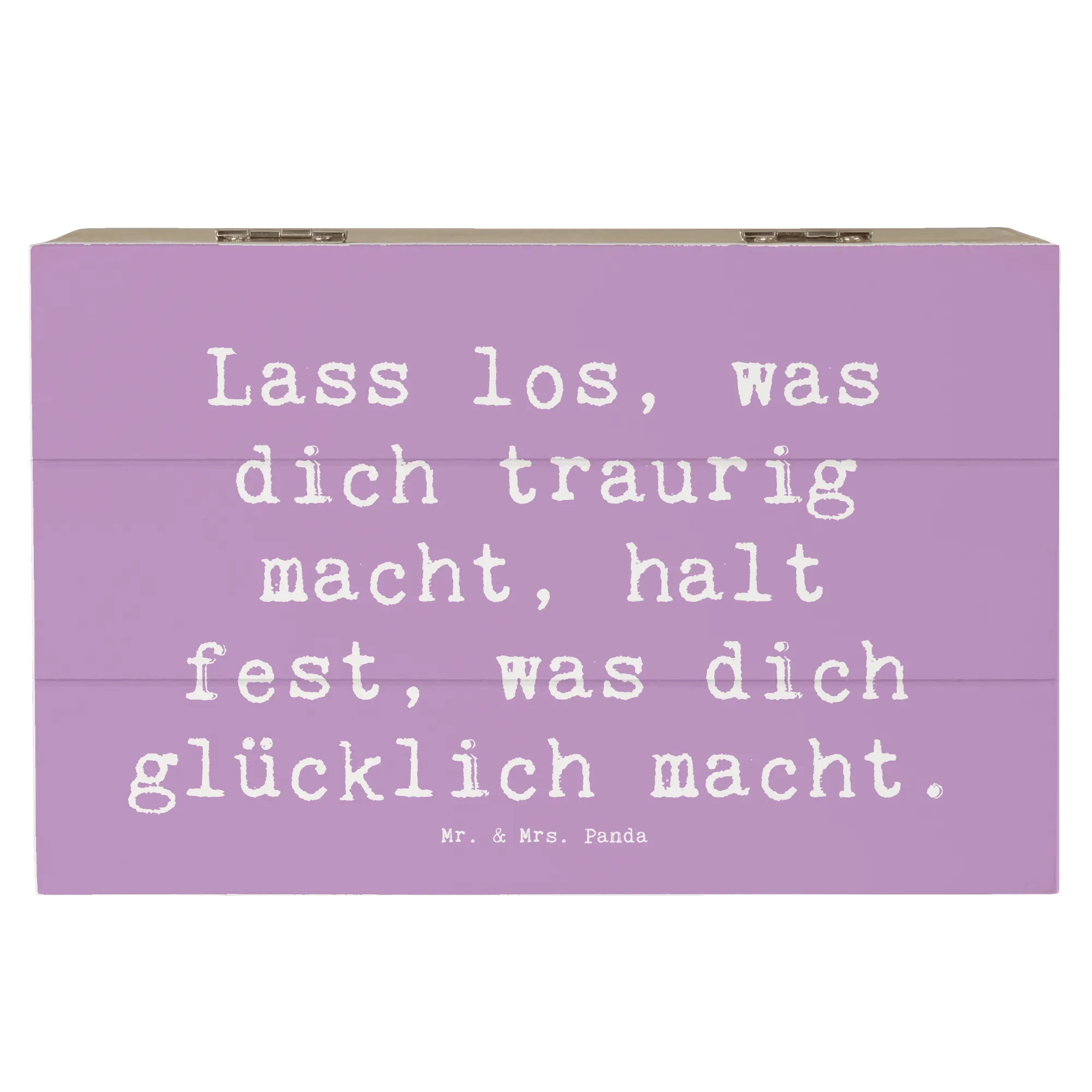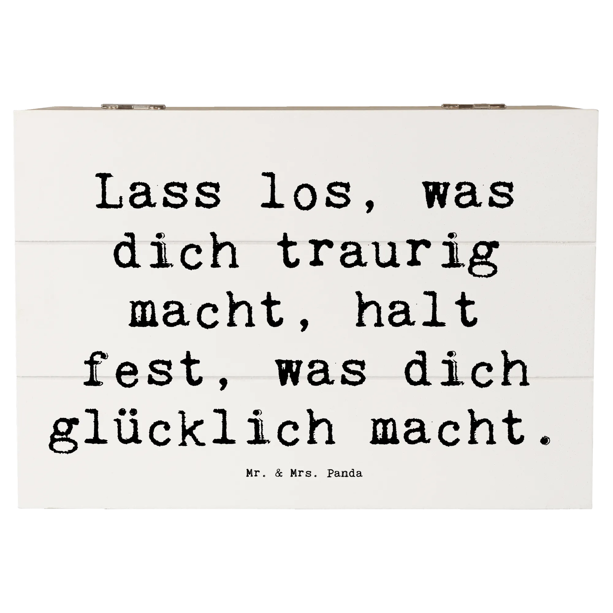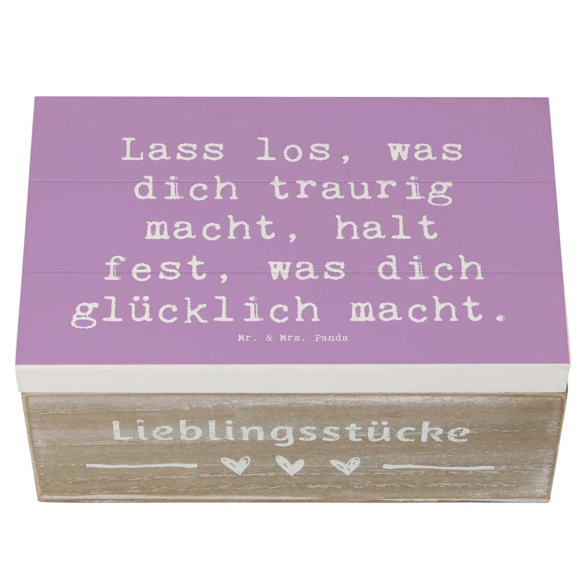 Die wunderschöne Holzkiste von Mr. & Mrs. Panda ist das perfekte Geschenk für jeden, der Verluste betrauern und gleichzeitig loslassen möchte. Sie gehört zur besonderen Kollektion "Mutmacher", die Trost und Zuversicht spendet. Mit dem liebevollen Spruch "Lass los, was dich traurig macht, halt fest, was dich glücklich macht." ist diese Kiste mehr als nur ein Aufbewahrungsort. Sie erinnert uns daran, all die schönen Momente im Leben festzuhalten.