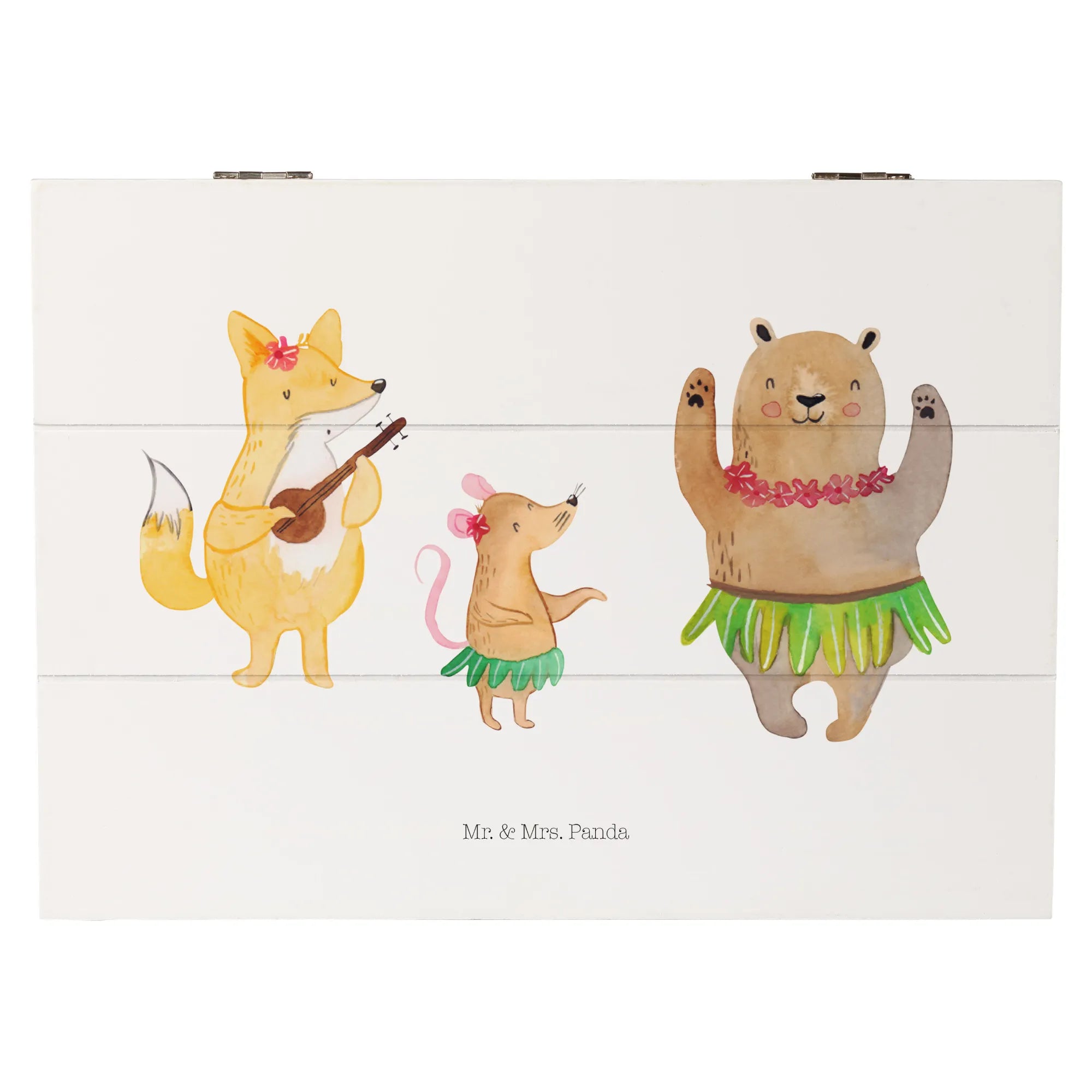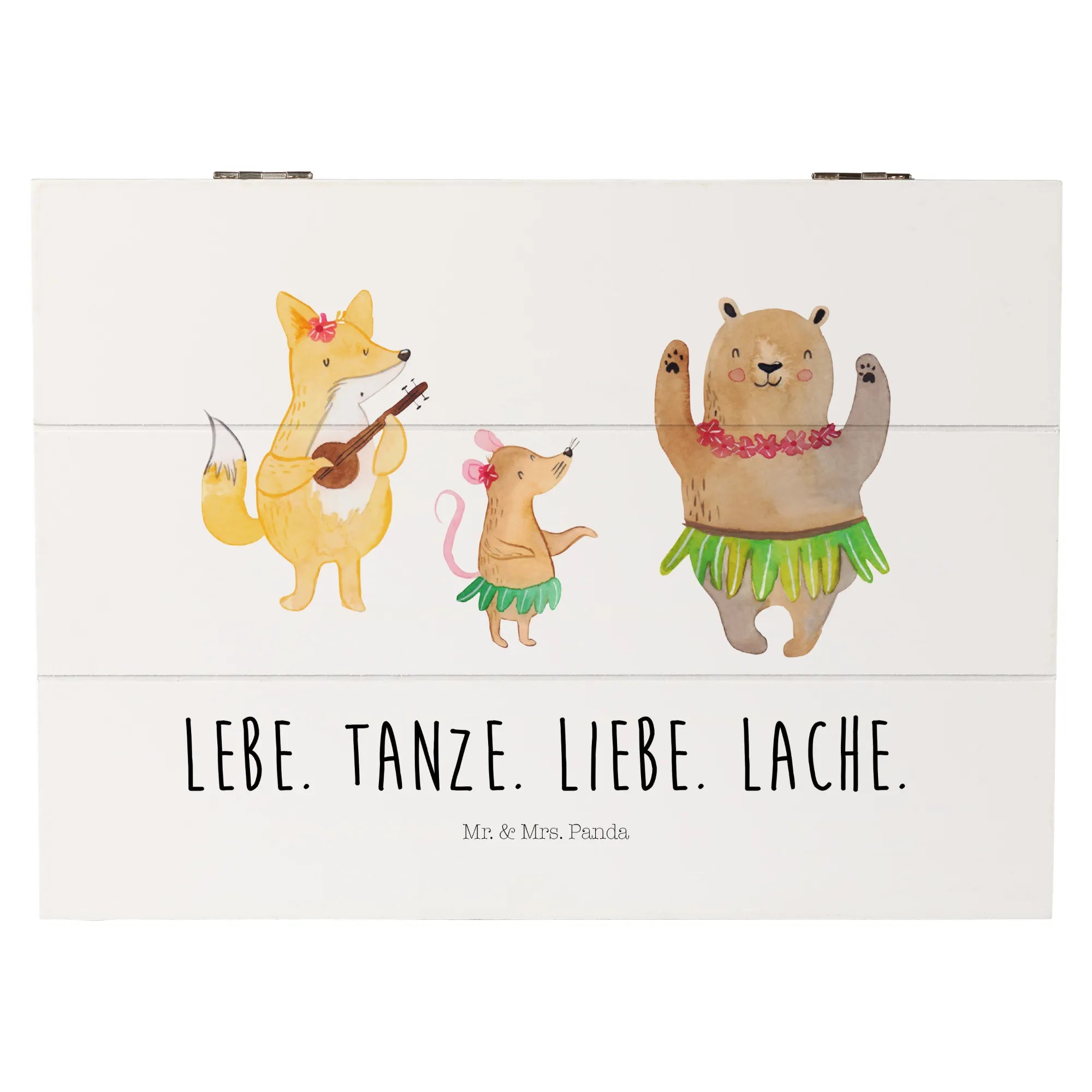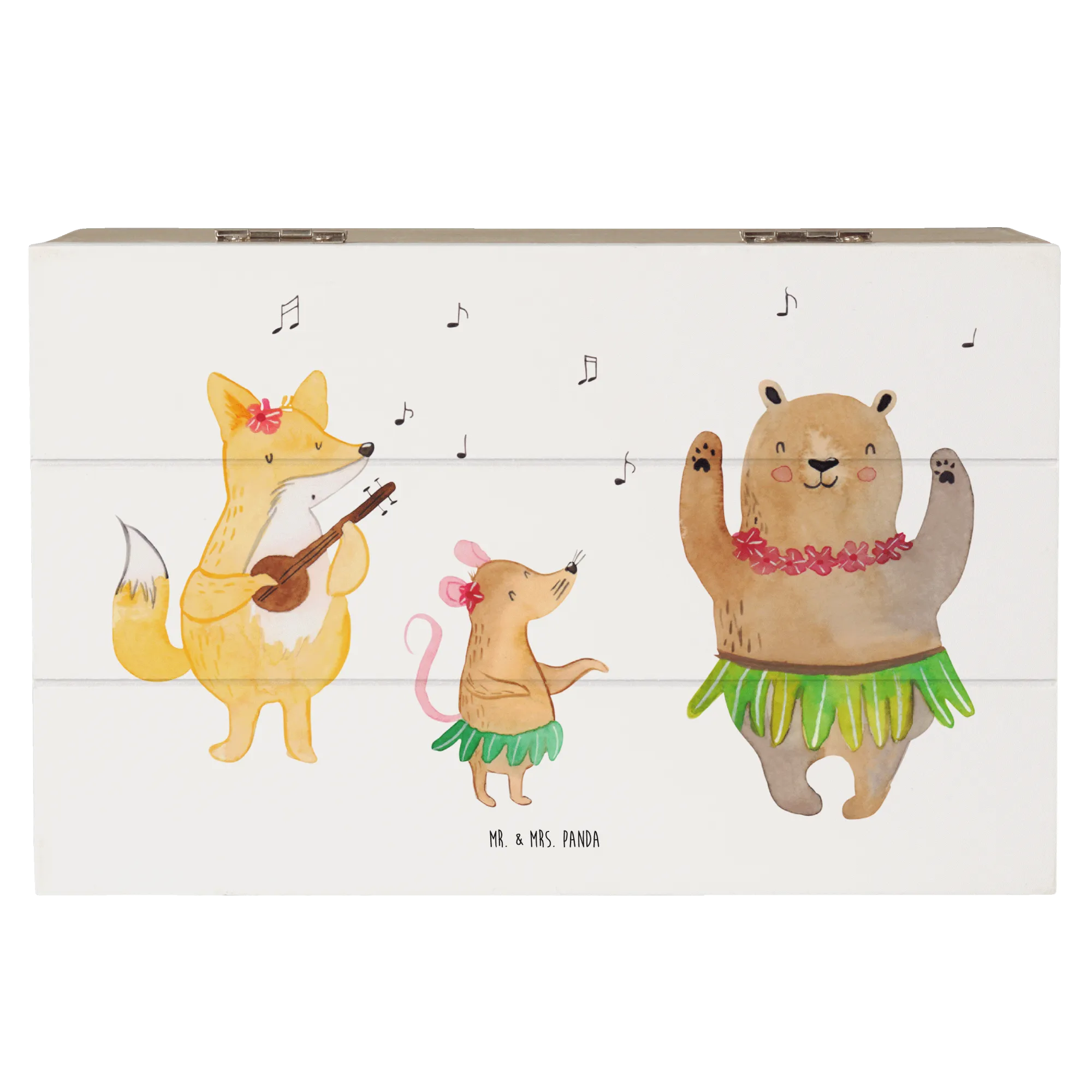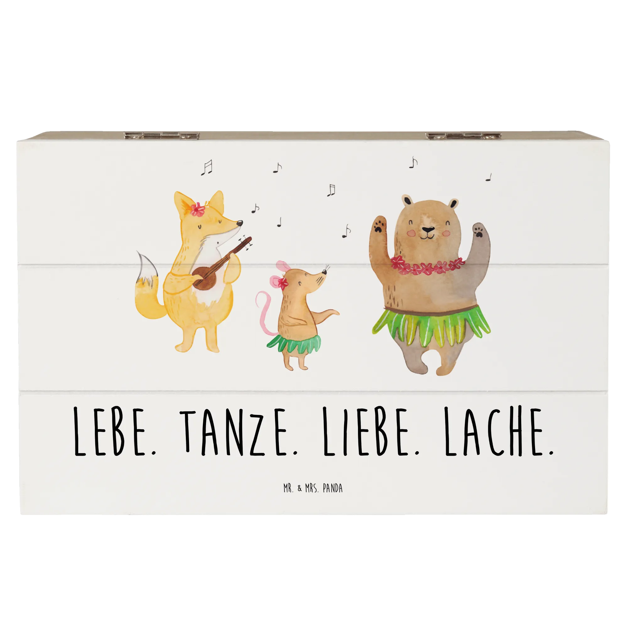 Mit einem fröhlichen und bunten Design, das die niedlichen Waldtiere zeigt, die zu Hawaiianischer Musik tanzen, bringt diese Schatzkiste sofort gute Laune in jeden Raum.