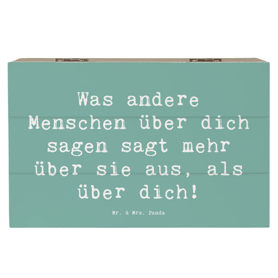 Mit einem ansprechenden Design in Meeresbrise und dem wertvollen Spruch "Was andere Menschen über dich sagen, sagt mehr über sie aus, als über dich!" vermittelt sie eine wunderbare Botschaft der Zuversicht. Darin versteckt sich die Möglichkeit, auch in schwierigen Zeiten Kraft zu schöpfen. Ob zum Geburtstag, zur Kommunion oder einfach als kleine Aufmunterung – diese Schatzbox ist ein Geschenk, das von Herzen kommt und tief berührt.