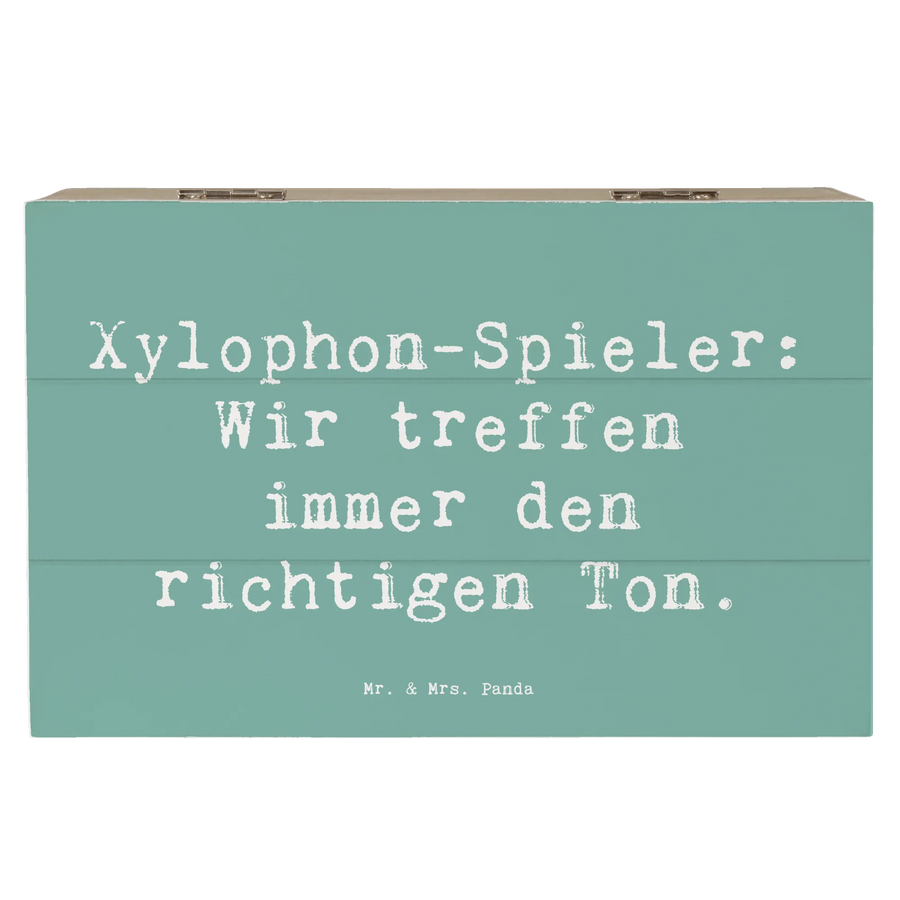 Überrasche einen Musiker oder Musikbegeisterten mit dieser liebevollen Holzkiste. Der Slogan "Xylophon-Spieler: Wir treffen immer den richtigen Ton" bringt ein Lächeln auf die Gesichter und macht das Geschenk besonders.