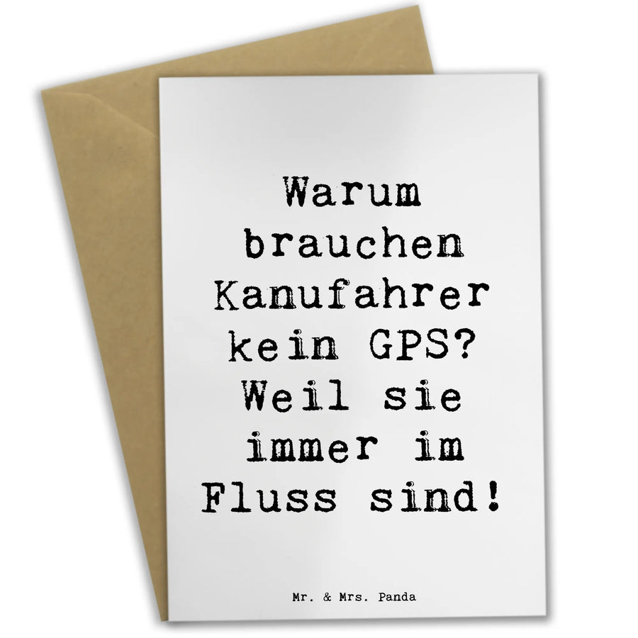 Die Grußkarte Kanu von Mr. & Mrs. Panda ist das perfekte Geschenk für alle, die die Leidenschaft für den Wassersport teilen. Mit einem charmanten Design und dem humorvollen Spruch "Warum brauchen Kanufahrer kein GPS? Weil sie immer im Fluss sind!" spricht diese Karte besonders Kanufahrer, Sportbegeisterte und Freizeitliebhaber an. Egal, ob du sie zu einem Geburtstag, zur Hochzeit oder einfach nur so verschenkst, diese Karte sorgt für ein Lächeln im Gesicht des Beschenkten.