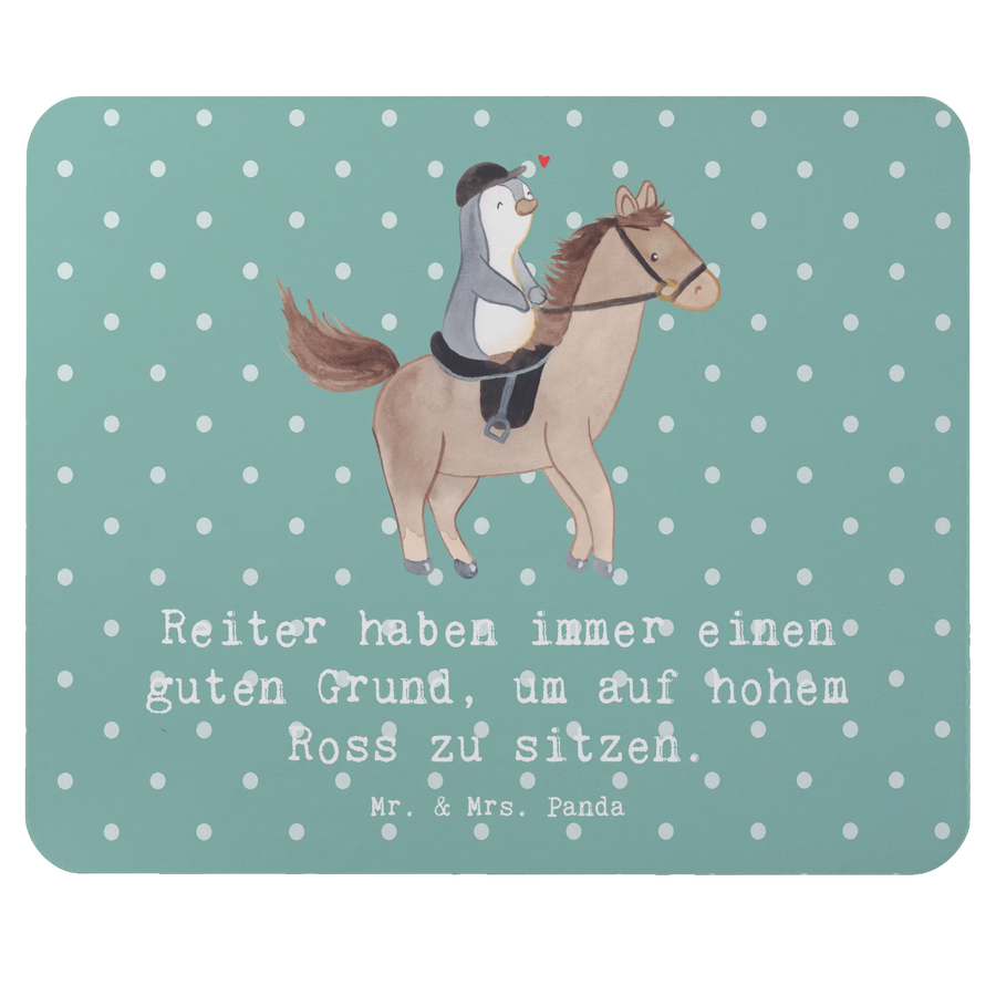 Du suchst nach einem besonderen Geschenk für einen Pferdeliebhaber oder einen passionierten Reiter? Dann ist das ein wunderschönes und angenehmes Mauspad von Mr. & Mrs. Panda genau das Richtige! Dieses Mauspad kommt mit einem liebevoll gestalteten Motiv aus der Welt des Reitsports und einem witzigen Spruch: "Reiter haben immer einen guten Grund, um auf hohem Ross zu sitzen." Damit zauberst Du nicht nur ein Lächeln ins Gesicht, sondern bringst auch ein Stück Leidenschaft für den Reitsport in den Arbeitsalltag.