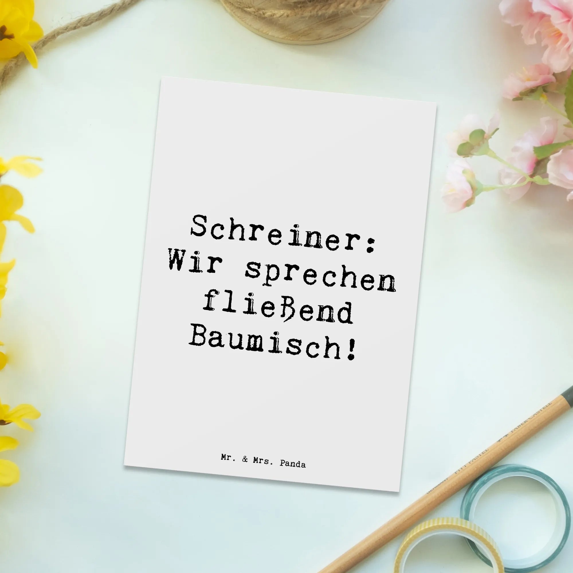 Postkarte Spruch Schreiner: Wir sprechen fließend Baumisch! - Meeresbrise