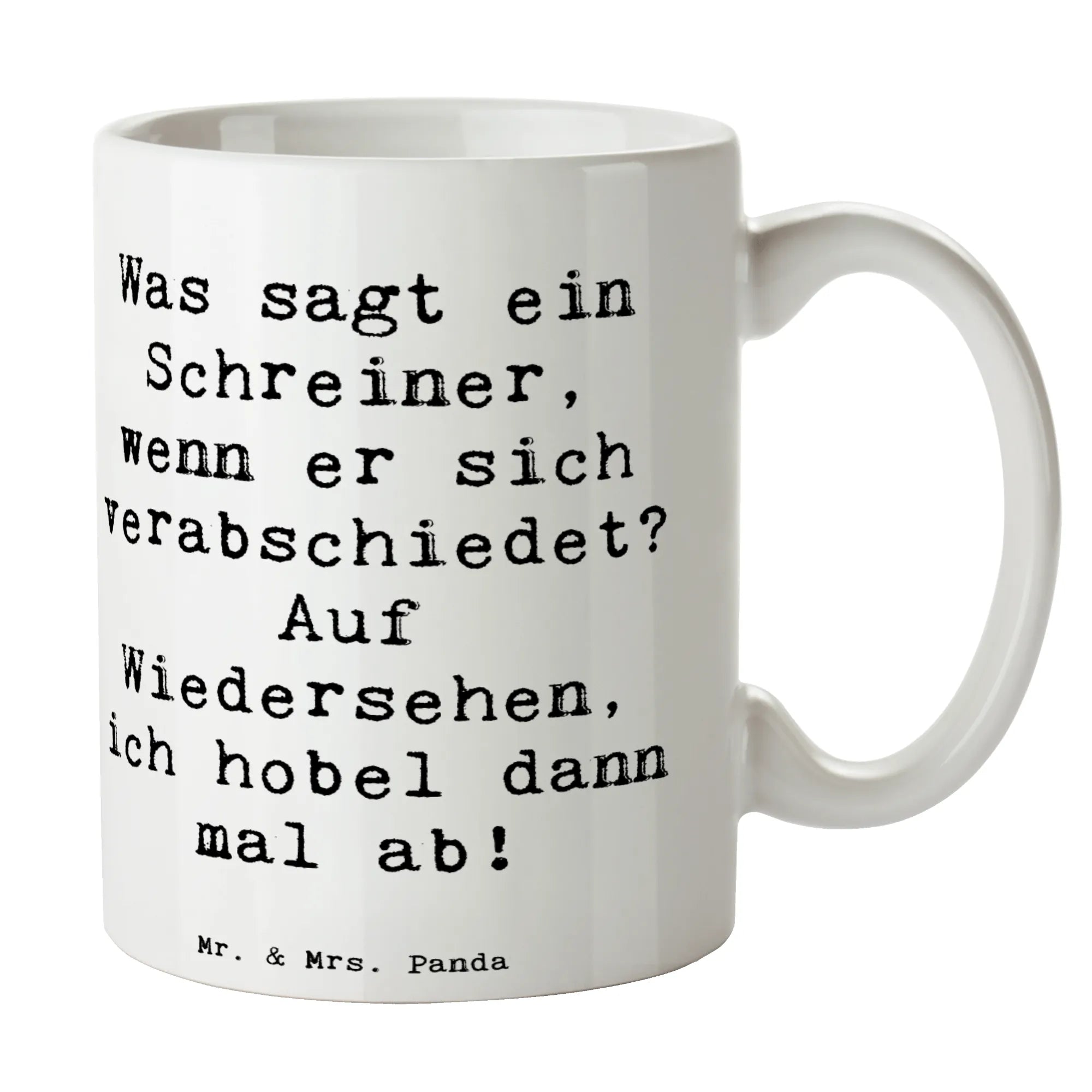 Tasse Spruch Was sagt ein Schreiner, wenn er sich verabschiedet? Auf Wiedersehen, ich hobel dann mal ab! - Weiß