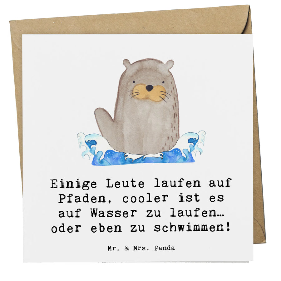 Die quadratische Karte „Schwimmen“ von Mr. & Mrs. Panda bringt sommerliche Leichtigkeit und sportliche Motivation in jeden Anlass. Mit dem charmanten Spruch „Einige Leute laufen auf Pfaden, cooler ist es auf Wasser zu laufen… oder eben zu schwimmen!“ und einem liebevoll handgezeichneten Aquarellmotiv ist diese Grußkarte perfekt als Geburtstagskarte, Hochzeitskarte, Einladungskarte oder Glückwunschkarte für Sportler.