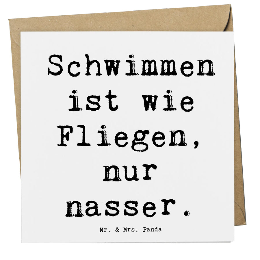 Das bezaubernde Motiv zeigt den Spruch: 'Schwimmen ist wie Fliegen, nur nasser.' – perfekt für alle Wasserratten und Schwimmsportler! Ob für einen Geburtstag, eine Hochzeit oder einfach nur so als kleine Aufmerksamkeit – diese Karte bringt garantiert Freude.