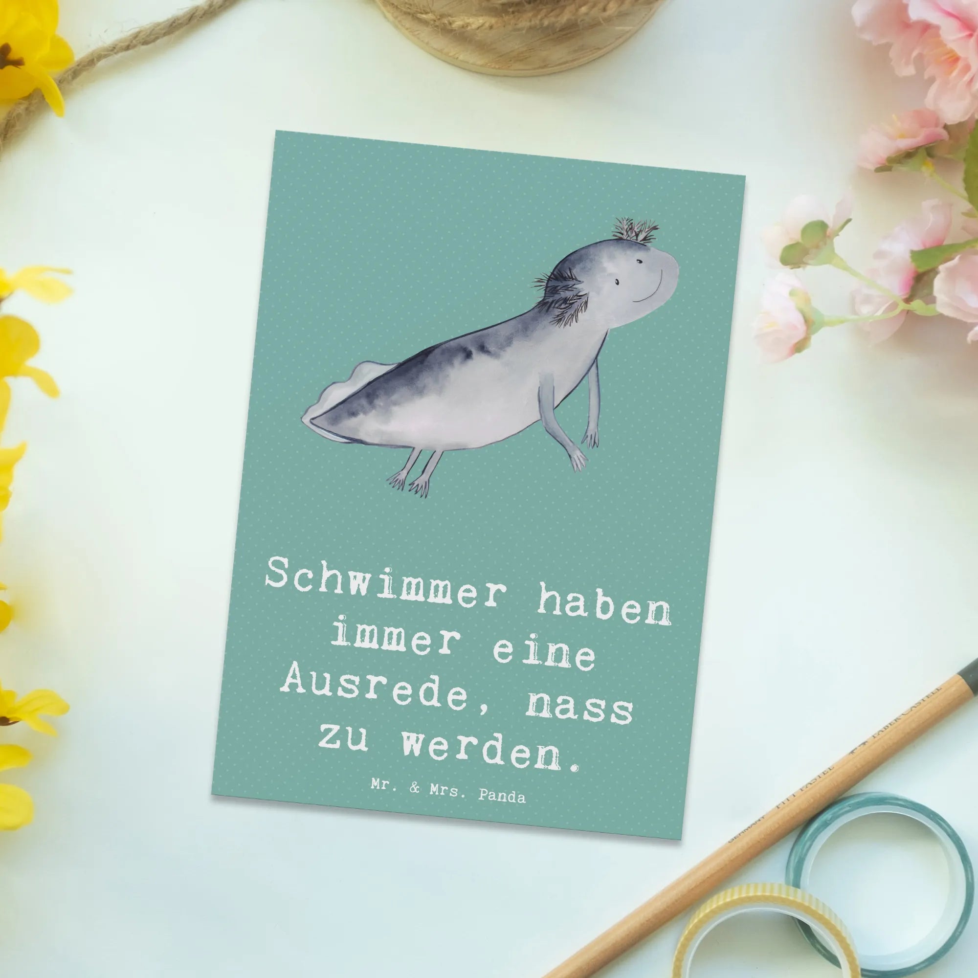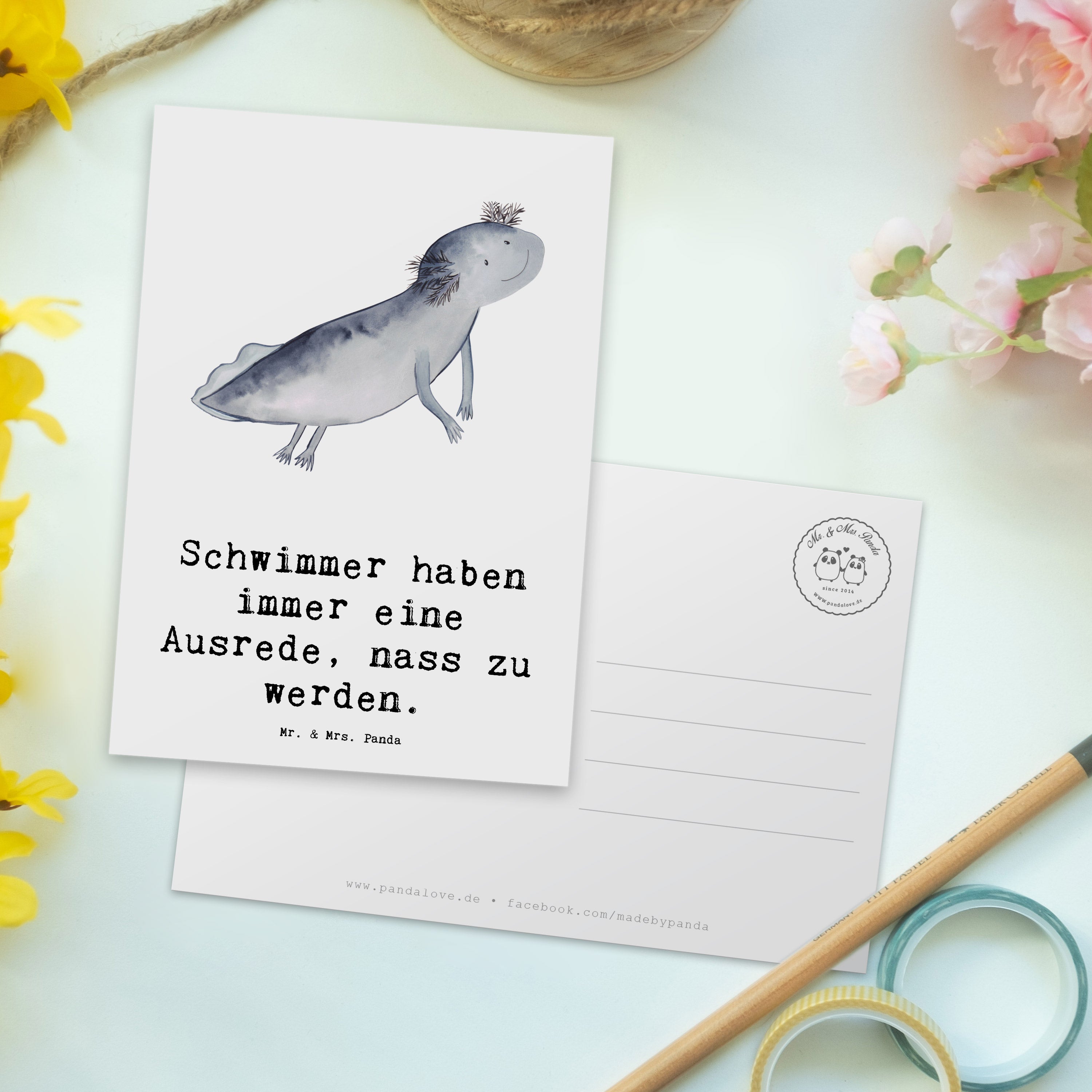 Diese einzigartige Postkarte von Mr. & Mrs. Panda ist perfekt, um deine Grüße in einem niedlichen Design zu übermitteln. Mit einem hochwertigen Karton von 150 mm und einer Dicke von 1 mm bekommst du eine Karte, die nicht nur witzige Sprüche trägt, sondern auch langlebig und robust ist. Die hochglänzend veredelte Vorderseite sorgt dafür, dass dein Gruß besonders schön aussieht, während die matte Rückseite für einfaches Beschriften sorgt. Sie ist ideal für besondere Anlässe wie Geburtstage, Hochzeiten und Taufen. Lass deiner Kreativität freien Lauf und gestalte die Rückseite ganz nach deinen Wünschen! Die lang anhaltende Druckfarbe sorgt dafür, dass dein lieber Gruß auch nach langer Zeit noch strahlend schön bleibt.