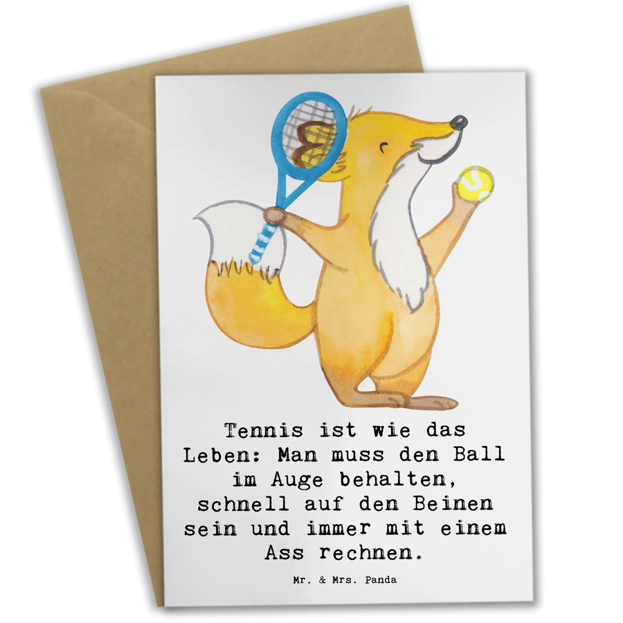 Diese wunderschöne Grußkarte von Mr. & Mrs. Panda ist das perfekte Geschenk für alle Tennisliebhaber! Ob du deinem besten Freund, der gerade ein tolles Turnier gespielt hat, oder deiner Schwester, die ihre Leidenschaft für den Tennissport entdeckt hat, eine Freude machen möchtest – diese Karte passt einfach immer.