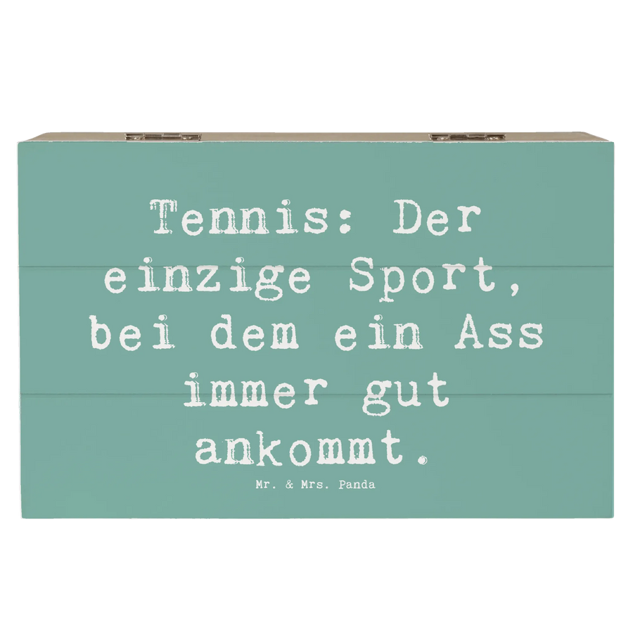 Entdecke die perfekte Holzkiste von Mr. & Mrs. Panda mit dem liebevollen Motiv "Tennis: Der einzige Sport, bei dem ein Ass immer gut ankommt". Diese wunderschöne Kiste ist der ideale Ort, um all deine wertvollen Erinnerungen zu bewahren.