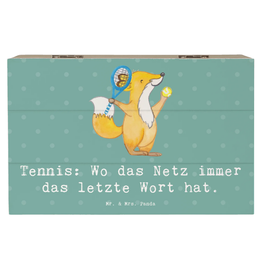 Die wunderschöne Holzkiste von Mr. & Mrs. Panda mit dem spritzigen Motto "Tennis: Wo das Netz immer das letzte Wort hat." ist der ideale Begleiter für alle Tennisliebhaber!