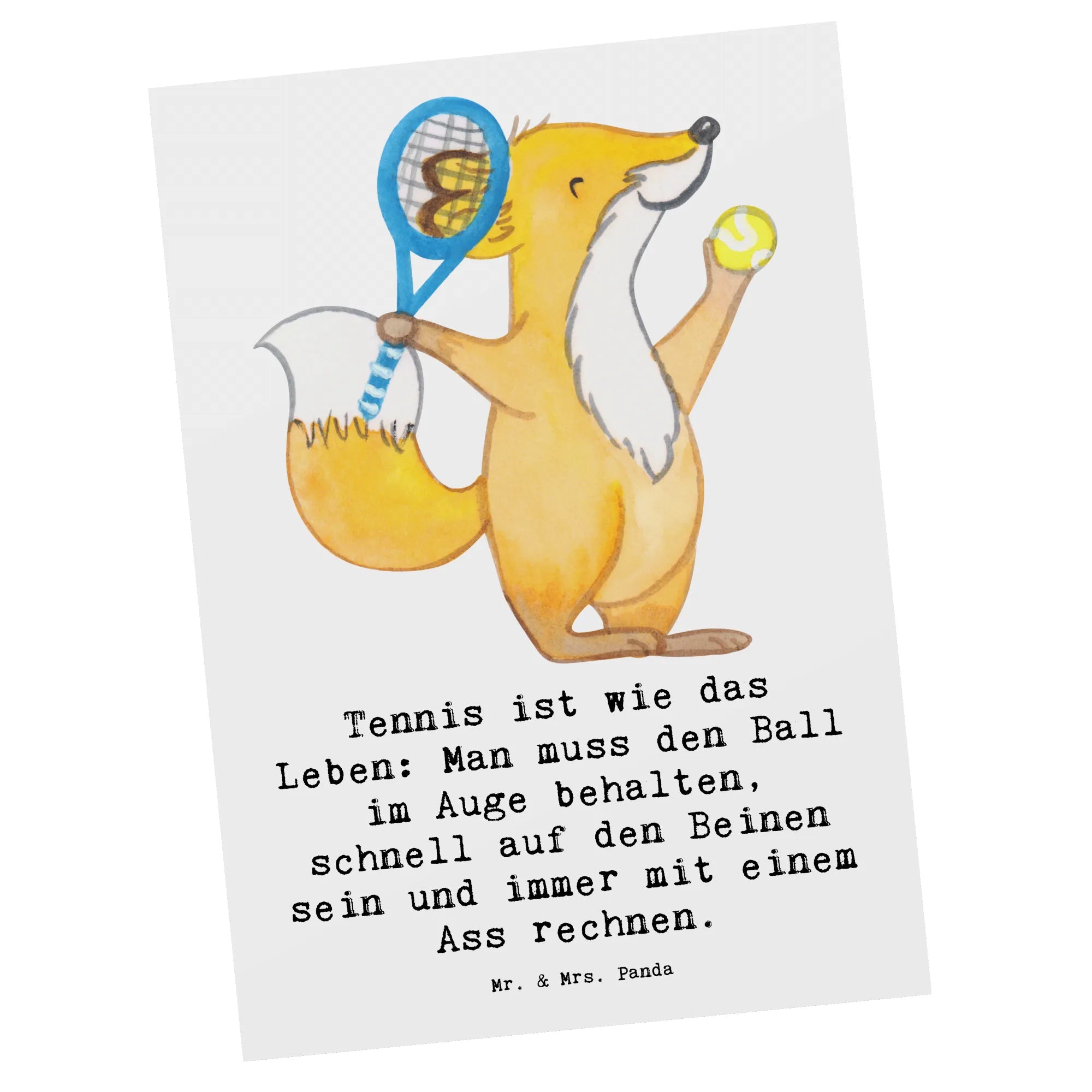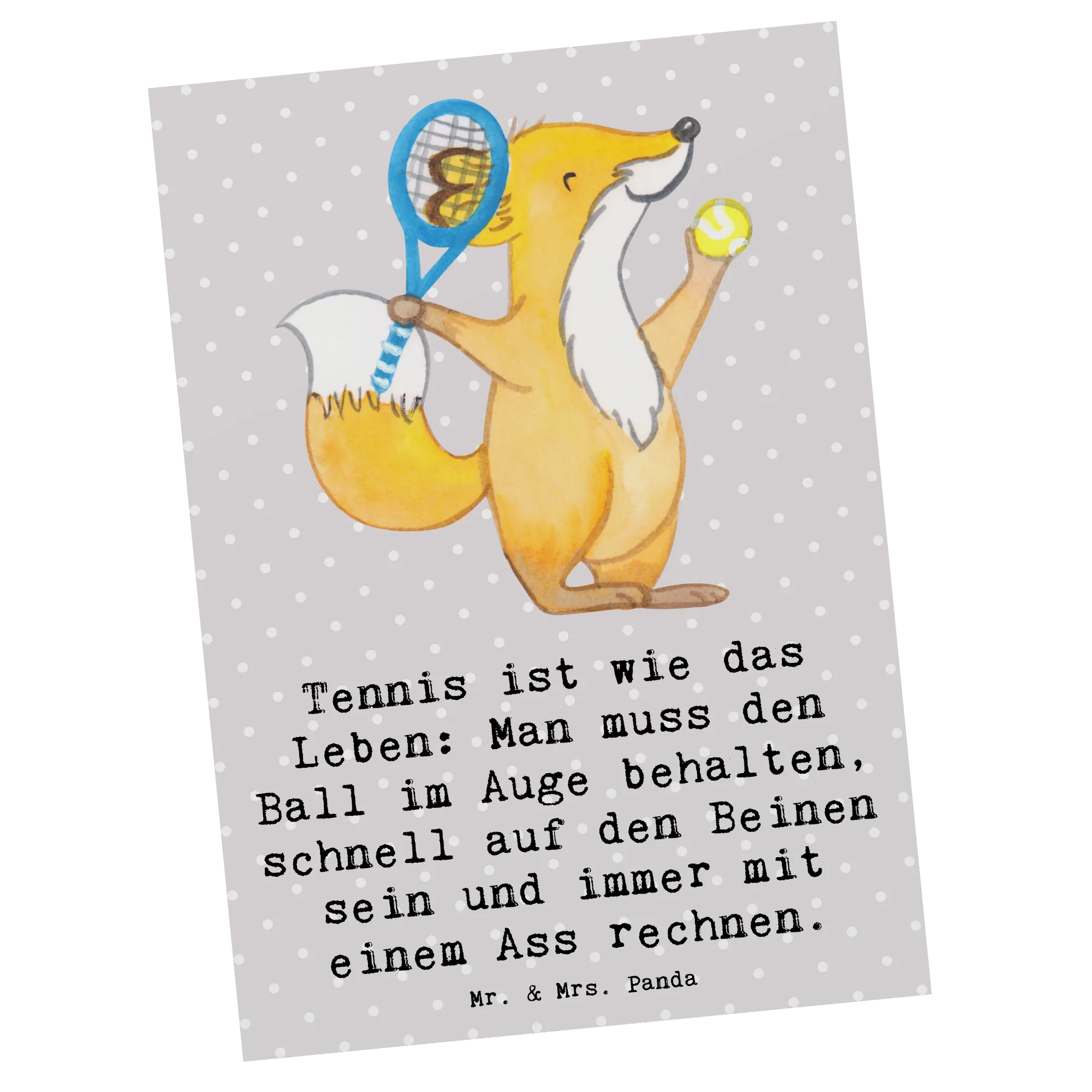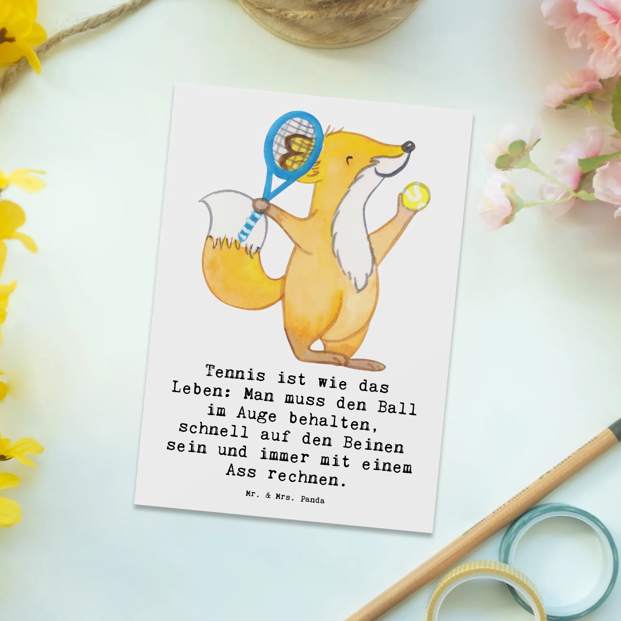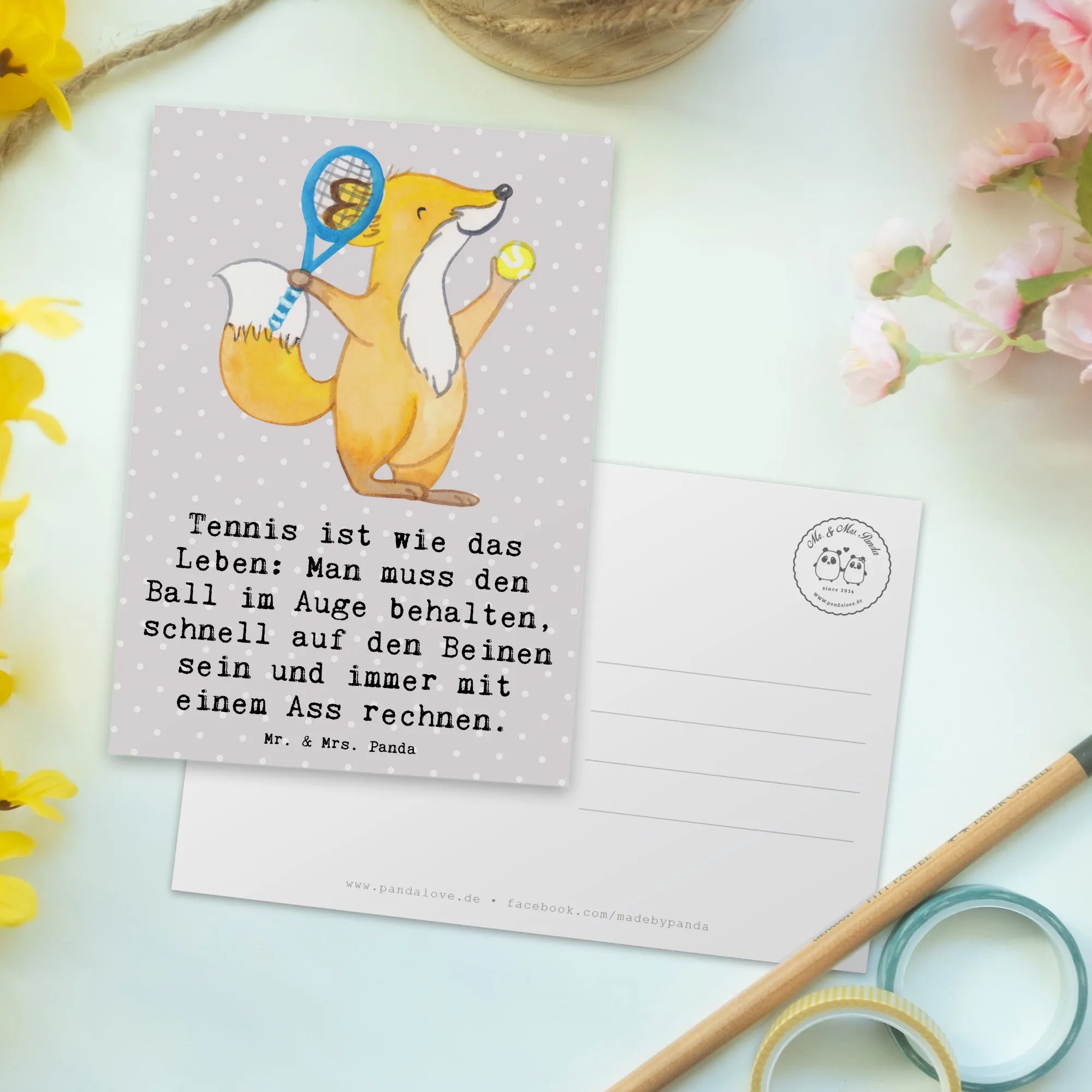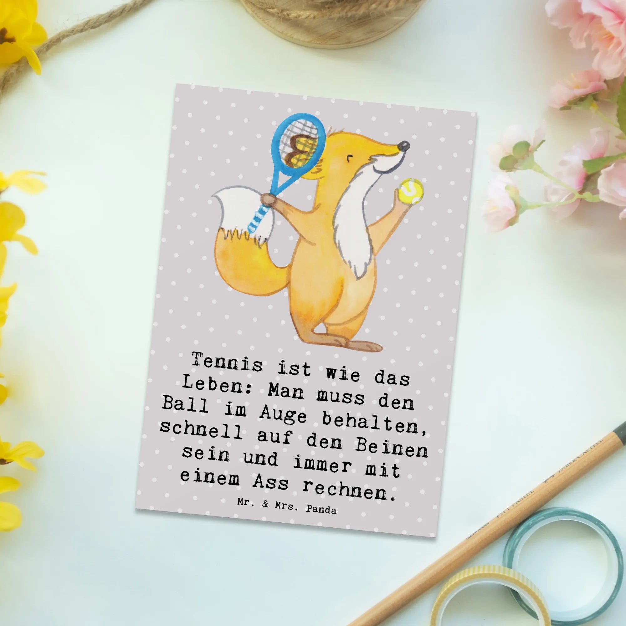 Diese wunderschöne Postkarte von Mr. & Mrs. Panda ist das perfekte Geschenk für alle Tennisliebhaber und Sportbegeisterte! Mit dem motivierenden Spruch "Tennis ist wie das Leben: Man muss den Ball im Auge behalten, schnell auf den Beinen sein und immer mit einem Ass rechnen." versprüht diese Karte einen lebendigen Charme, der nicht nur ein Lächeln zaubert, sondern auch Inspiration bietet.