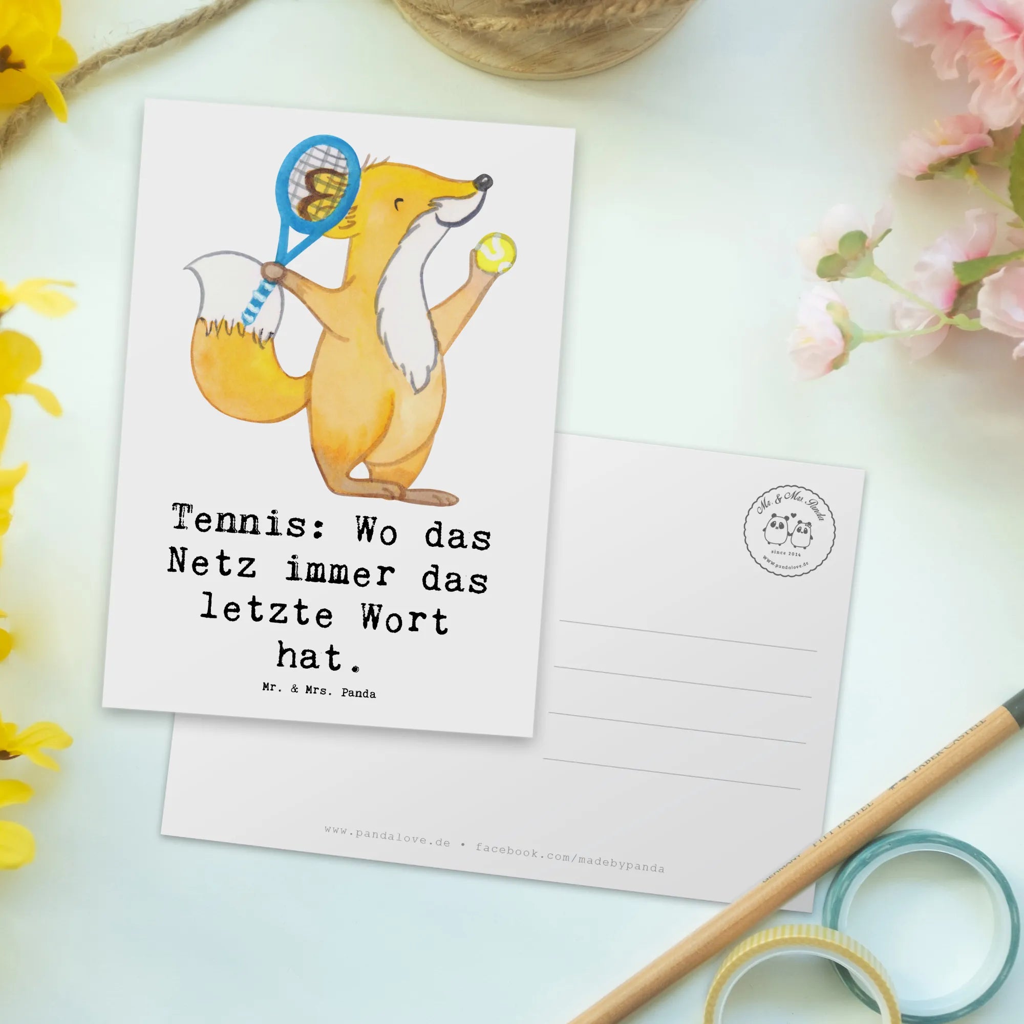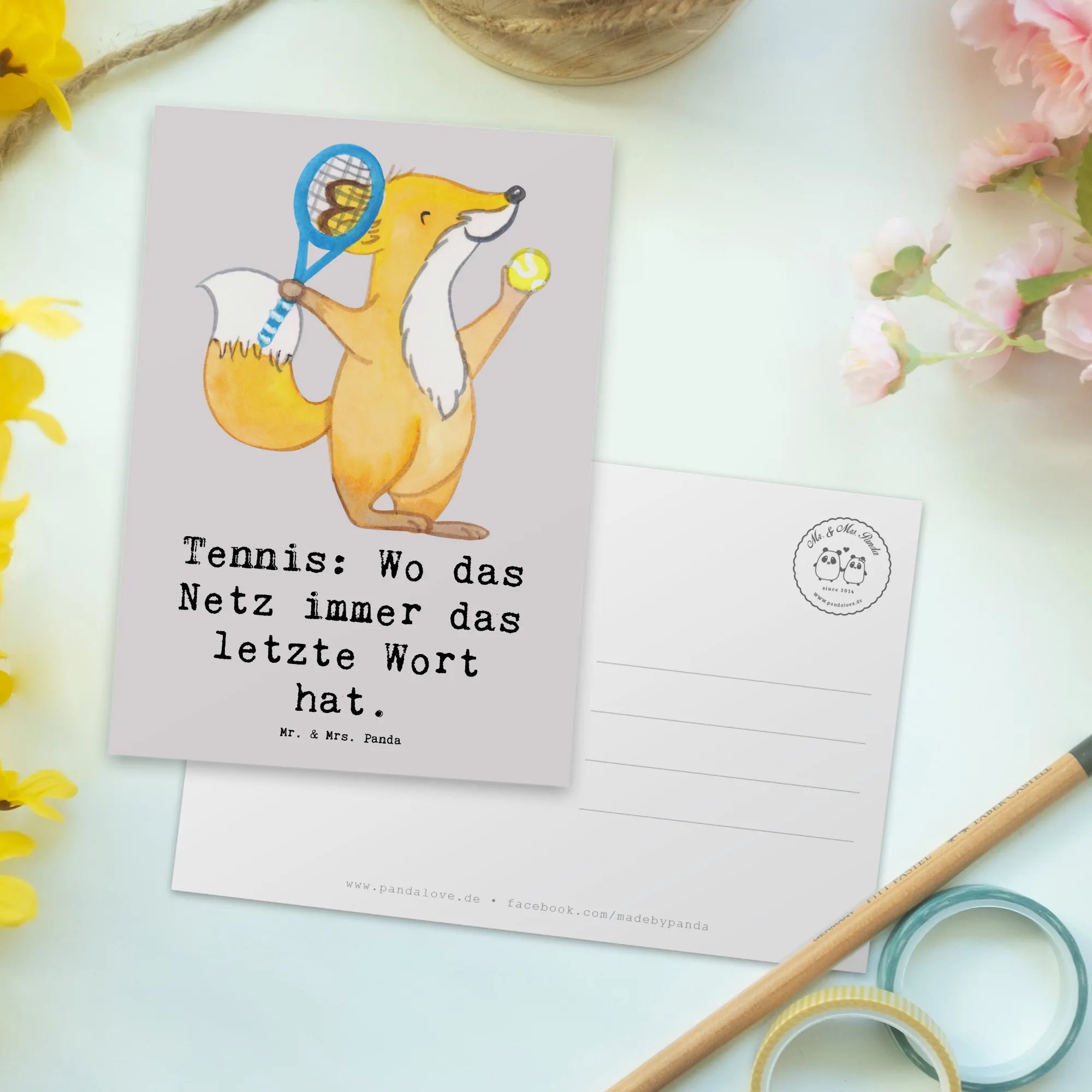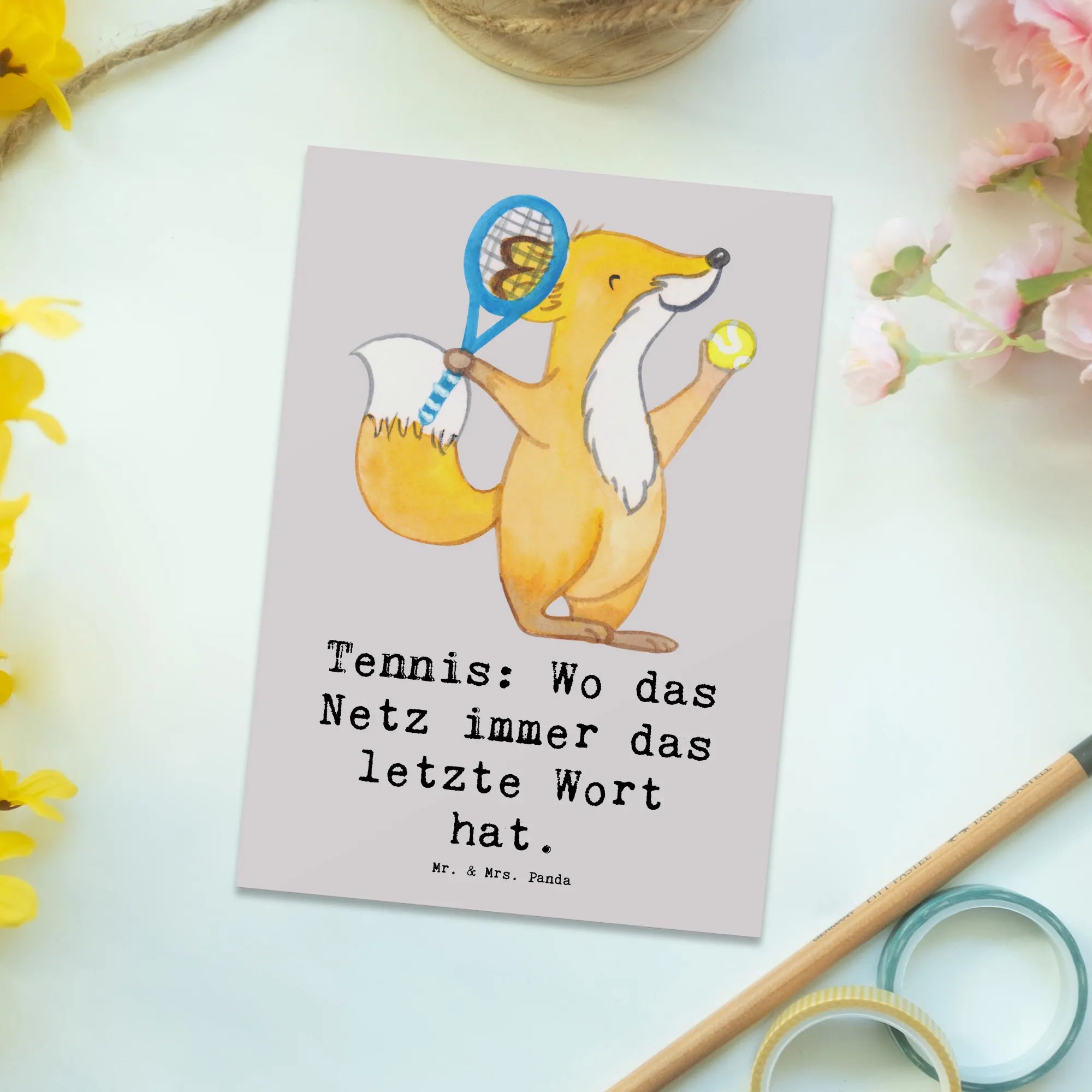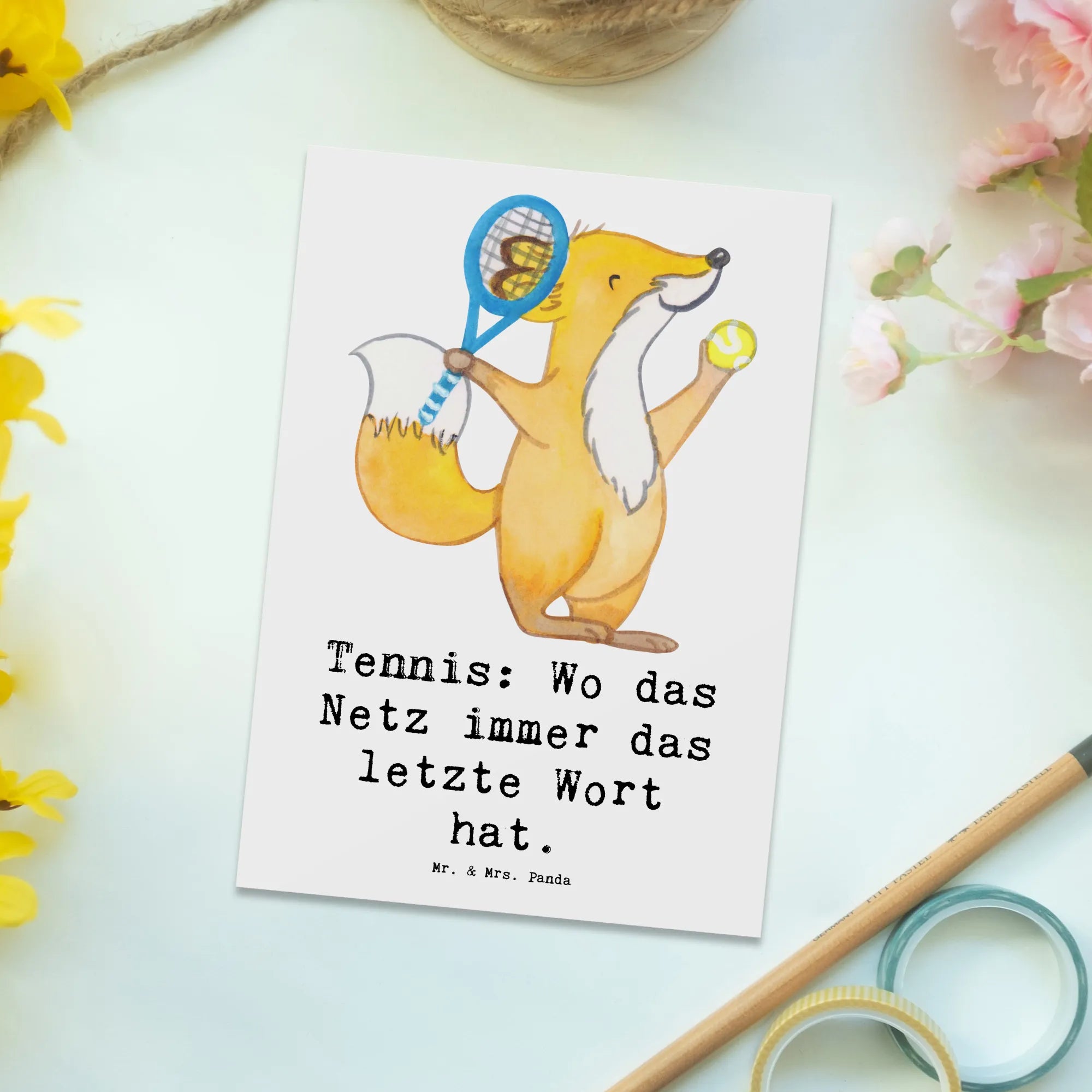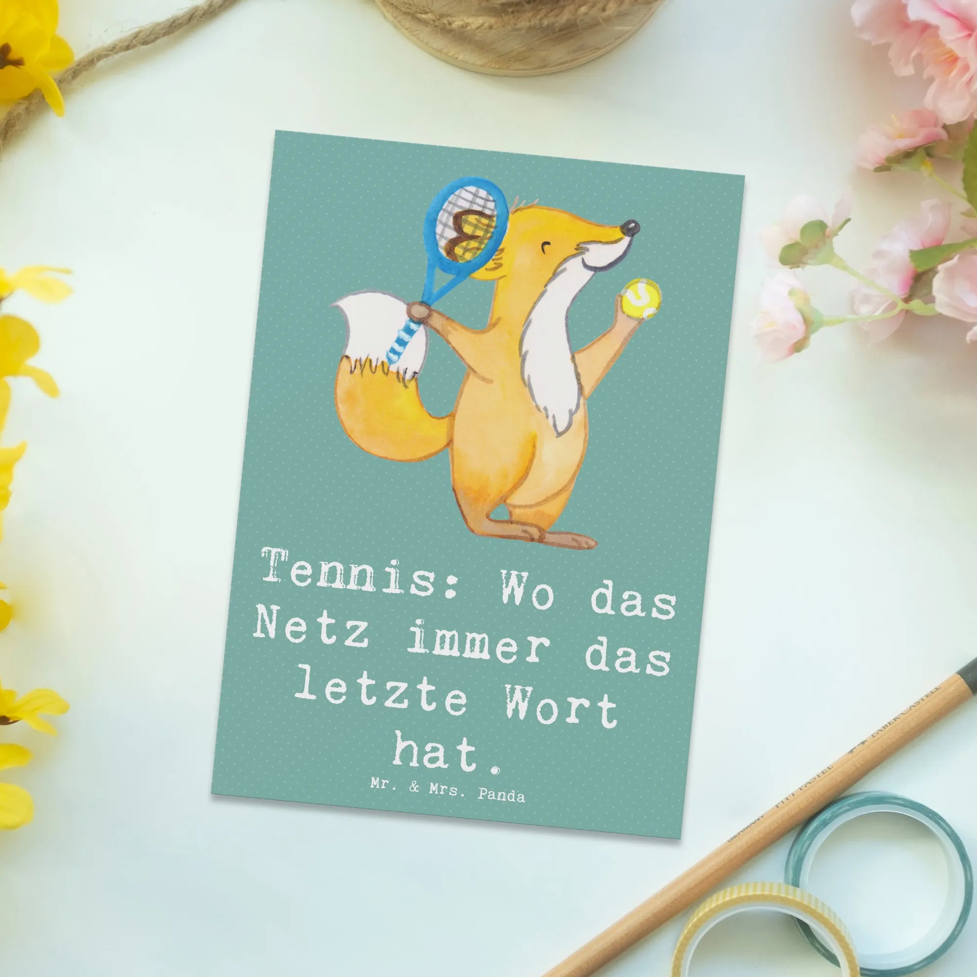Mr. & Mrs. Panda steht für liebevolle, lebensfrohe Motive mit Herz und Humor. Diese Postkarte ist nicht personalisierbar, dafür aber sofort bereit, verschenkt oder verschickt zu werden. Suche nicht länger nach der passenden Karte für Tennisspieler – diese charmante Tennis Postkarte ist eine kleine, aber feine Geste mit großer Wirkung.
