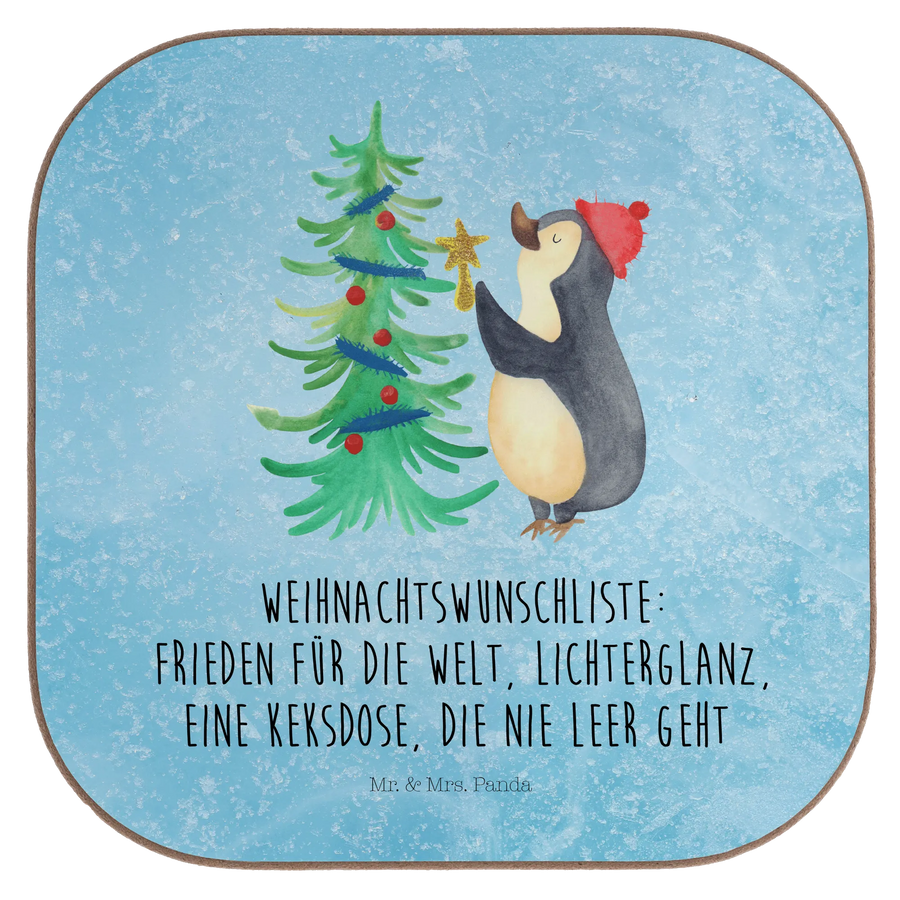 Untersetzer Pinguin Weihnachtsbaum - mit Spruch - Eisblau