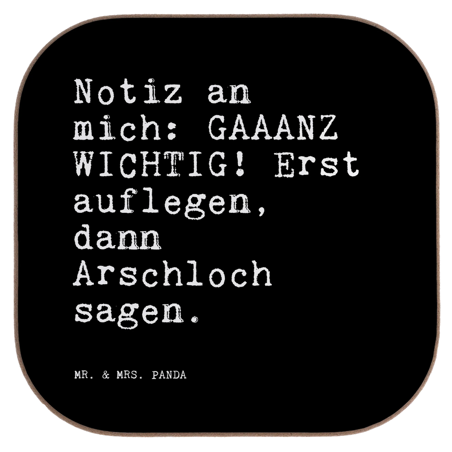 Quadratische Untersetzer Sprüche und Zitate Notiz an mich: GAAANZ WICHTIG! Erst auflegen, dann Arschloch sagen. - Schwarz