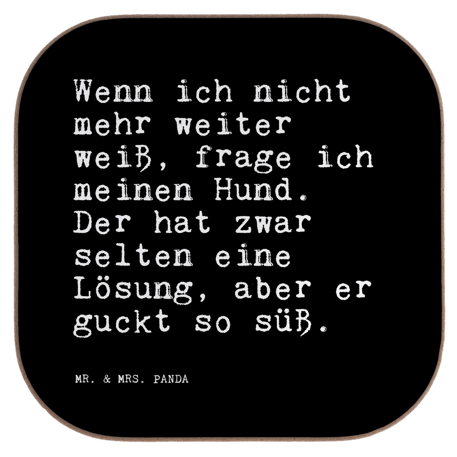 Der quadratische Untersetzer "Wenn ich nicht mehr weiter weiß, frage ich meinen Hund. Der hat zwar selten eine Lösung, aber er guckt so süß." von Mr. & Mrs. Panda ist das perfekte Geschenk für alle Hundefreunde und Tierliebhaber! Mit seinem charmanten Spruch bringt er nicht nur Freude, sondern schützt auch deinen Tisch vor unschönen Abdrücken und Kratzern.