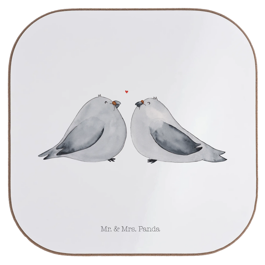 Quadratische Untersetzer Turteltauben Liebe – Mr. & Mrs. Panda