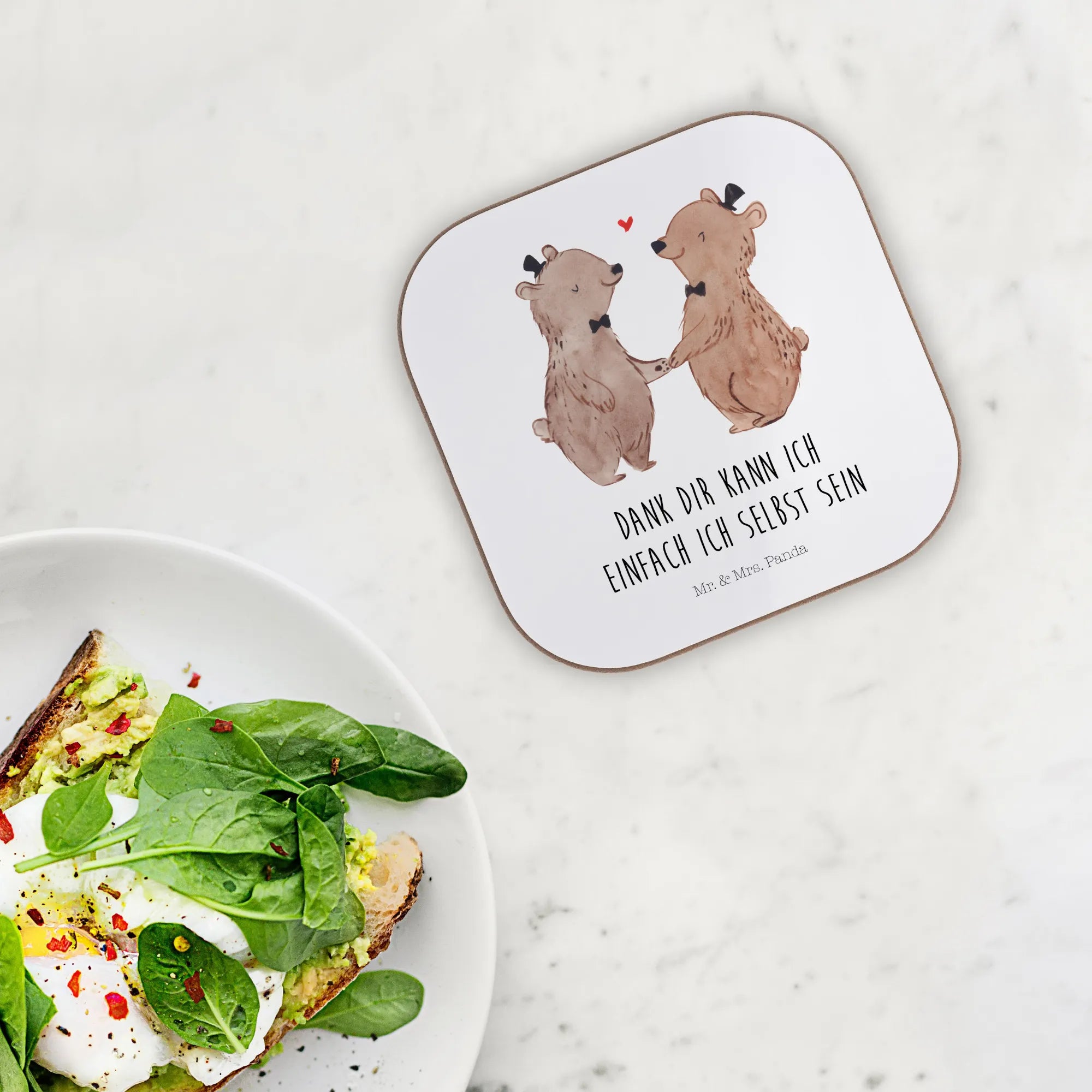 Willkommen in der bunten Welt der Mr. & Mrs. Panda Untersetzer! Wenn Du auf der Suche nach dem perfekten Geschenk für ein schwules Brautpaar bist oder einfach nur für Deine eigene Hochzeitsfeier ein einzigartiges Accessoire suchst, dann sind die Untersetzer mit dem Motiv 'Bären Pärchen Gay Pride' aus unserer Hochzeitskollektion genau das Richtige für Dich!