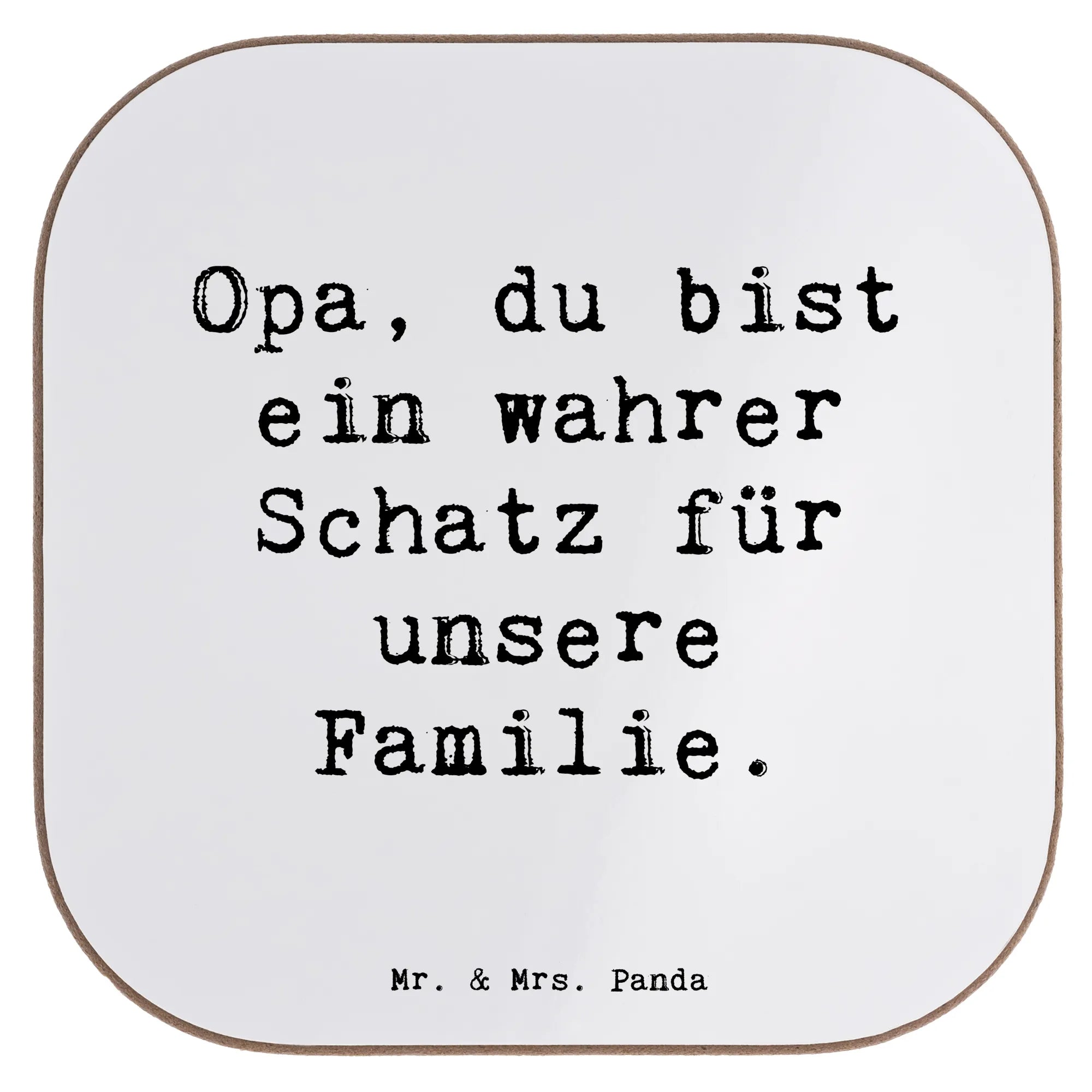 Der perfekte Untersetzer für Opa, bedruckt mit dem liebevollen Spruch "Opa, du bist ein wahrer Schatz für unsere Familie." von Mr. & Mrs. Panda, ist weit mehr als nur ein praktisches Accessoire. Mit einem Maß von 100 mm x 100 mm ist dieser wunderschöne quadratische Untersetzer ein großartiger Schutz für Deinen Tisch vor unschönen Abdrücken und Kratzern.