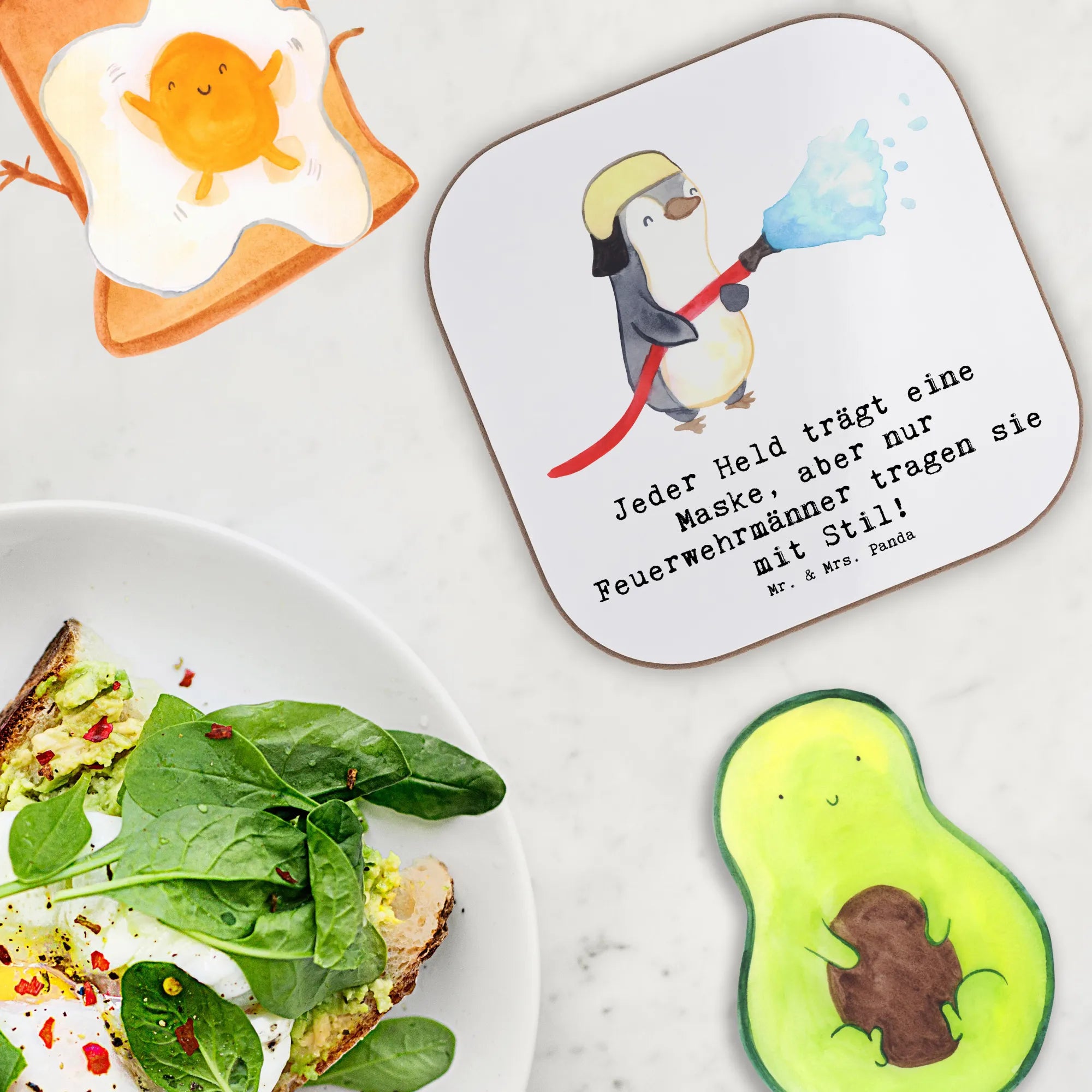 Ein Geschenk mit Stil und Herz: Unser quadratischer Untersetzer „Feuerwehrmann“ aus der Berufe-Kollektion von Mr. & Mrs. Panda ist mehr als nur ein Glasuntersetzer. Er verbindet liebevolle Illustration, praktischen Schutz für deinen Tisch und einen frechen Spruch: „Jeder Held trägt eine Maske, aber nur Feuerwehrmänner tragen sie mit Stil!“ Damit zeigst du Wertschätzung mit einem Lächeln.