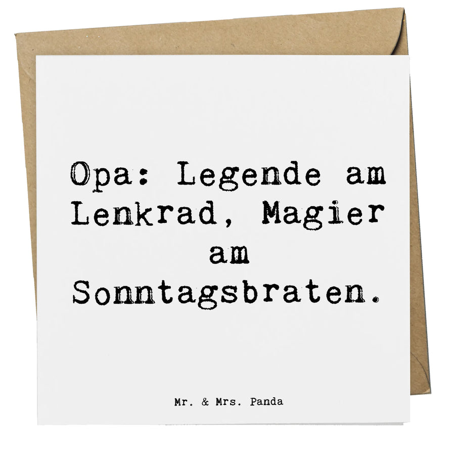 Die Deluxe Karte "Opa: Legende am Lenkrad, Magier am Sonntagsbraten" von Mr. & Mrs. Panda ist das perfekte Geschenk für jeden Opa, der eine besondere Botschaft verdient hat. Diese wunderschöne und hochwertig gestaltete Klappkarte kommt aus der beliebten Kollektion Familie & Verwandte und hat die ideale Größe von 140 mm x 140 mm.