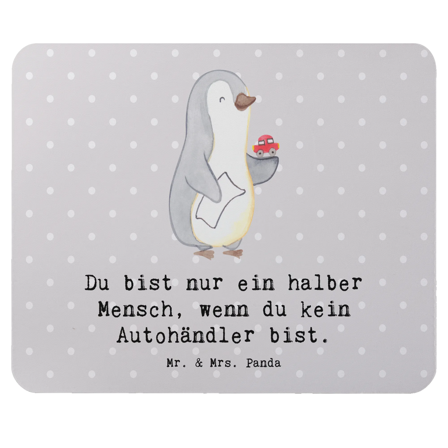 Das Mauspad "Autohändler mit Herz" von Mr. & Mrs. Panda ist das perfekte Geschenk für Autohändler und solche, die es werden wollen! Mit seinem einzigartigen Design und dem humorvollen Slogan "Du bist nur ein halber Mensch, wenn du kein Autohändler bist" ist es nicht nur funktional, sondern bringt auch Freude in den Büroalltag.