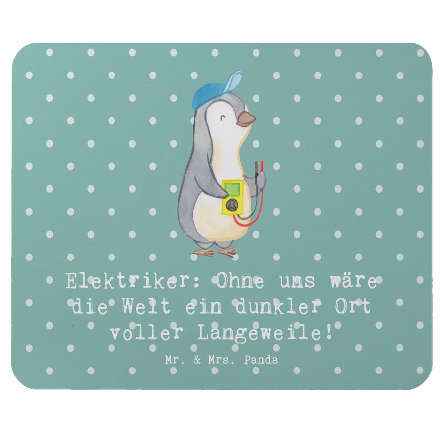 Das Mauspad mit dem süßen Motiv "Elektriker: Ohne uns wäre die Welt ein dunkler Ort voller Langeweile!" von Mr. & Mrs. Panda ist das perfekte Geschenk für jeden Elektriker oder Technikbegeisterten in deinem Leben.