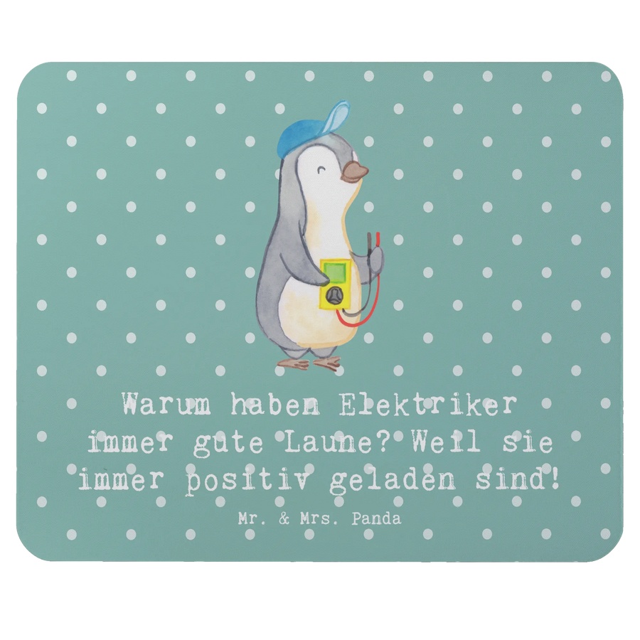 Entdecke das liebevoll gestaltete Mauspad mit dem tollen Motiv "Elektriker" von Mr. & Mrs. Panda! Nicht nur ein stilvolles Accessoire für dein Arbeitszimmer, sondern auch ein absoluter Hingucker, der deinem Schreibtisch eine persönliche Note verleiht. Mit dem frechen Spruch: "Warum haben Elektriker immer gute Laune? Weil sie immer positiv geladen sind!" sorgt dieses Mauspad für ein Lächeln während des Arbeitstags.