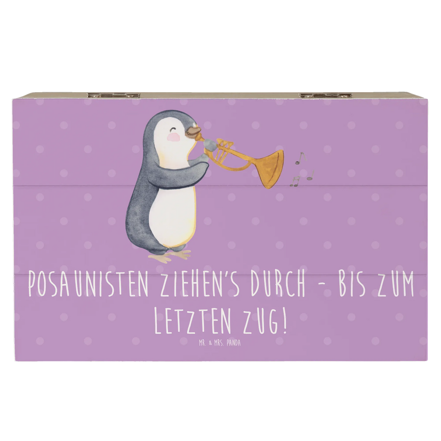 Diese wunderschöne Holzkiste von Mr. & Mrs. Panda ist nicht nur ein praktischer Aufbewahrungsort, sondern auch ein tolles Geschenk für jeden Musikliebhaber! Mit dem bezaubernden Motiv einer Posaune und dem Spruch 'Posaunisten ziehen's durch - bis zum letzten Zug!' ist sie perfekt für alle, die die Musik lieben und vielleicht sogar selbst ein Instrument spielen.