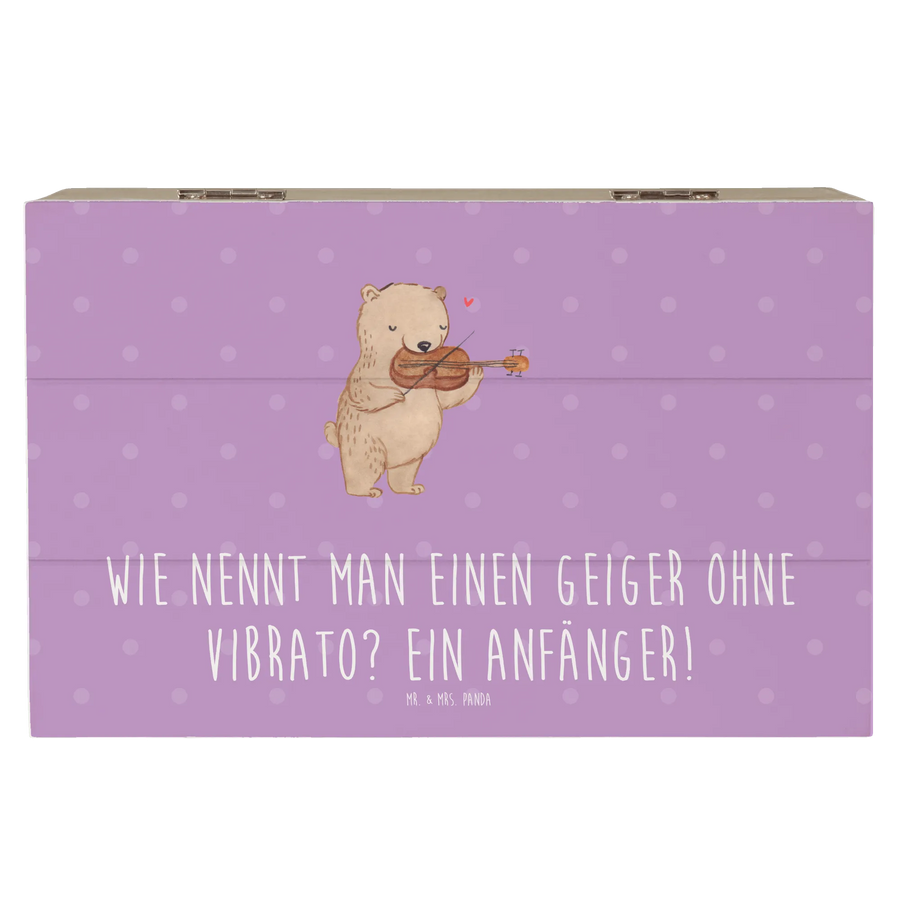 Entdecke die wundervolle Holzkiste von Mr. & Mrs. Panda, die mit einem zauberhaften Violinmotiv und einem humorvollen Spruch darauf verziert ist: "Wie nennt man einen Geiger ohne Vibrato? Ein Anfänger!" Diese schöne Erinnerungskiste ist perfekt, um all deine kostbaren Schätze zu bewahren – sei es für Erinnerungen an festliche Anlässe, Kindheitserinnerungen, Fotos oder einfach als stilvolle Aufbewahrungsbox für kleine Geheimnisse.