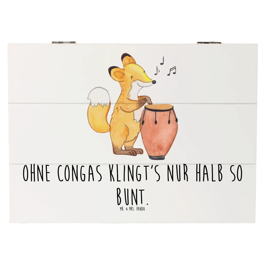 Die wunderschöne Holzkiste von Mr. & Mrs. Panda ist der perfekte Begleiter für alle Musikliebhaber und jene, die das Musizieren in ihr Leben bringen möchten. Mit dem liebevollen Motiv der Congas und dem inspirierenden Slogan 'Ohne Congas klingt's nur halb so bunt.', zieht diese Erinnerungskiste alle in ihren Bann.