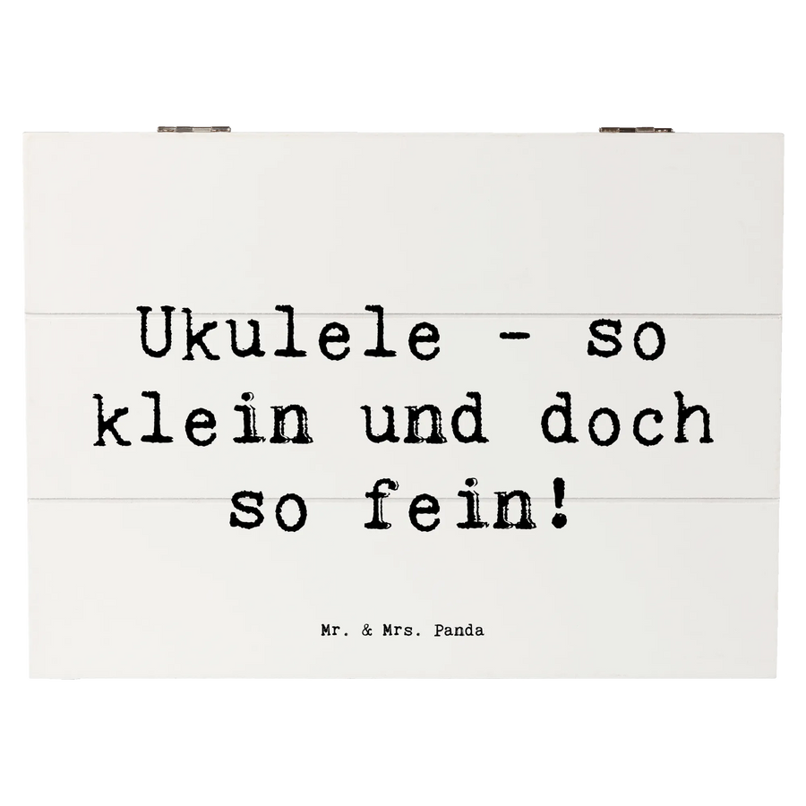 Die Holzkiste ist auch eine fantastische Geschenkidee. Mit ihrem fröhlichen Design und dem Spruch „Ukulele - so klein und doch so fein!“ transportiert sie nicht nur kleine Schätze, sondern auch Freude und Musik! Perfekt, um Musikern und Musikliebhabern eine Freude zu machen, die gerade dabei sind, ein Instrument zu lernen oder einfach ihre Leidenschaft für die Musik mit Stil und Eleganz auszudrücken.