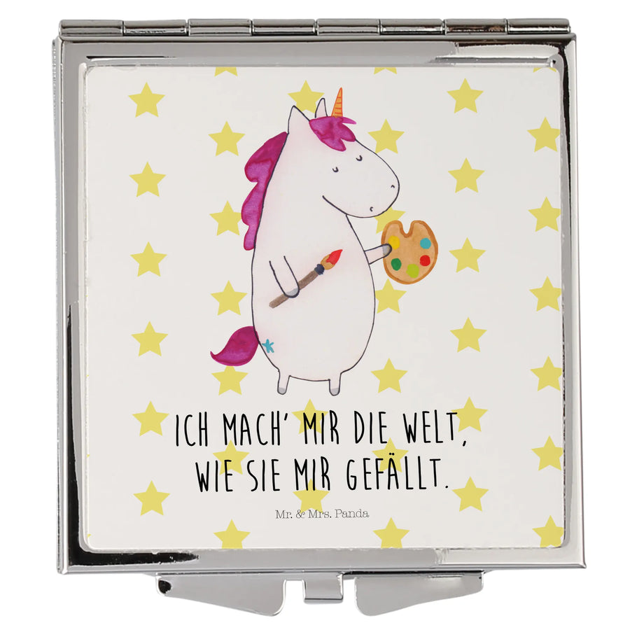 Handtaschenspiegel quadratisch Einhorn Künstler - mit Spruch - Weiß