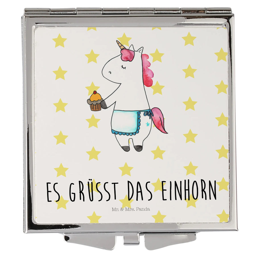 Handtaschenspiegel quadratisch Einhorn Muffin - mit Spruch - Weiß