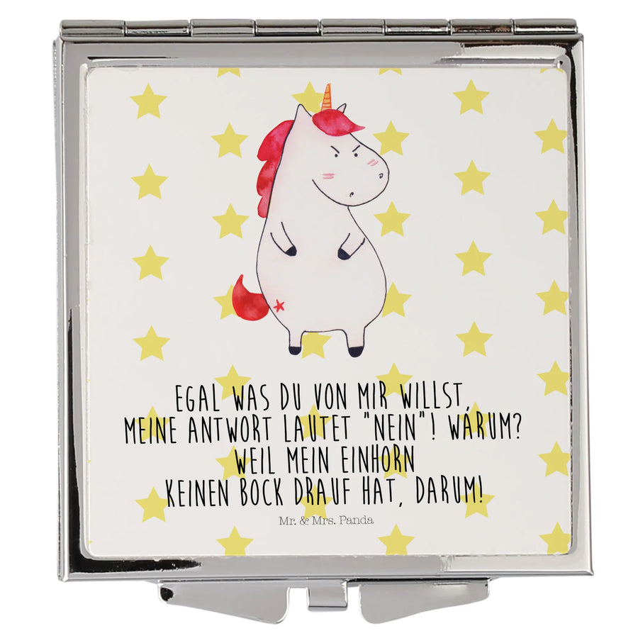 Handtaschenspiegel quadratisch Einhorn wütend – Mr. & Mrs. Panda