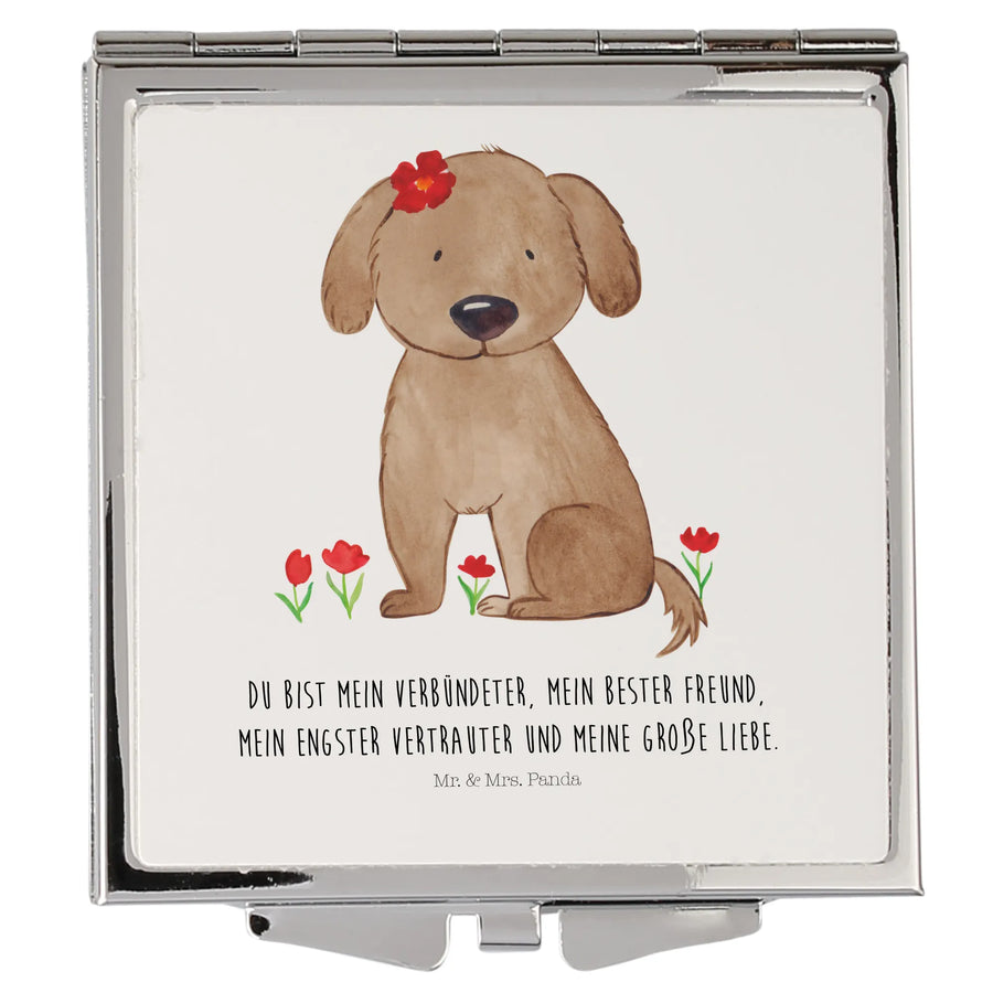 Der quadratische Handtaschenspiegel von Mr. & Mrs. Panda ist das perfekte Accessoire für alle, die die Liebe zu ihren vierbeinigen Freunden in ihrem Alltag zeigen möchten. Mit einem wunderschönen Motiv einer Hundedame, die stolz eine Blume auf dem Kopf trägt, wird dieser Spiegel zum echten Blickfang. Egal ob du selbst Hundebesitzer bist oder ein Geschenk für einen Hundeliebhaber suchst, dieser Schminkspiegel bringt die Herzen von Tierfreunden zum Schmelzen.