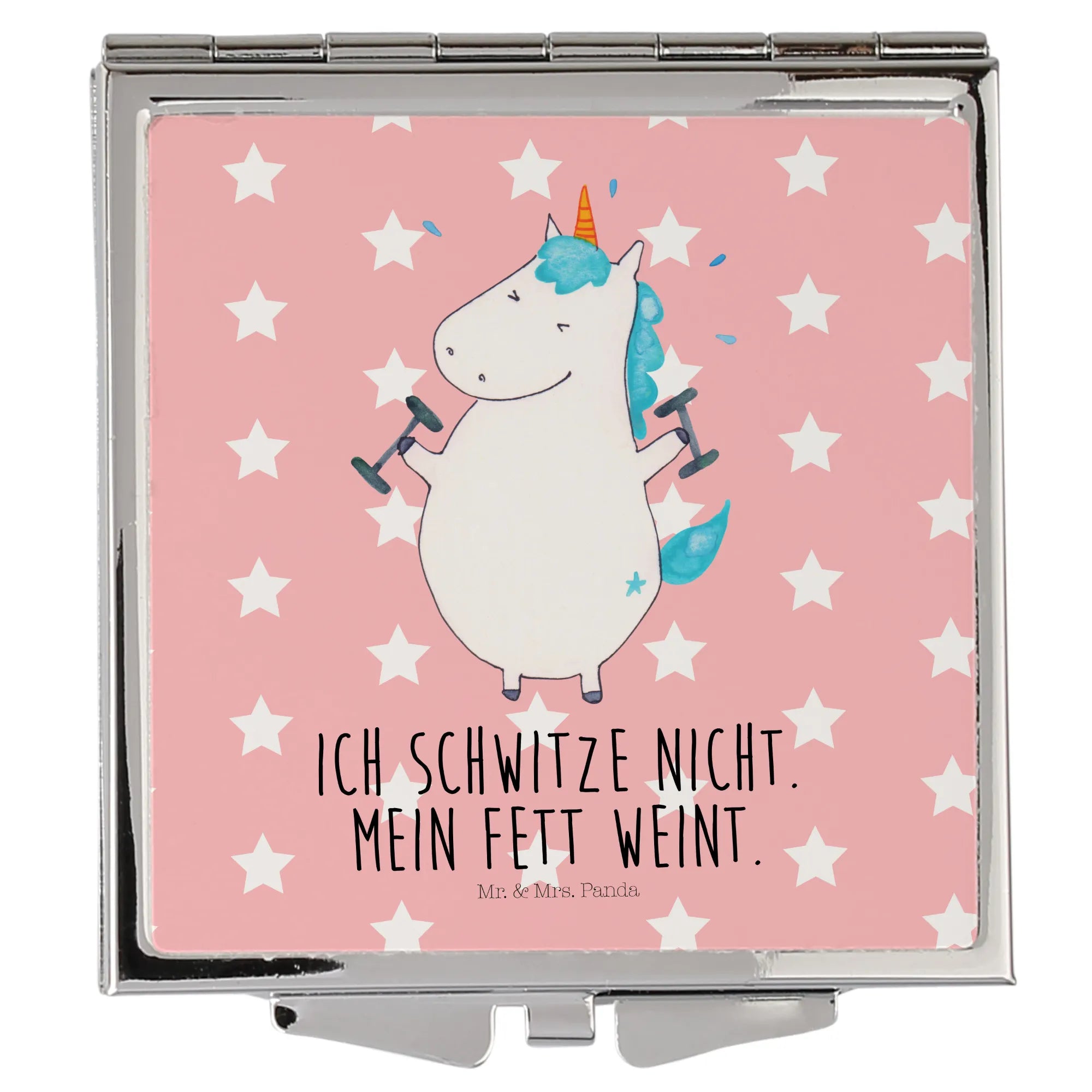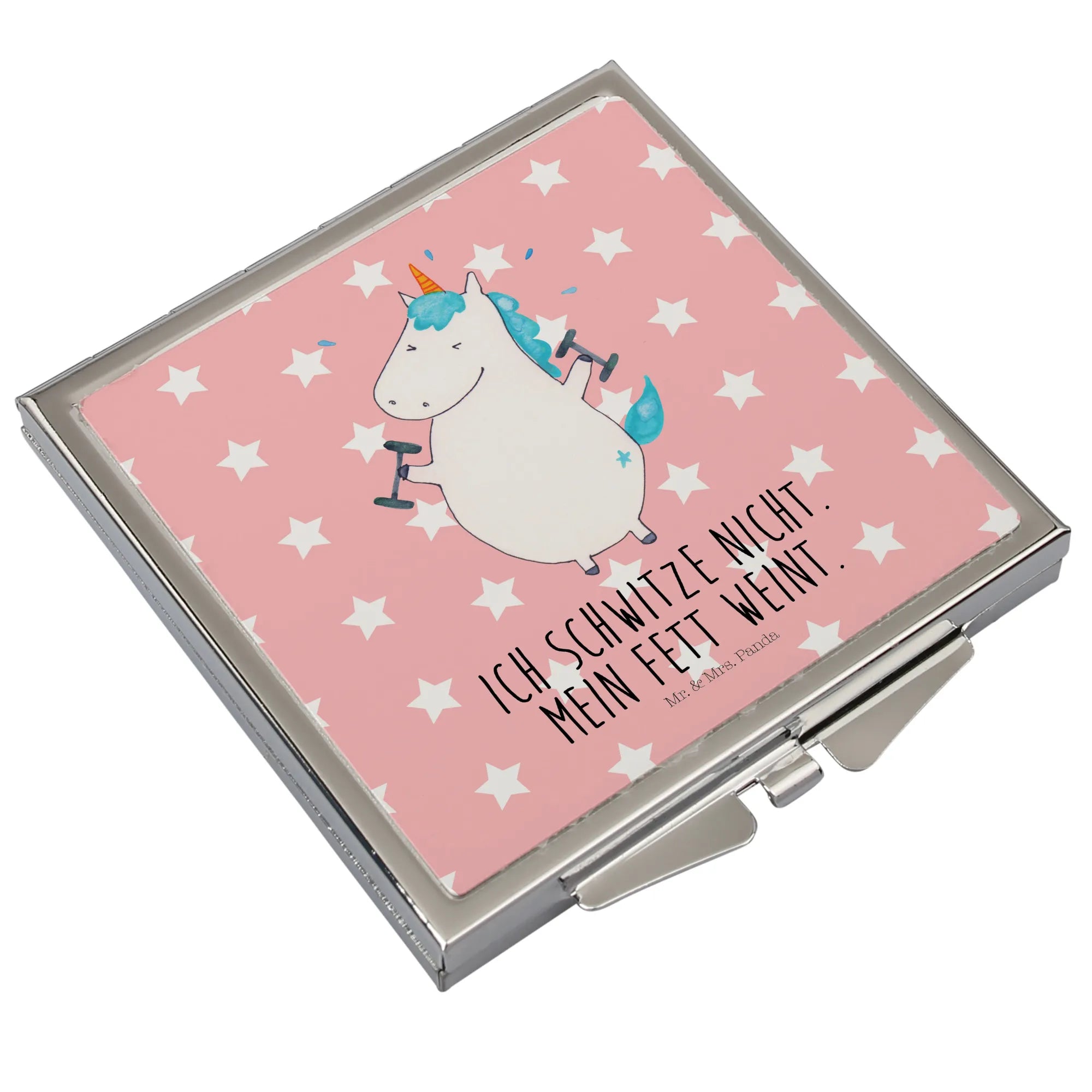 Handtaschenspiegel quadratisch Einhorn Fitness - mit Spruch - Rot Pastell