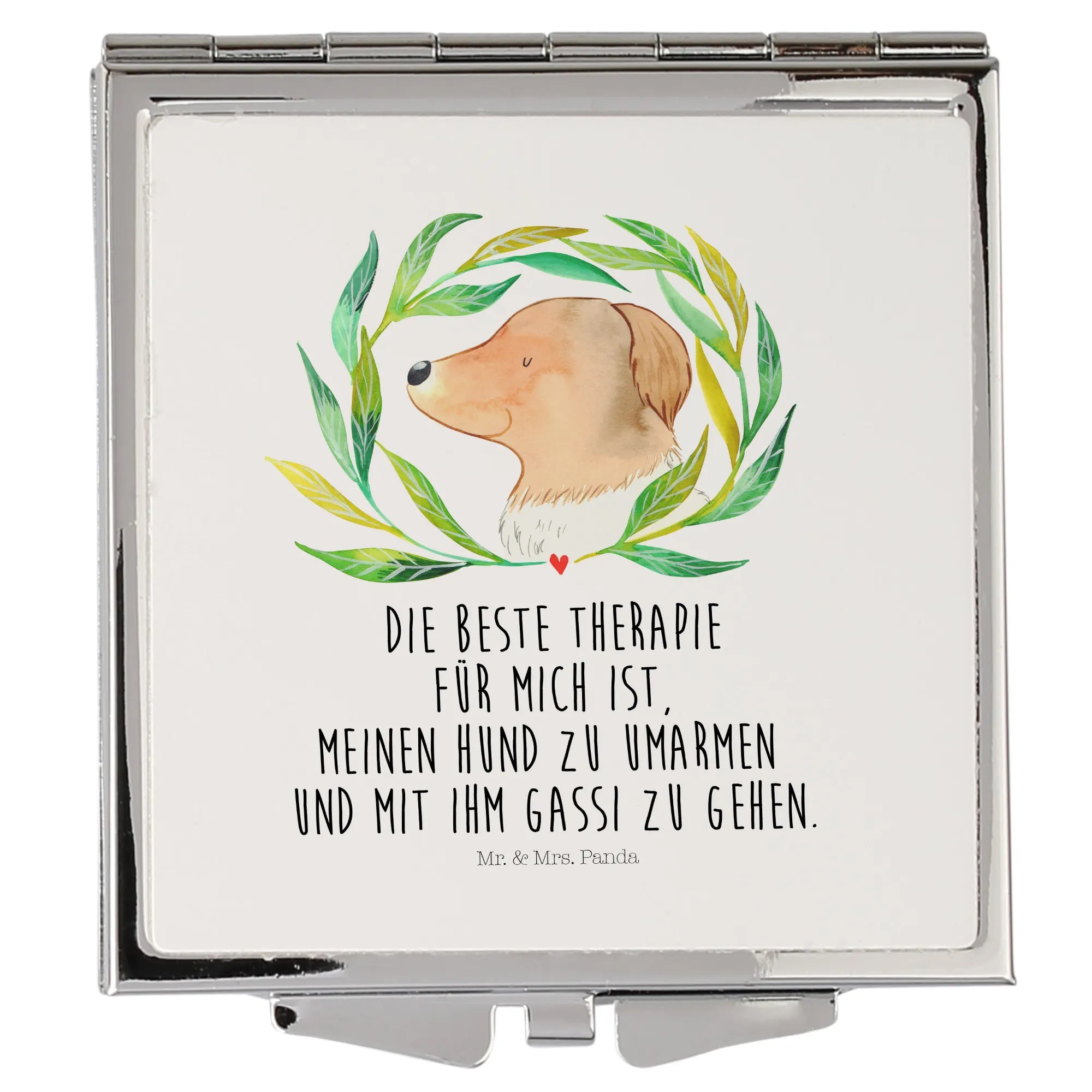 Handtaschenspiegel quadratisch Hund Blumen - mit Spruch - Hundeglück