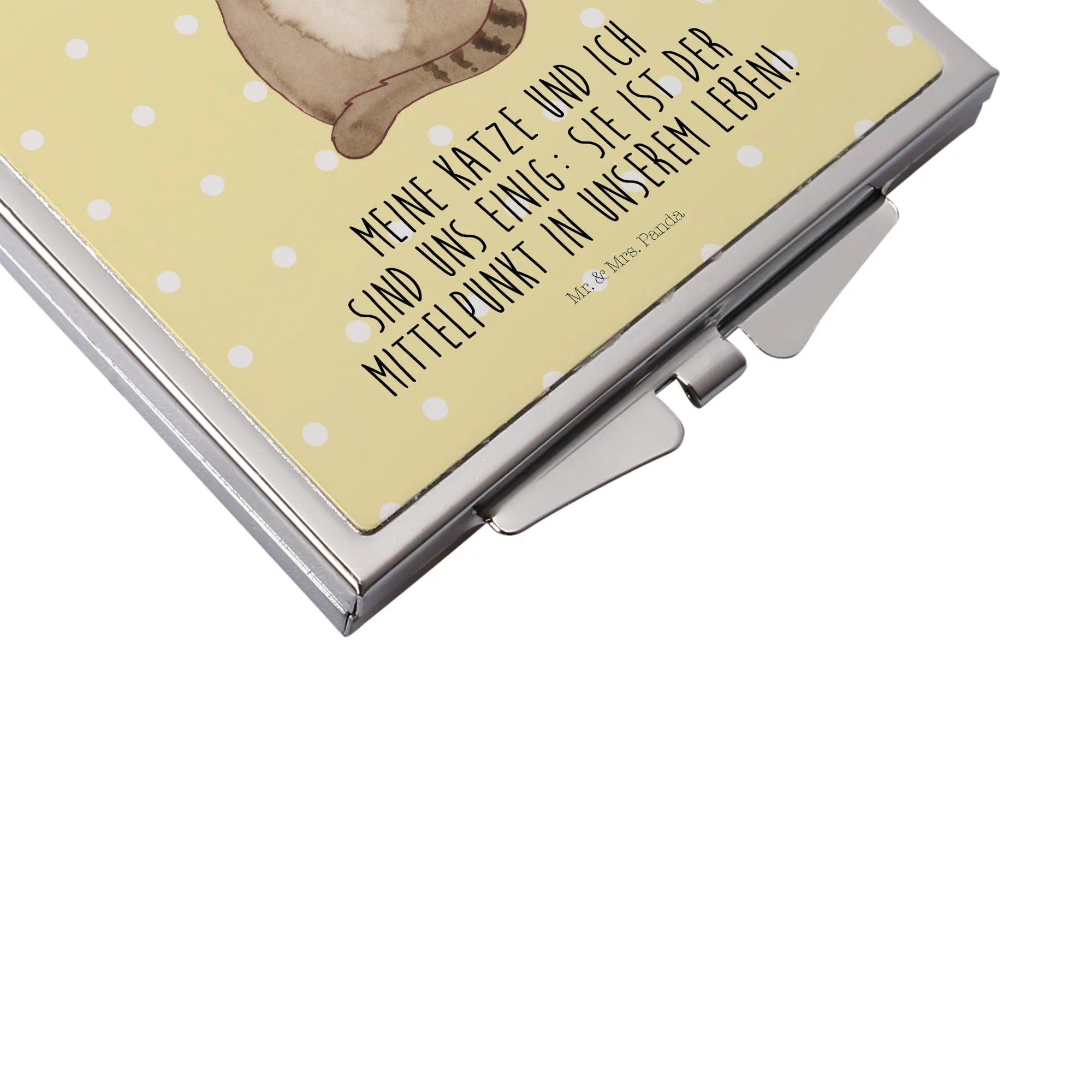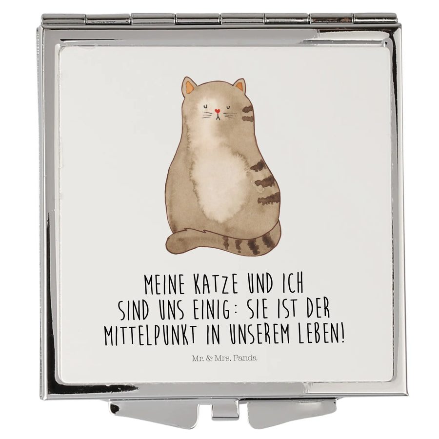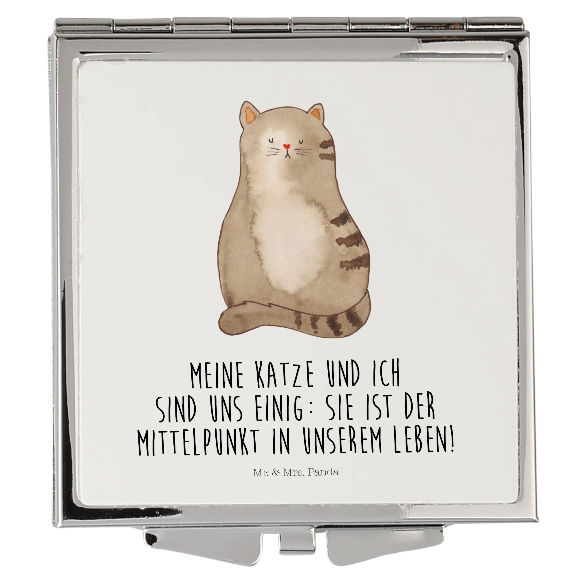 Handtaschenspiegel quadratisch Katze sitzend - mit Spruch - Weiß