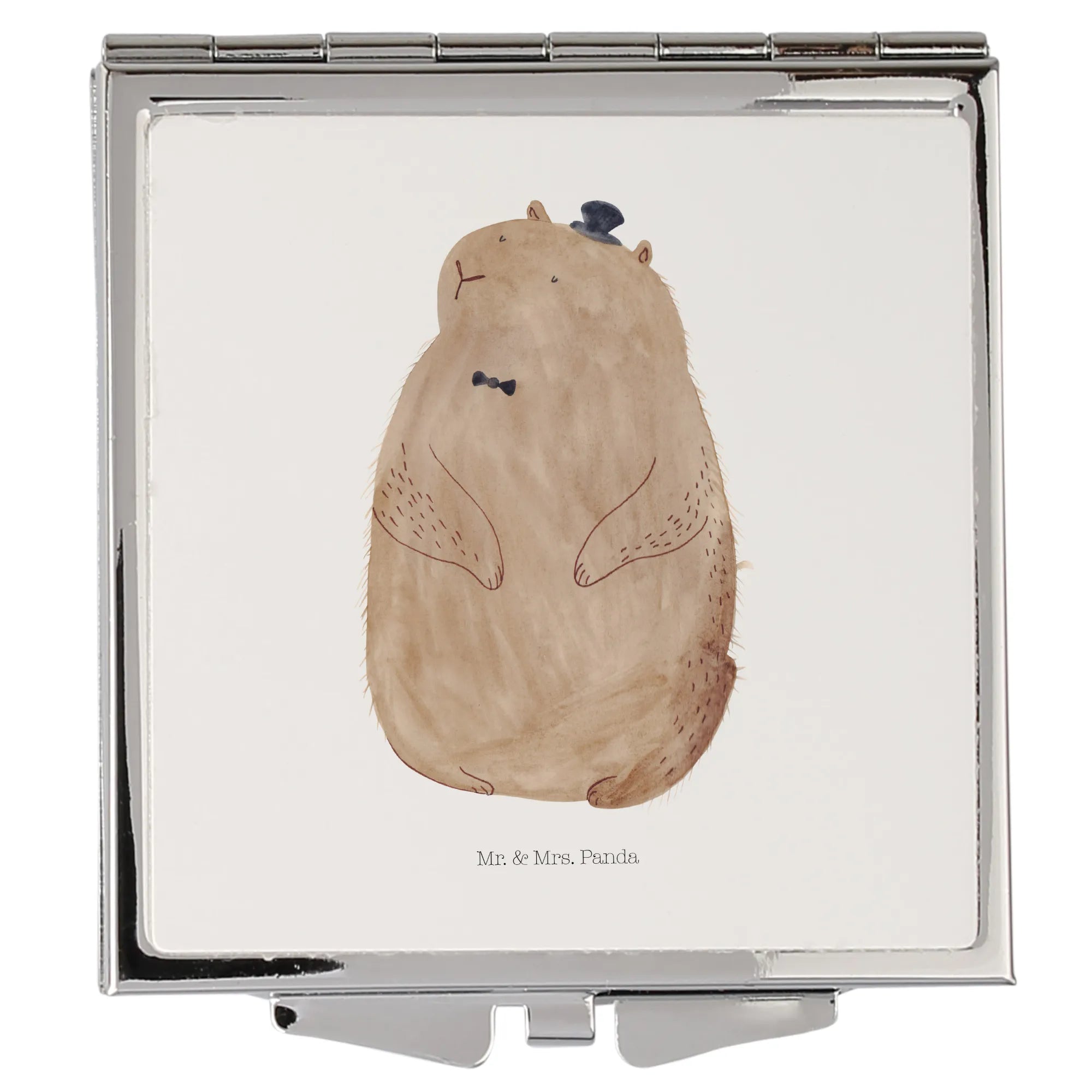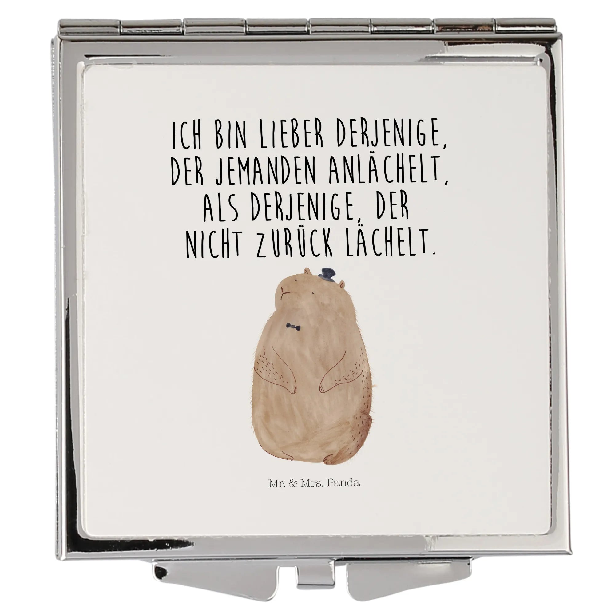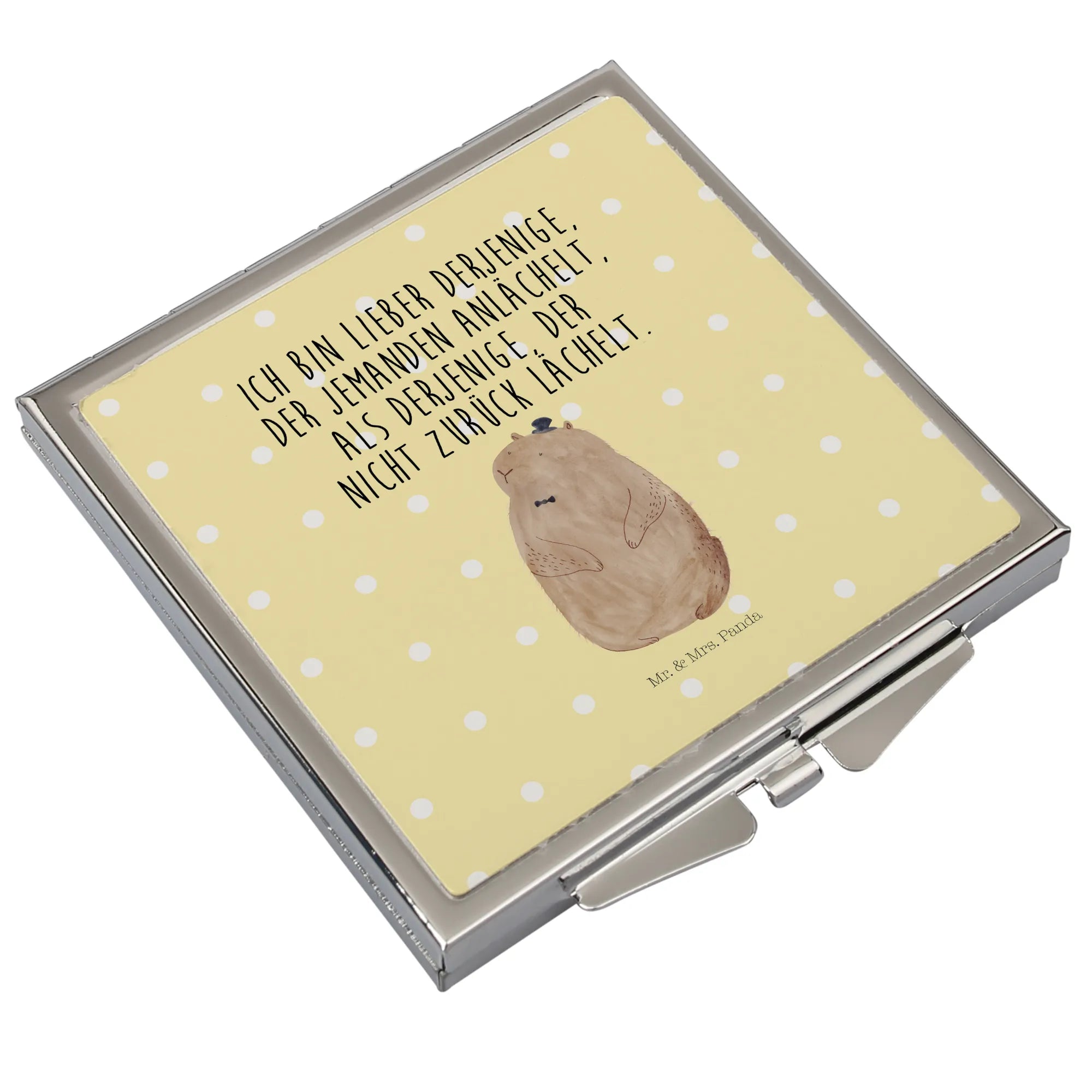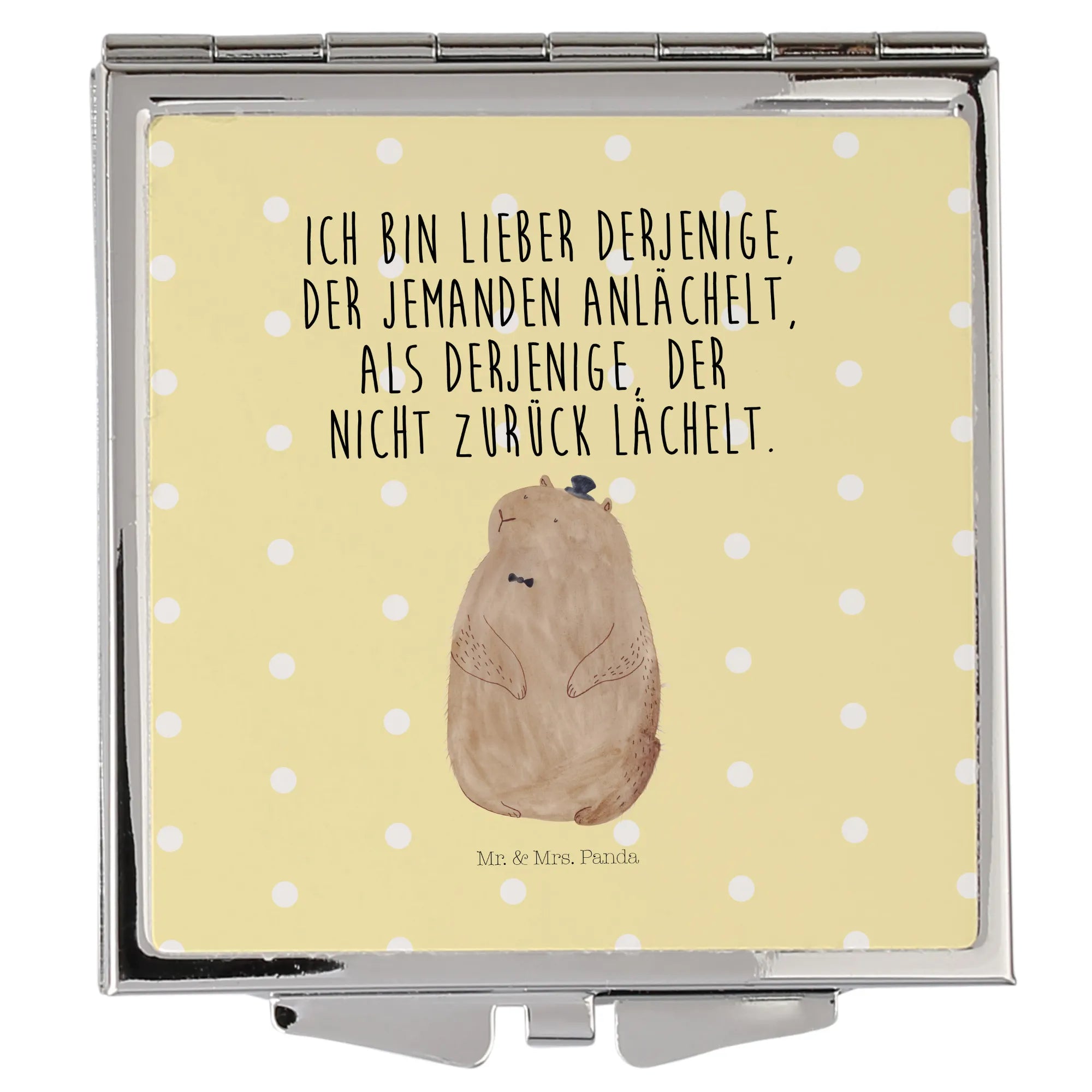 Handtaschenspiegel quadratisch Murmeltier - mit Spruch - Gelb Pastell
