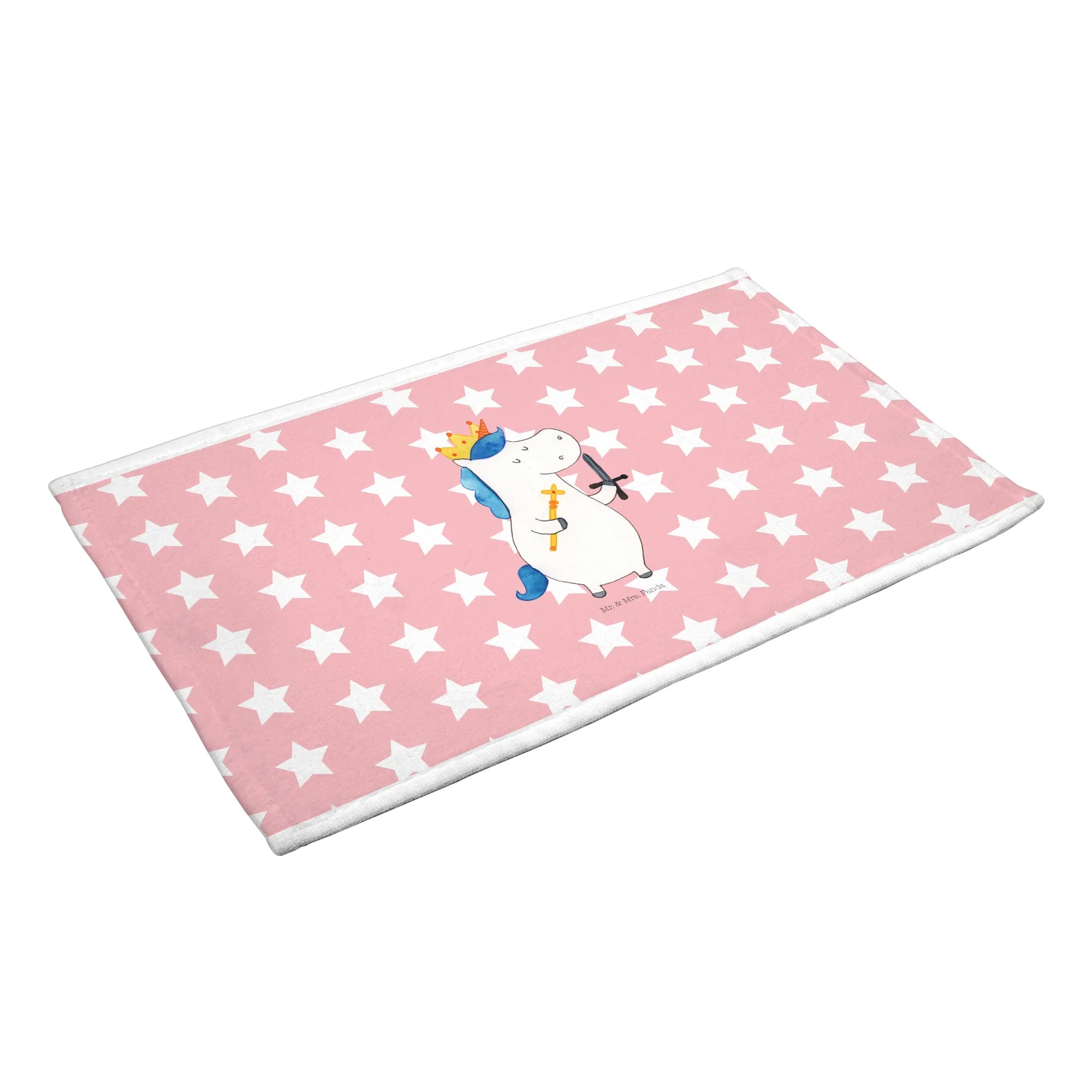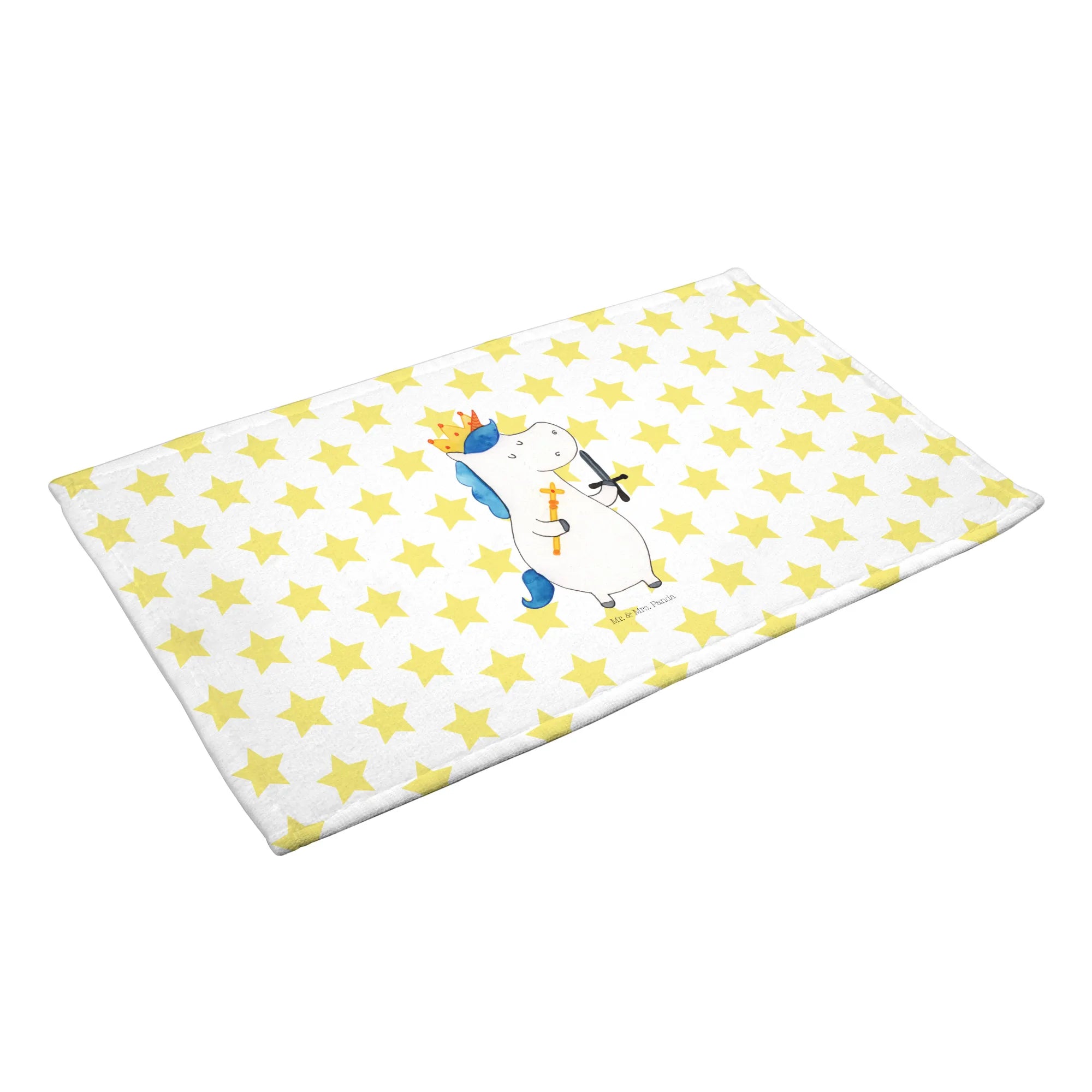 Das perfekte Gästehandtuch von Mr. & Mrs. Panda mit dem einzigartigen Motiv Einhorn König mit Schwert bringt ein Stück Zauber in dein Badezimmer. Egal, ob du nach einem süßen Geschenk für dein Kind suchst oder vielleicht ein besonderes Mitbringsel für eine Freundin benötigst – dieses Handtuch ist einfach ideal! Flauschig und bunt bedruckt, mit strahlenden Farben wird es jedes Gästebad verschönern und Freude verbreiten.