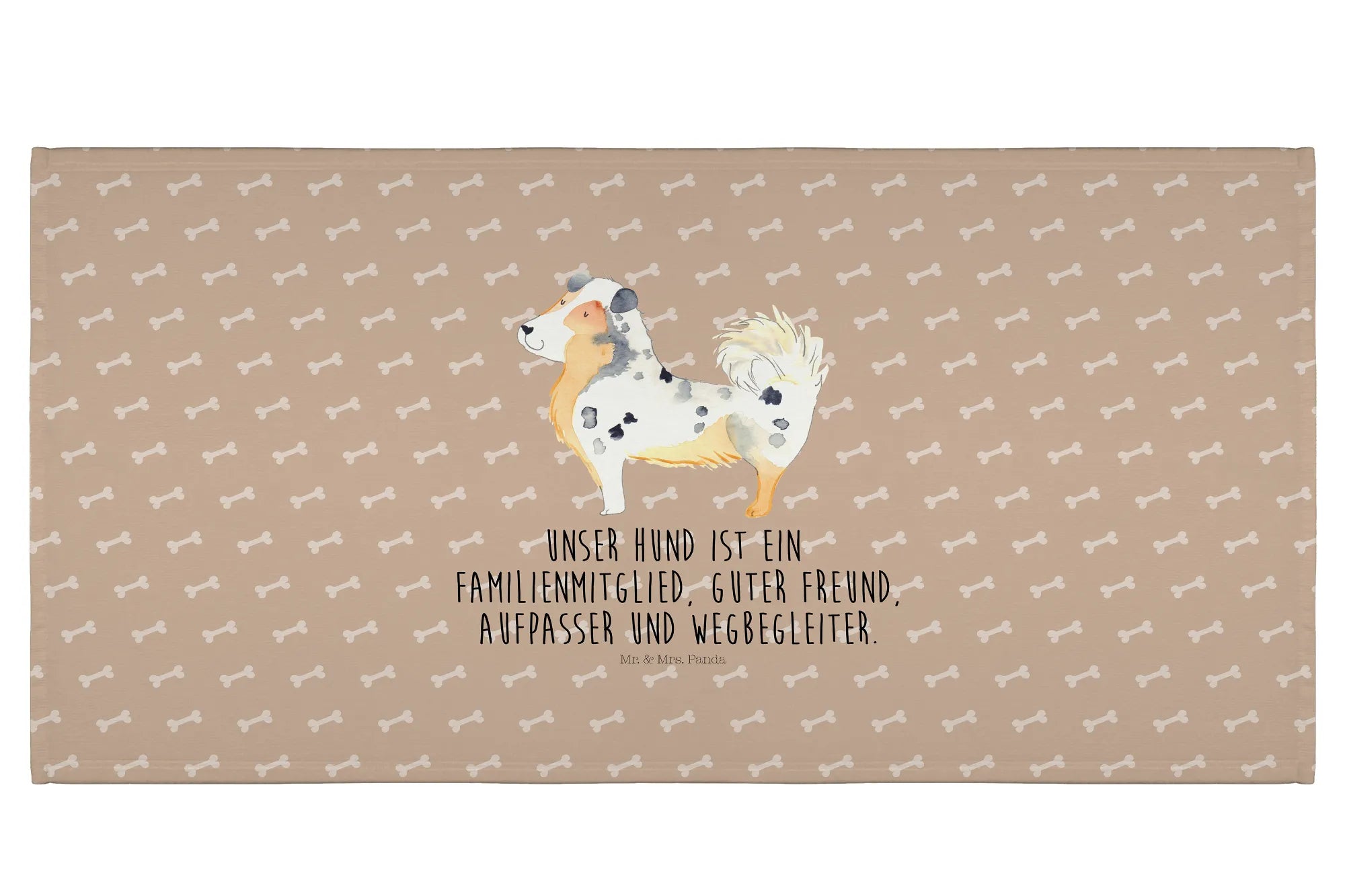 Das XL Badehandtuch mit dem niedlichen Australien Shepherd Motiv von Mr. & Mrs. Panda ist das perfekte Geschenk für jeden Hundeliebhaber und Hundebesitzer! Es besticht durch seine hochwertige Verarbeitung und den liebevollen Druck, der das Herz jedes Hundefans höher schlagen lässt.