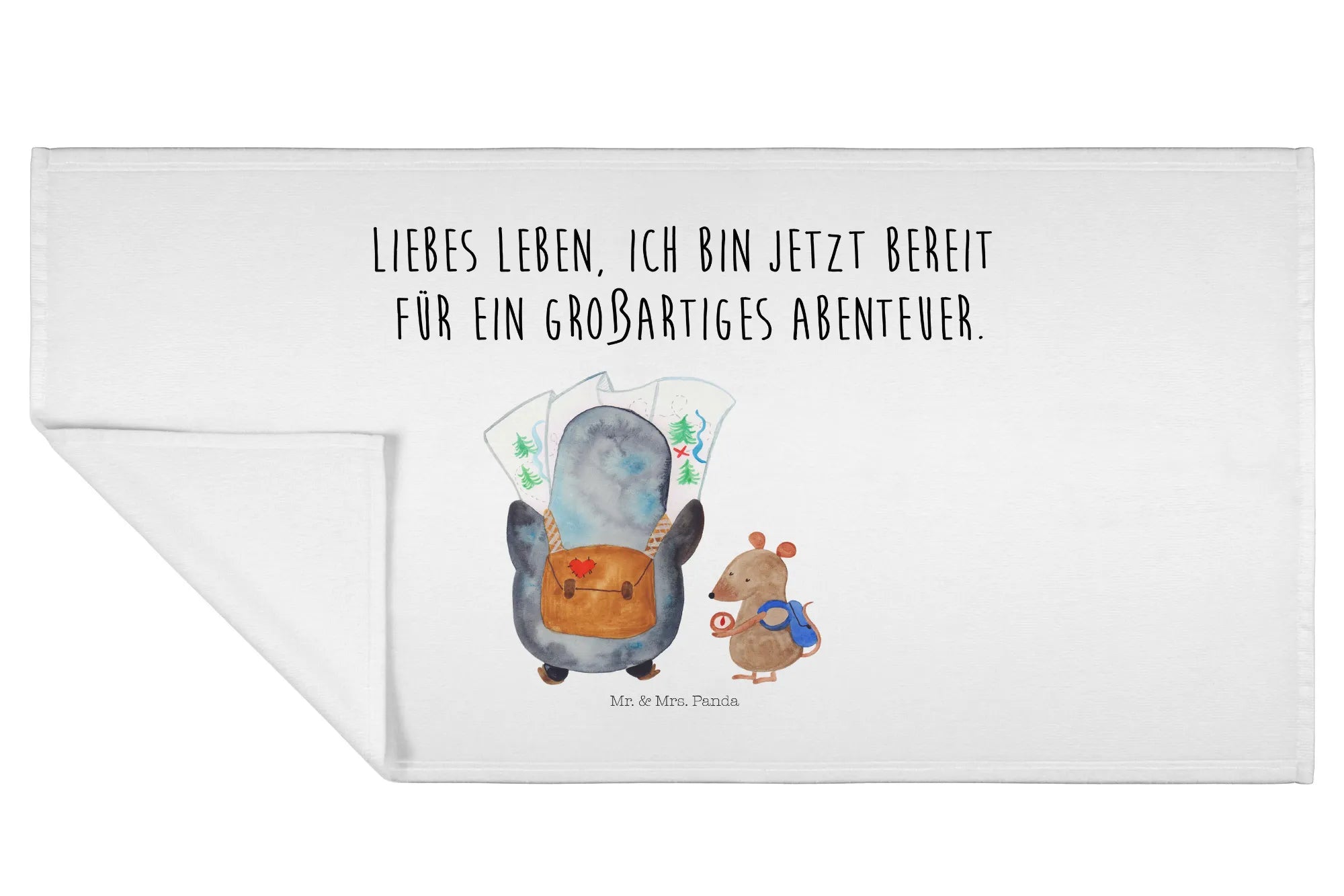 Handtuch Pinguin & Maus Wanderer - mit Spruch - Weiß